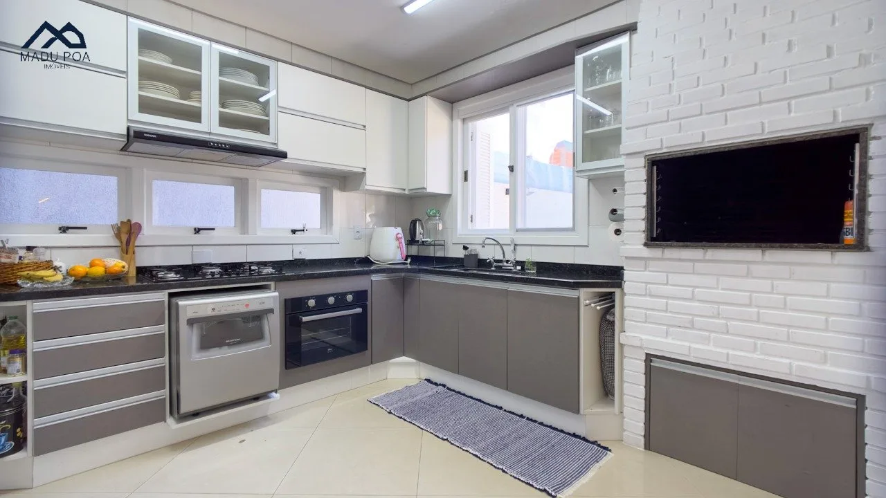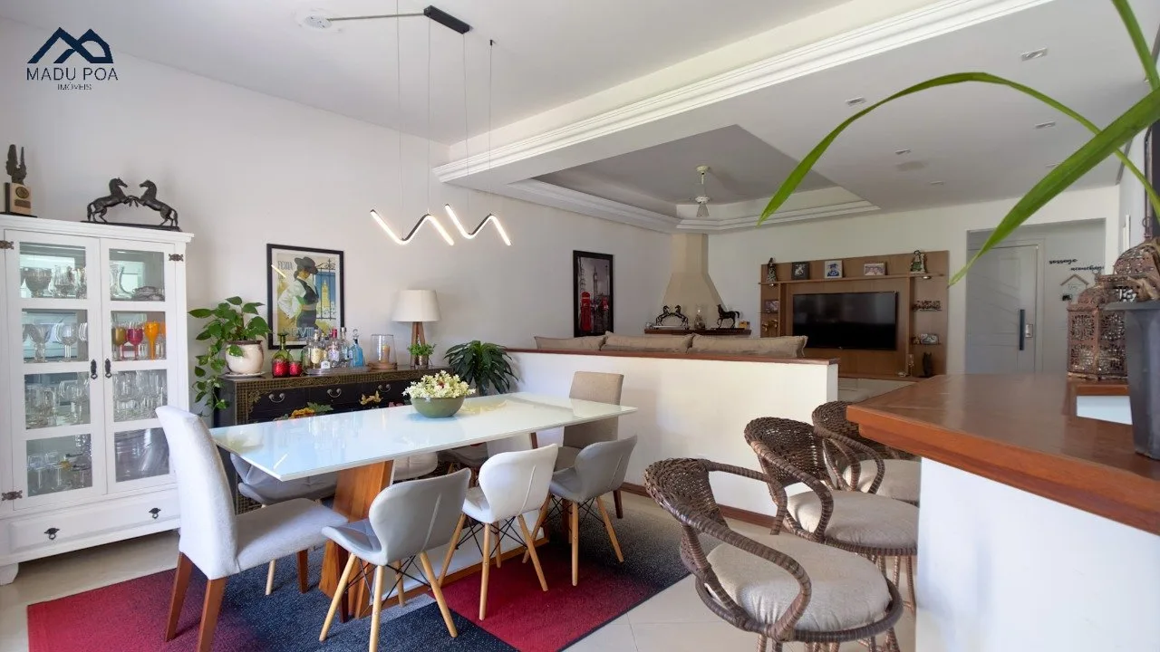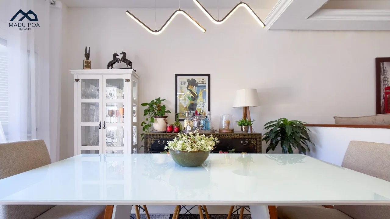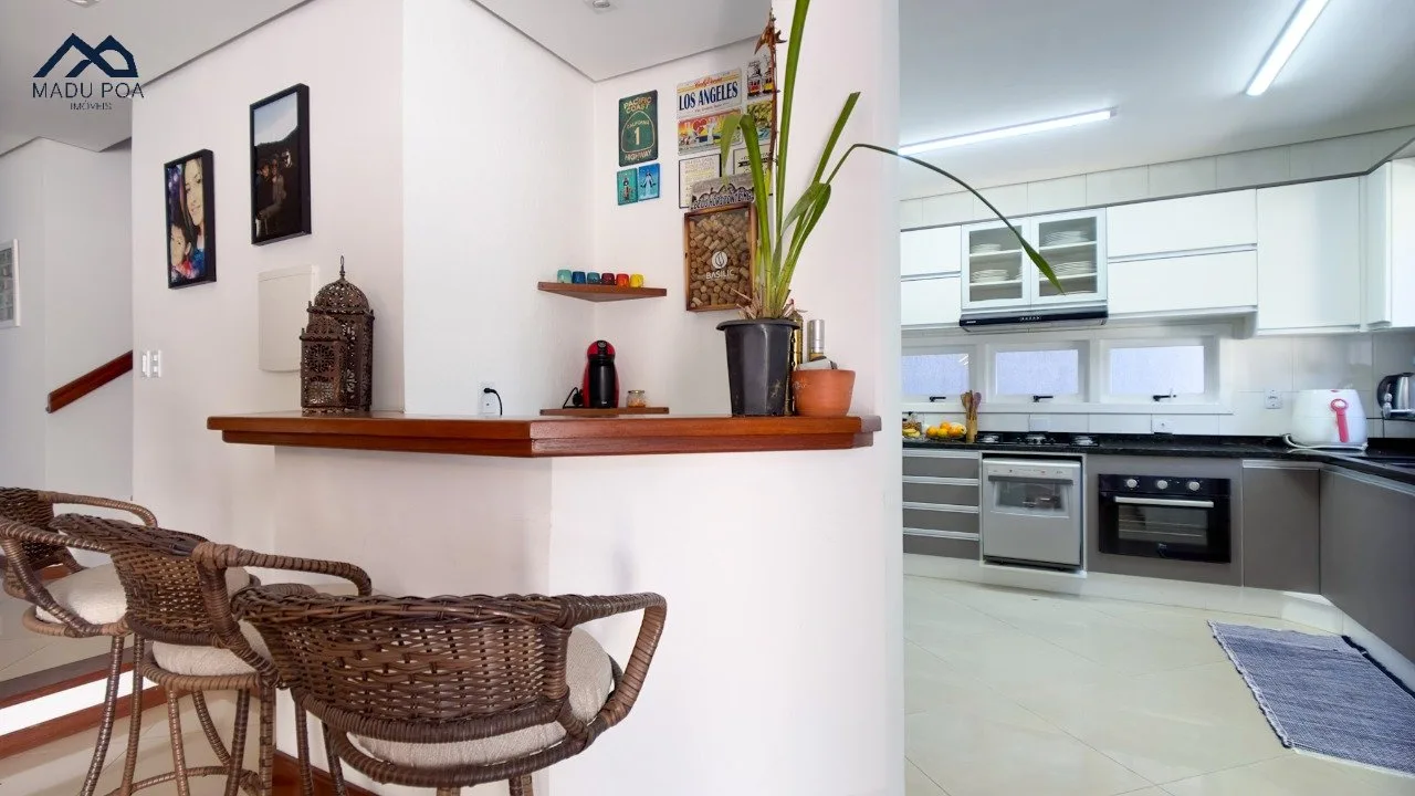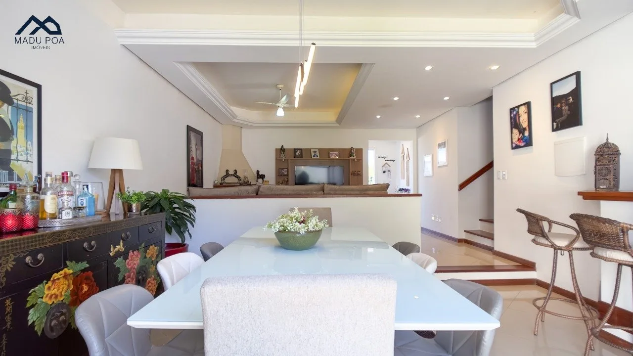 Pavimento térreo com um conceito aberto, criando uma integração perfeita entre a espaçosa sala de estar, sala de jantar e a cozinha bem equipada, ideal para o convívio social.