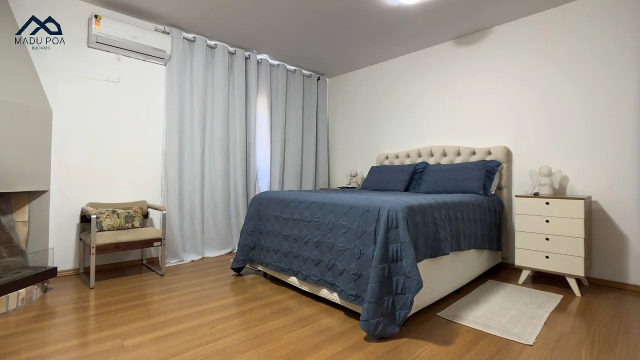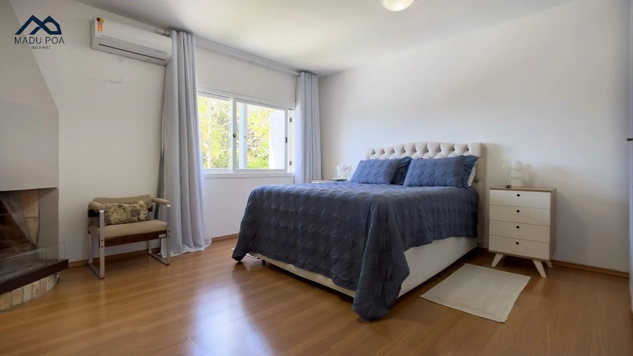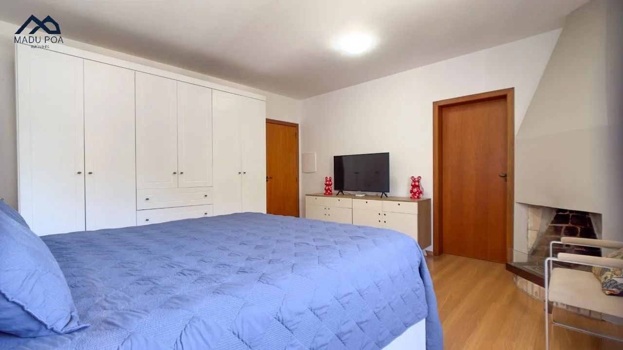 01 suíte no pavimento superior, completa com chuveiro e uma relaxante hidromassagem, além de uma lareira, proporcionando um ambiente de tranquilidade.