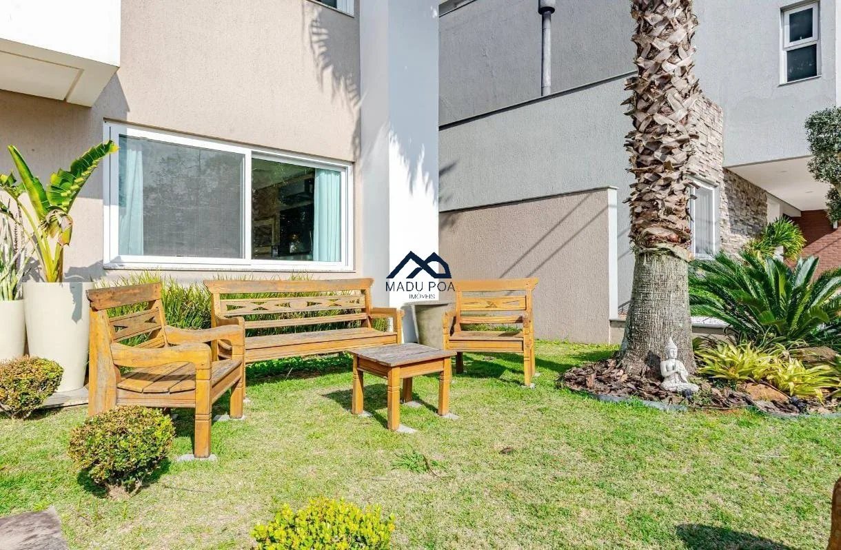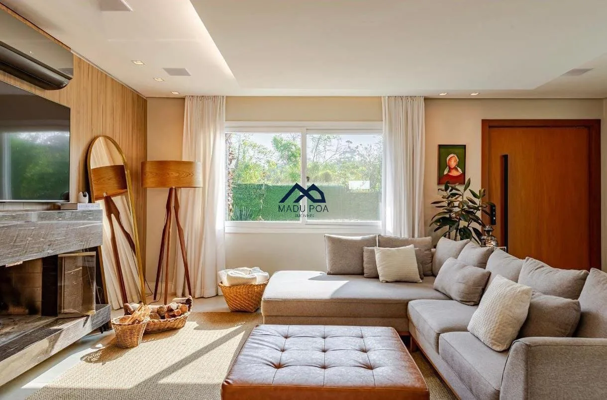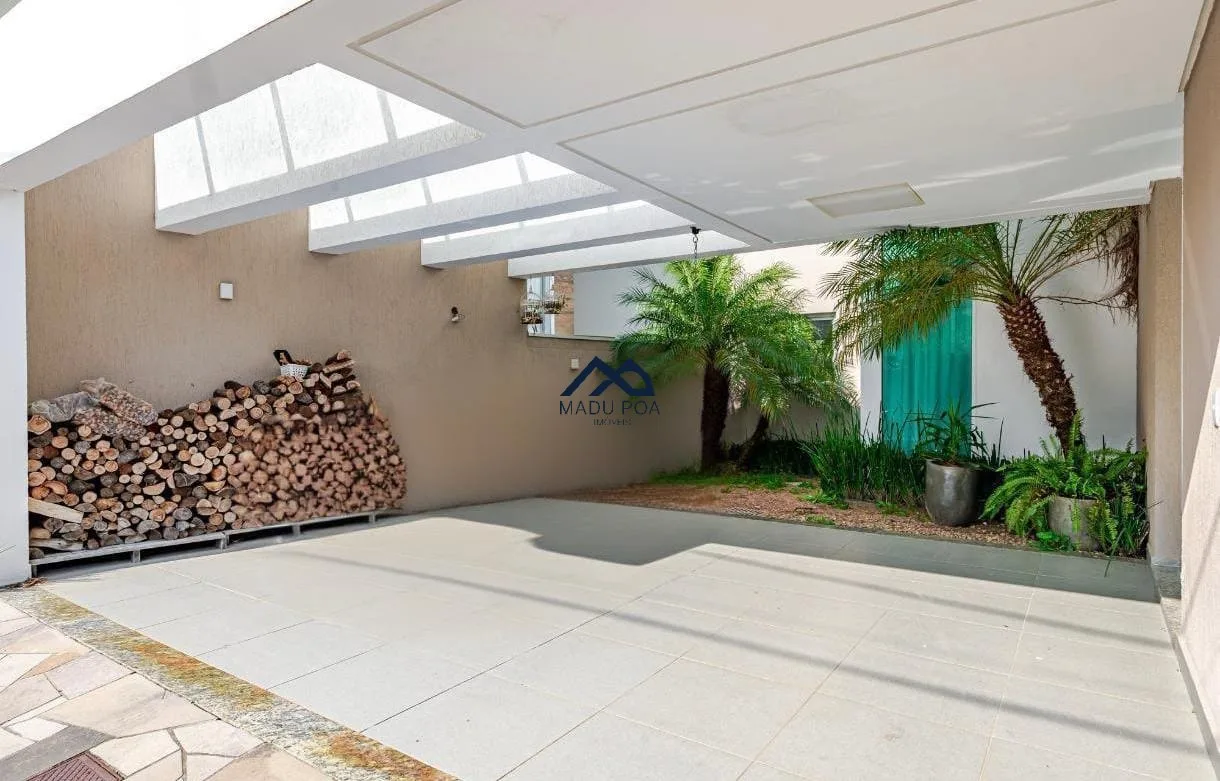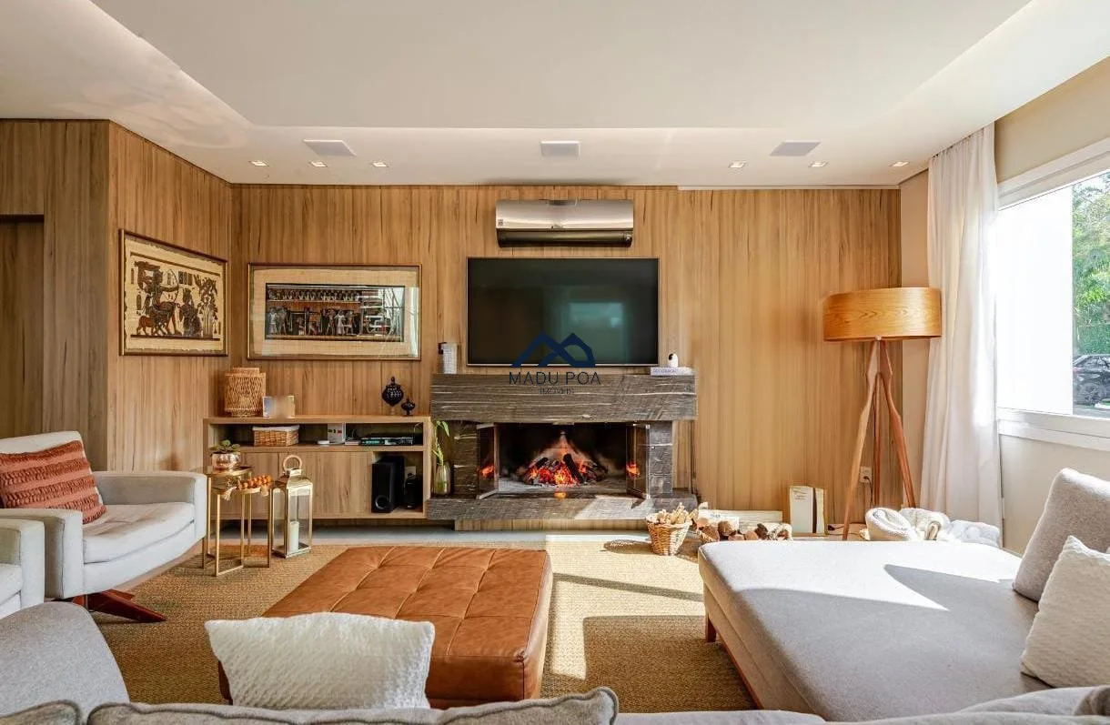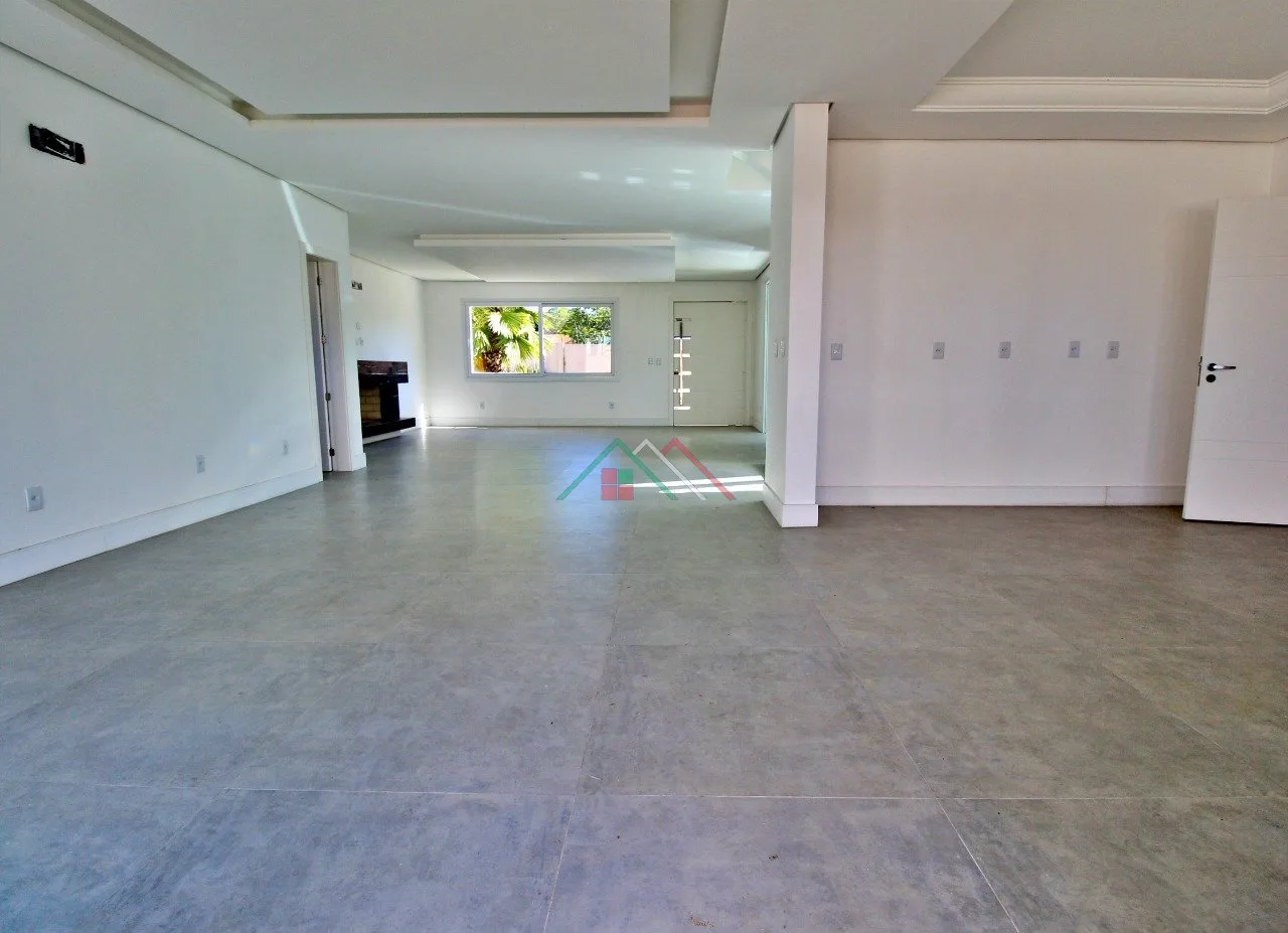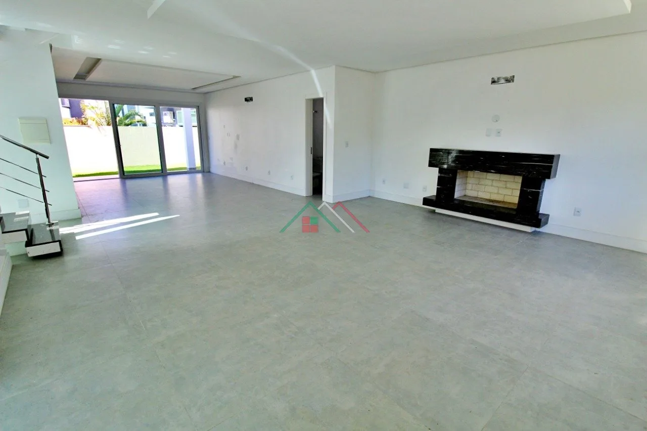 1ºPavimento: Living amplo com lareira, lavabo, cozinha integrada, espaço externo com churrasqueira, pátio privativo, vaga para quatro carros, duas cobertas e duas descobertas, área de serviço interna.