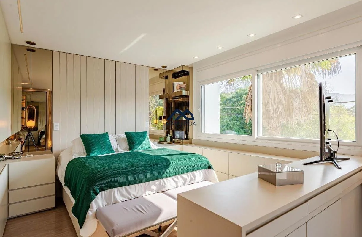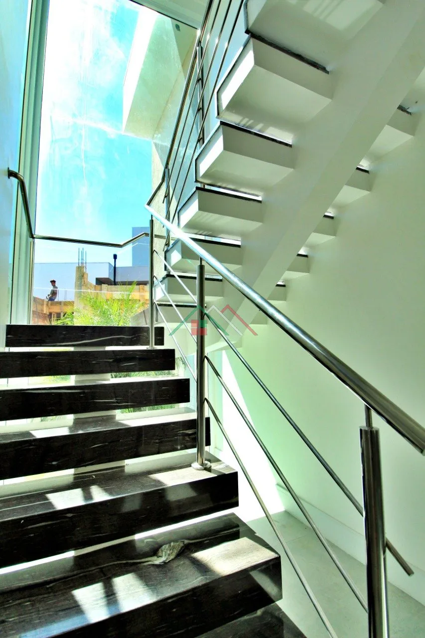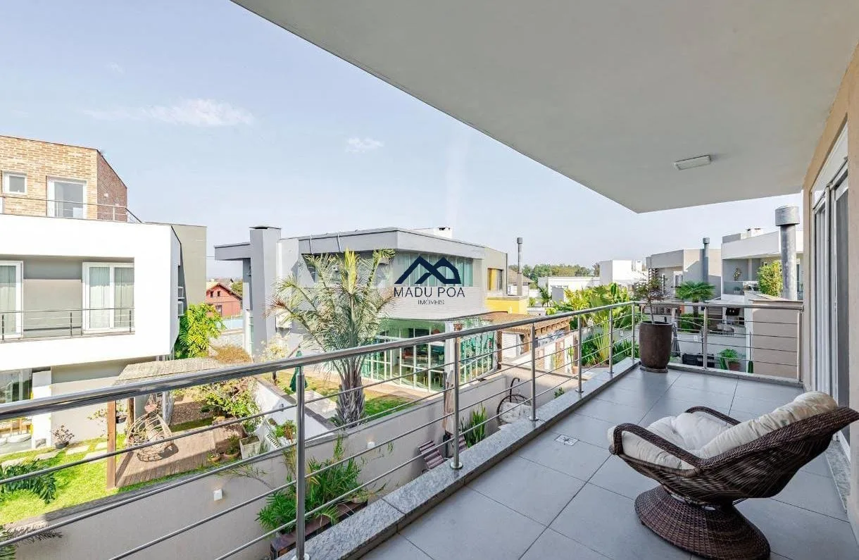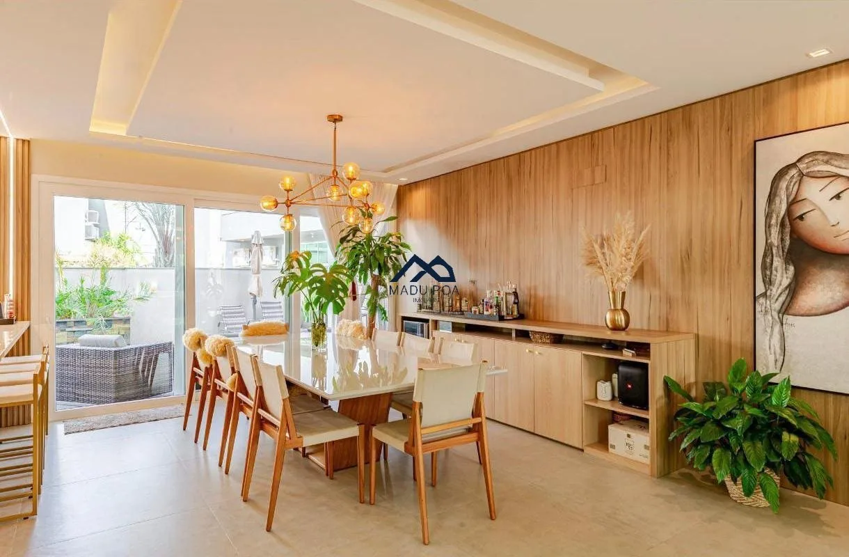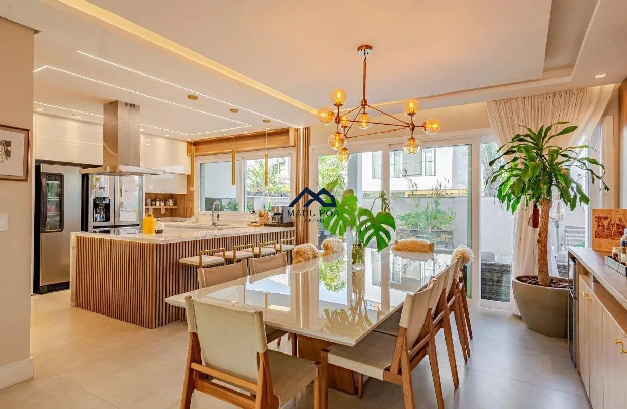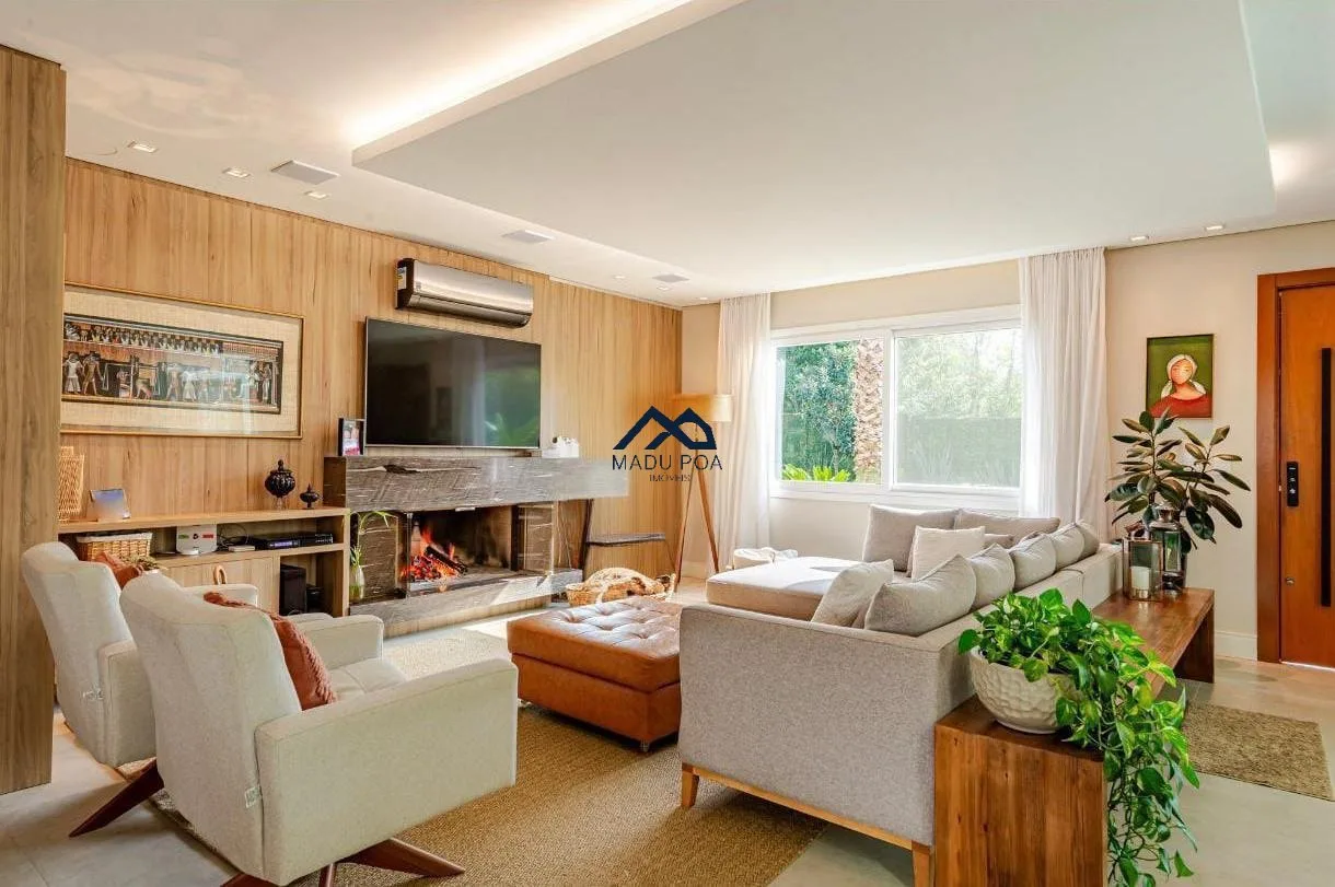 1ºPavimento: Living amplo com lareira, lavabo, cozinha integrada, espaço externo com churrasqueira, pátio privativo, vaga para quatro carros, duas cobertas e duas descobertas, área de serviço interna.