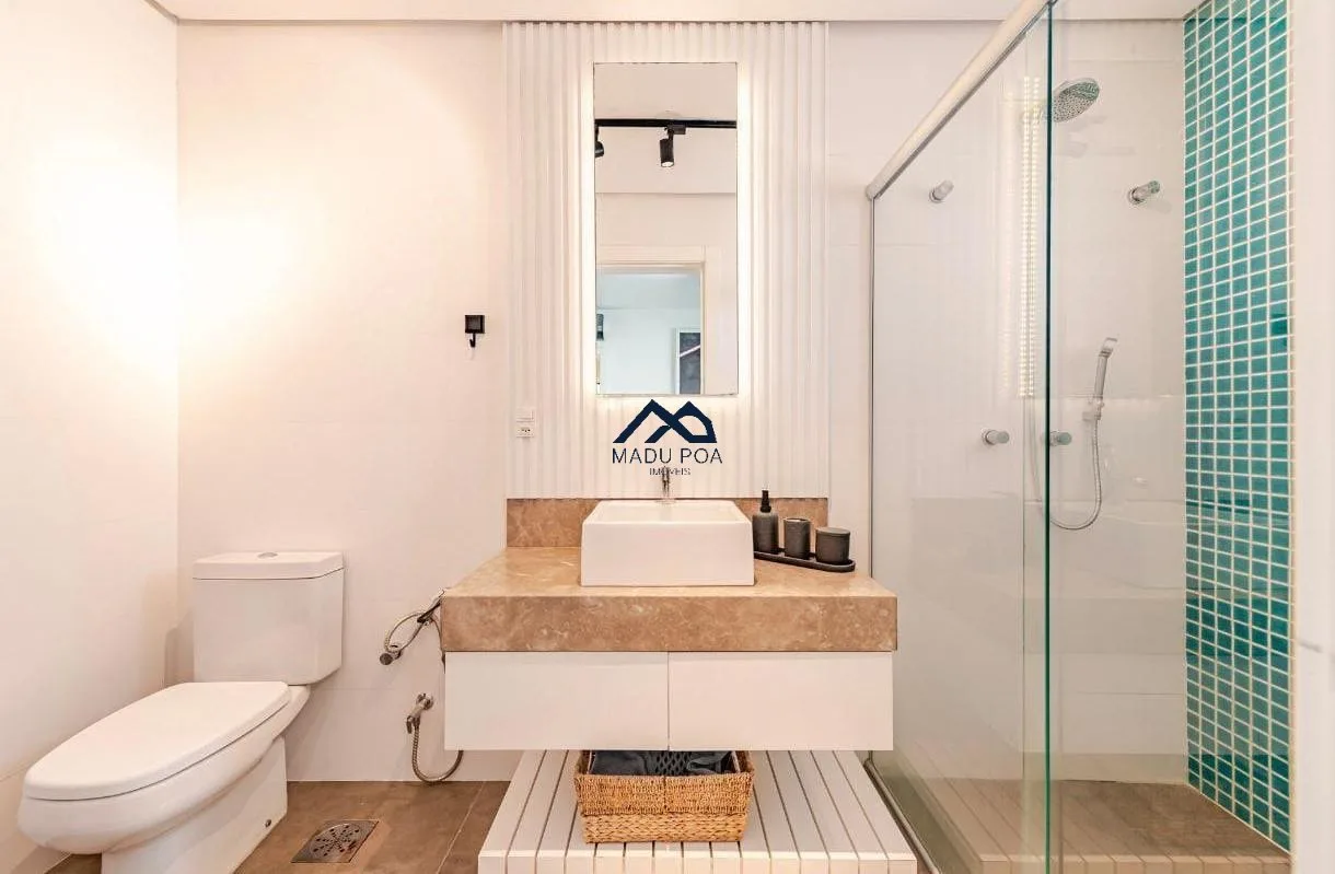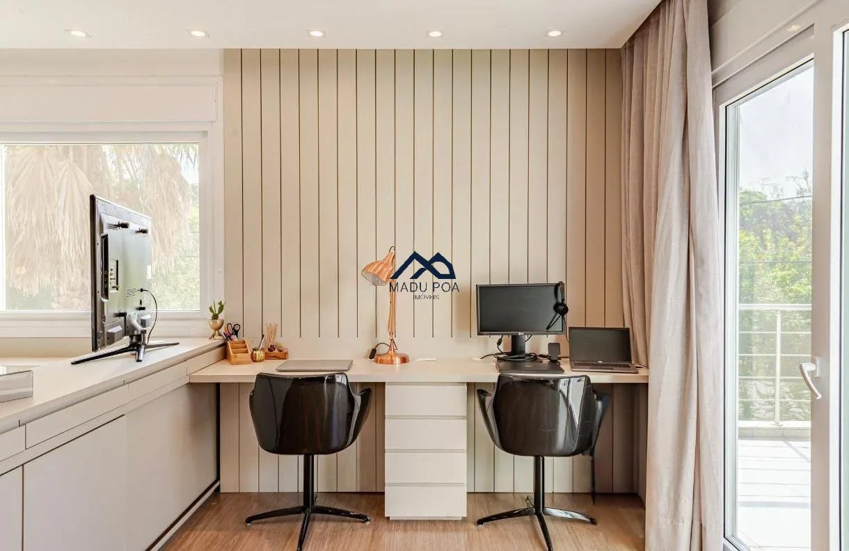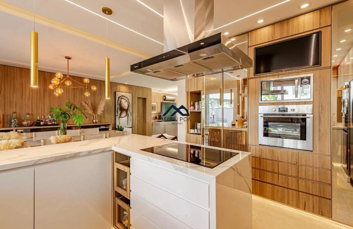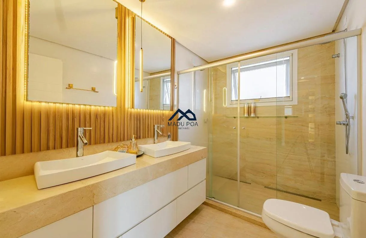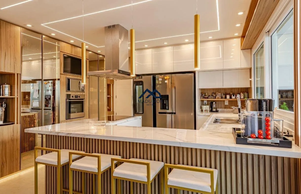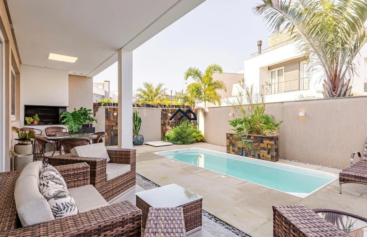 1ºPavimento: Living amplo com lareira, lavabo, cozinha integrada, espaço externo com churrasqueira, pátio privativo, vaga para quatro carros, duas cobertas e duas descobertas, área de serviço interna.
