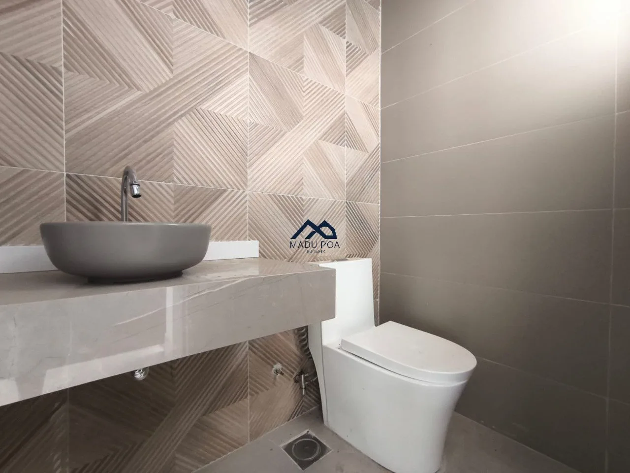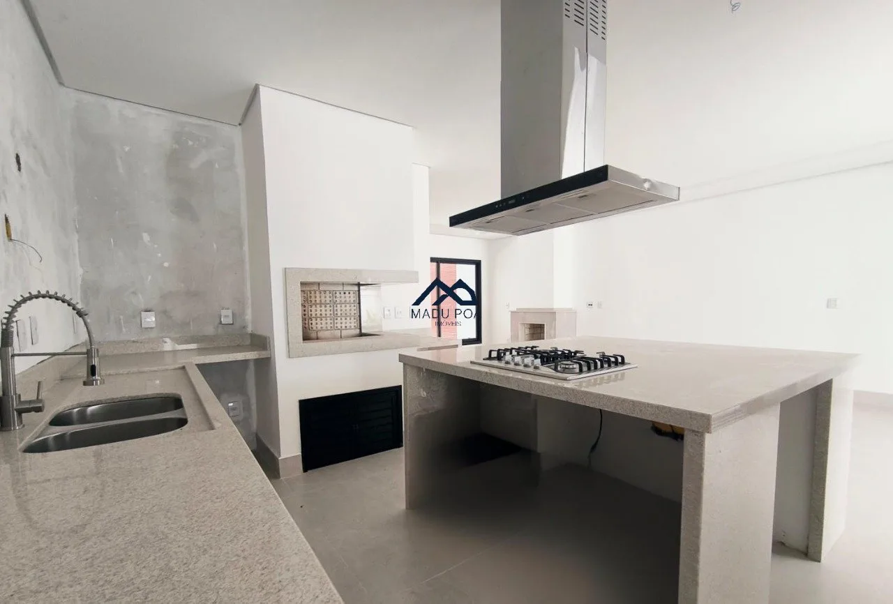 1º Pavimento: Living amplo para dois ambientes, lavabo, lareira, cozinha com ilha, lavanderia separada e pátio com banheiro auxiliar.