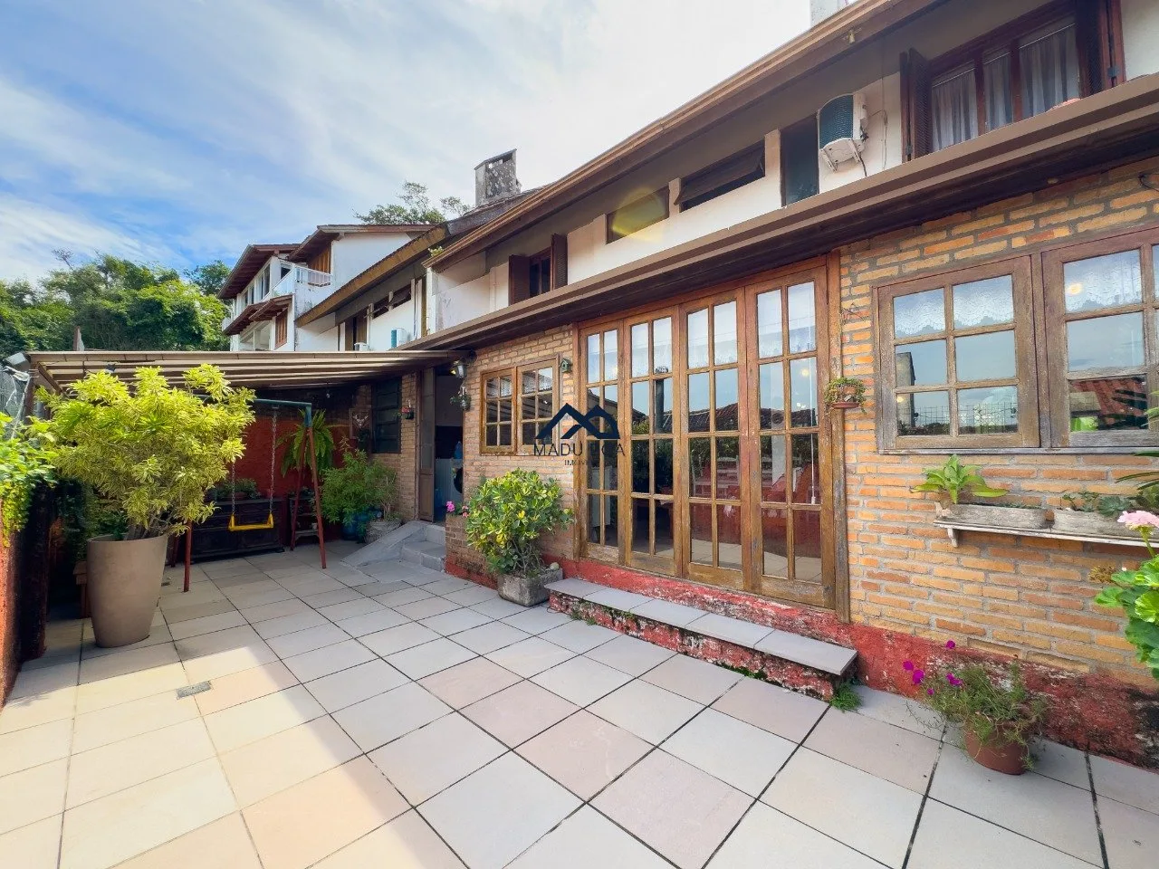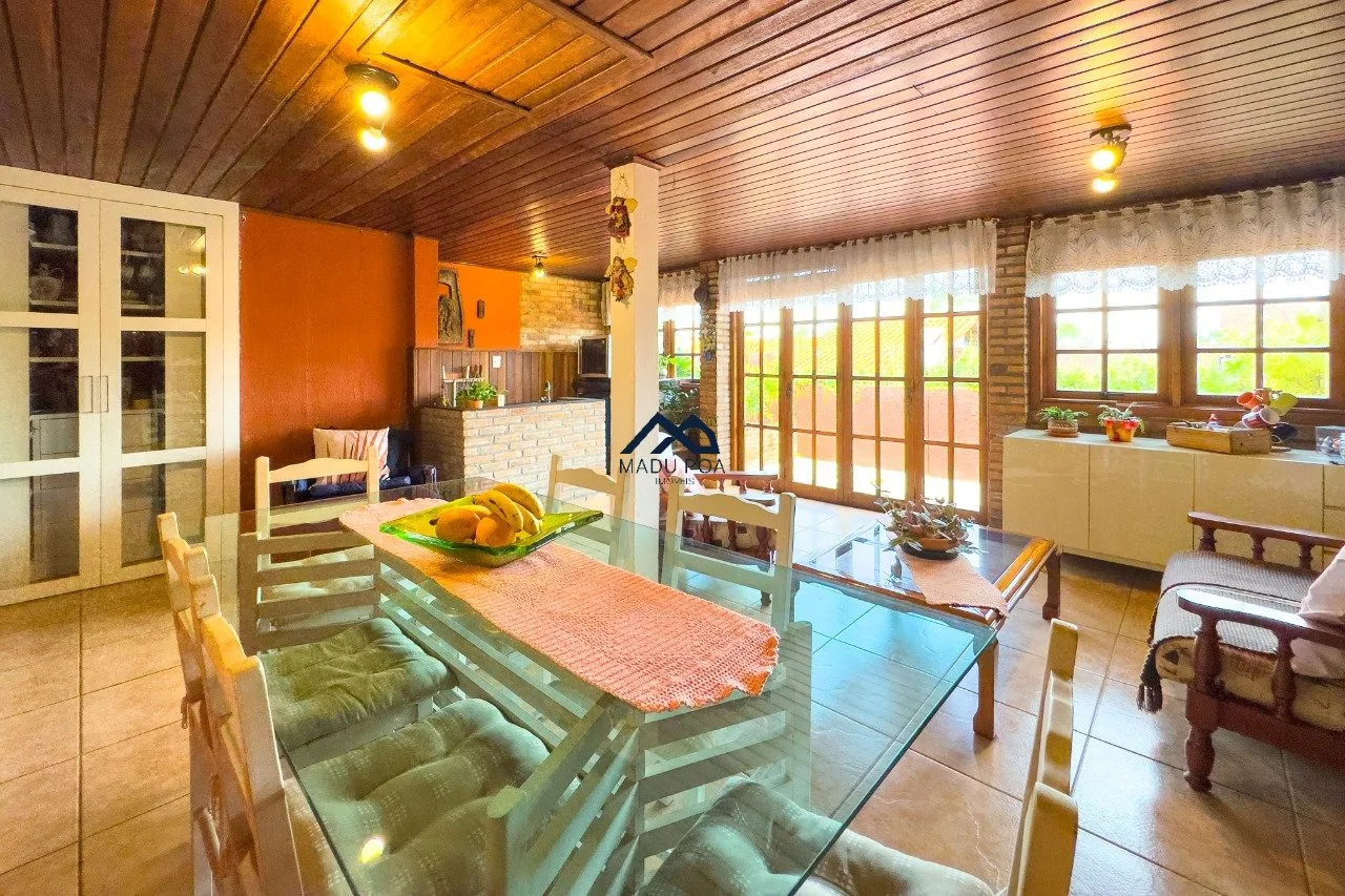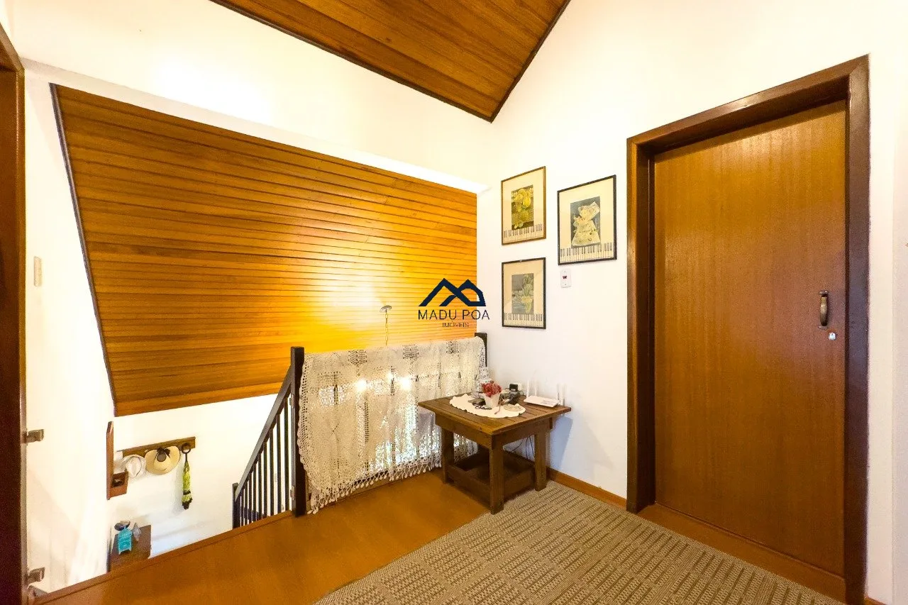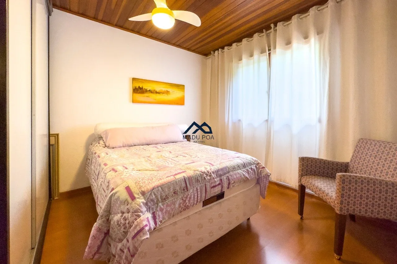 Piso térreo: Amplo living com lareira e churrasqueira, cozinha e lavanderia mobiliadas, lavabo, jardim de inverno, pátio. Três vagas de garagem sendo 1 coberta.