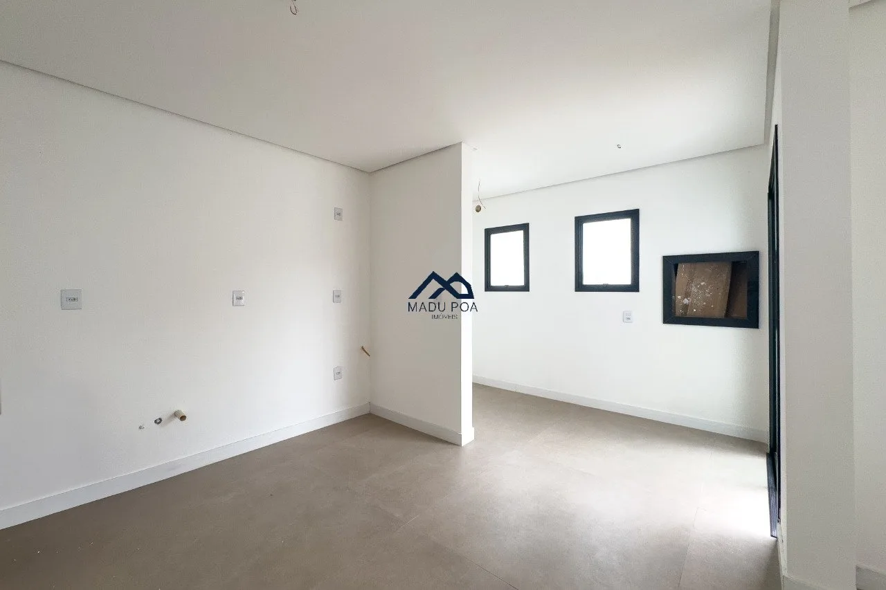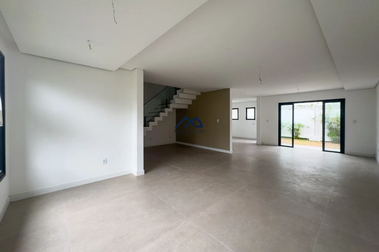 1º Pavimento: Living amplo para dois ambientes, todo integrado, com lareira ecológica, lavabo, cozinha , churrasqueira e pequeno pátio.