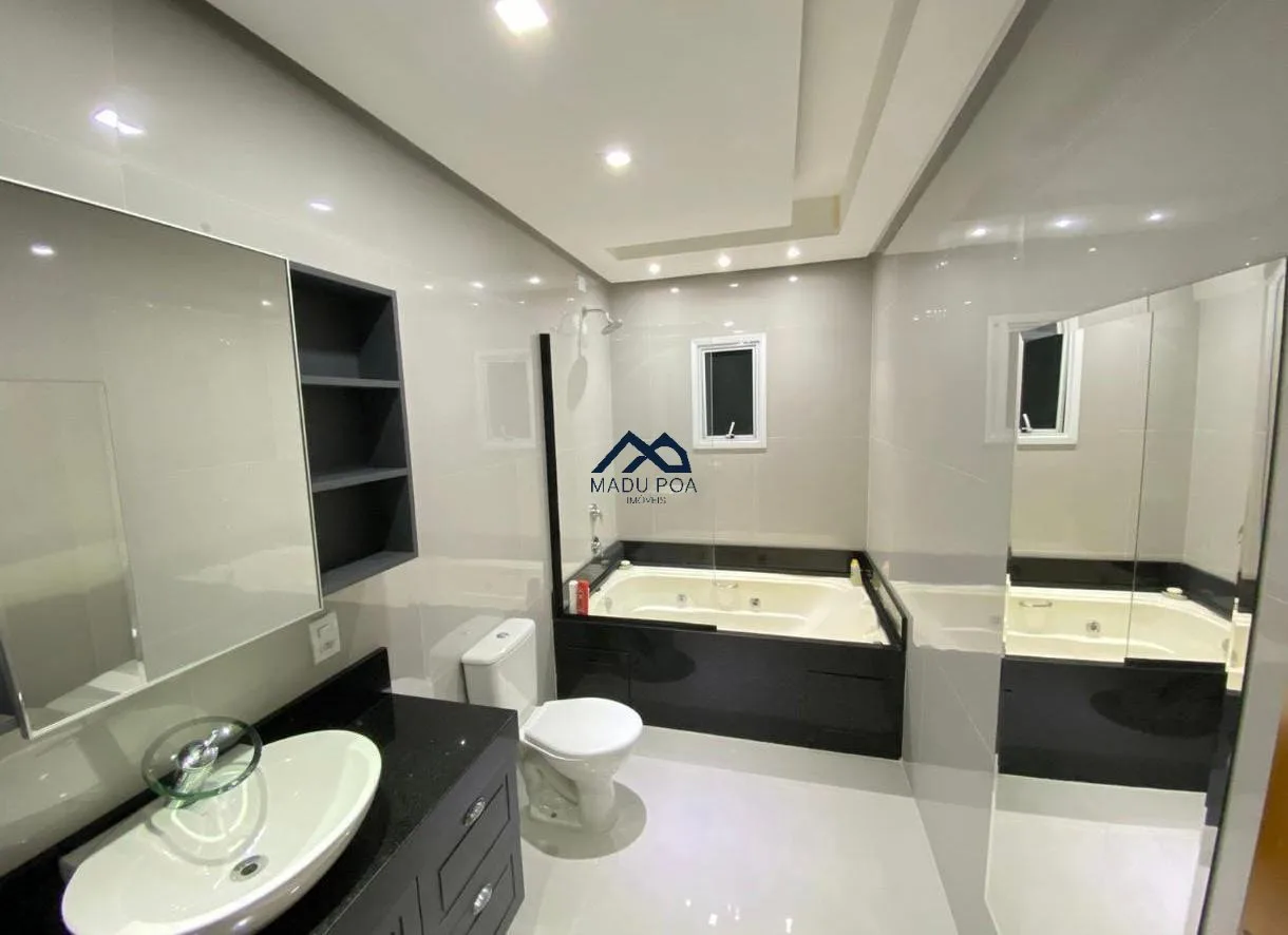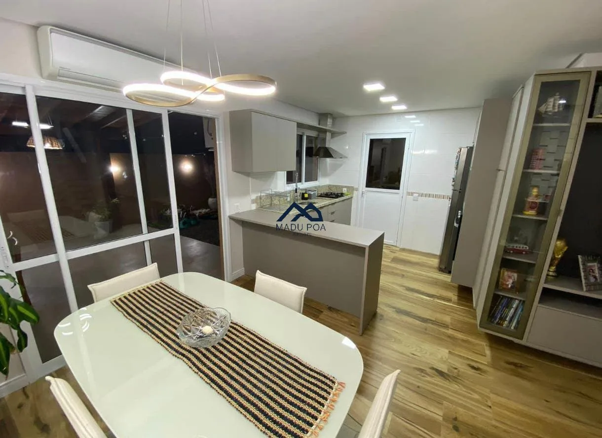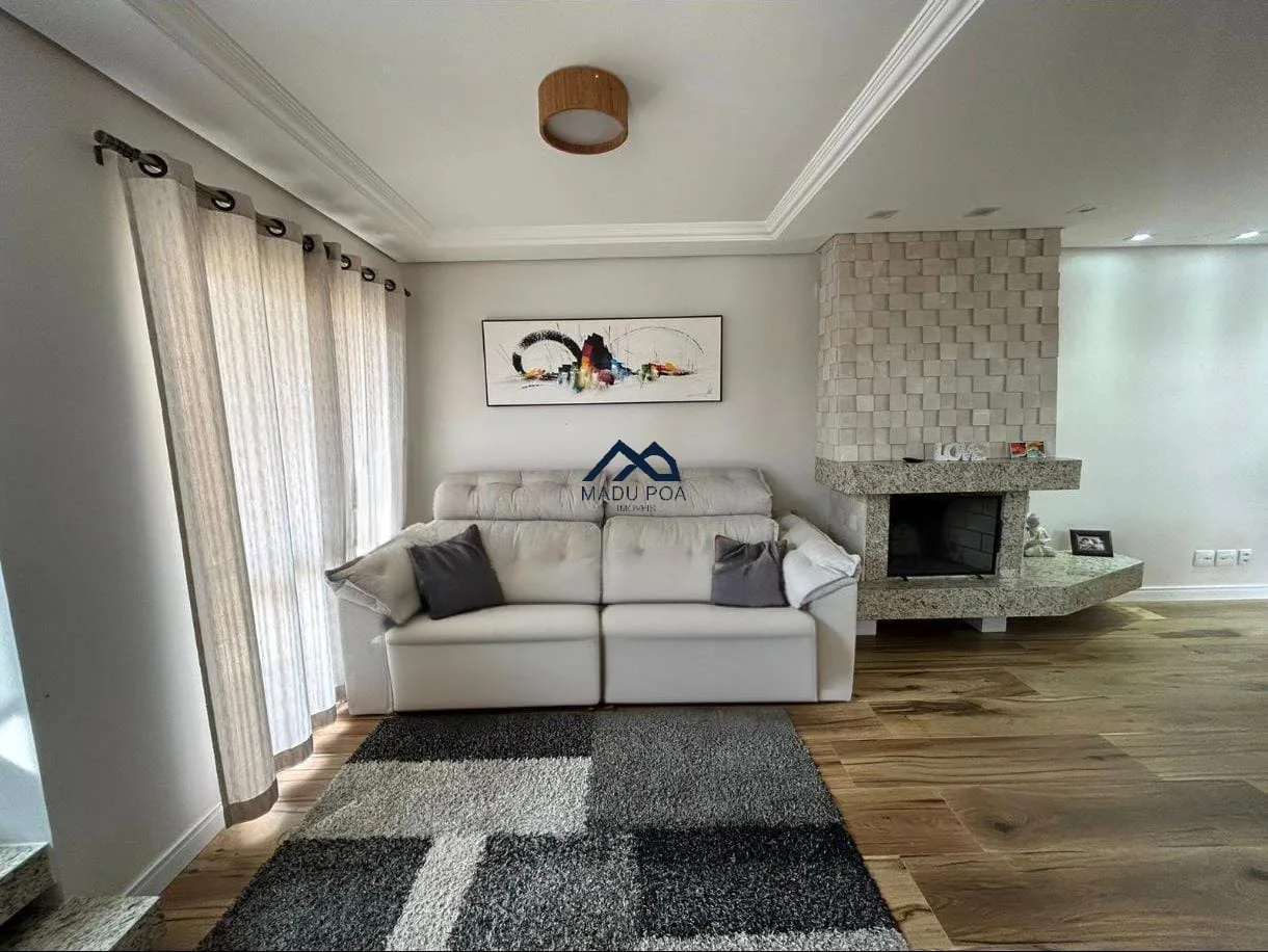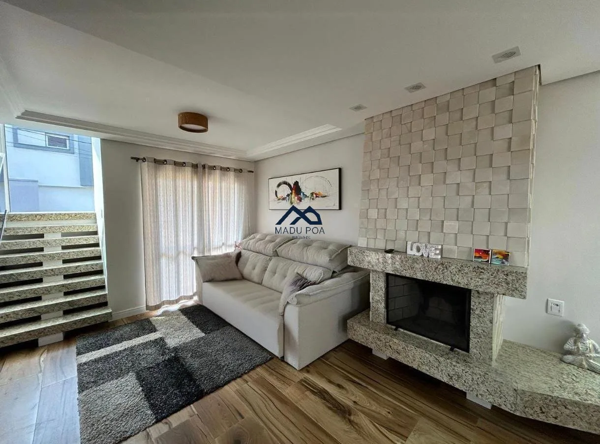 1° Pavimento: Living para dois ambientes, sala de estar com lareira e lavabo, escritório, cozinha planejada, espaço gourmet com churrasqueira, área de serviço, lavanderia e pátio.