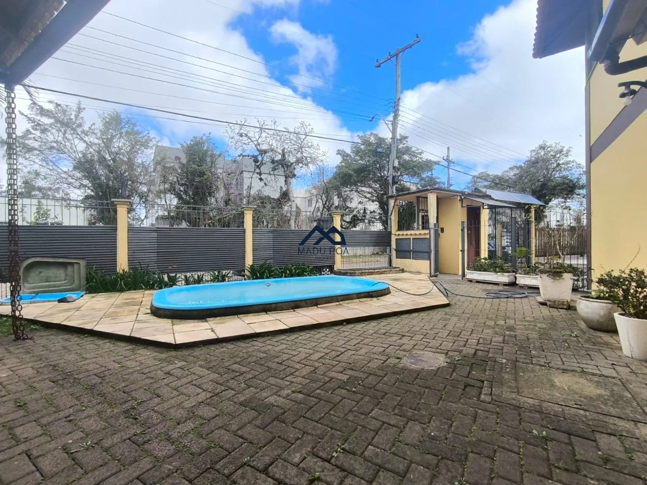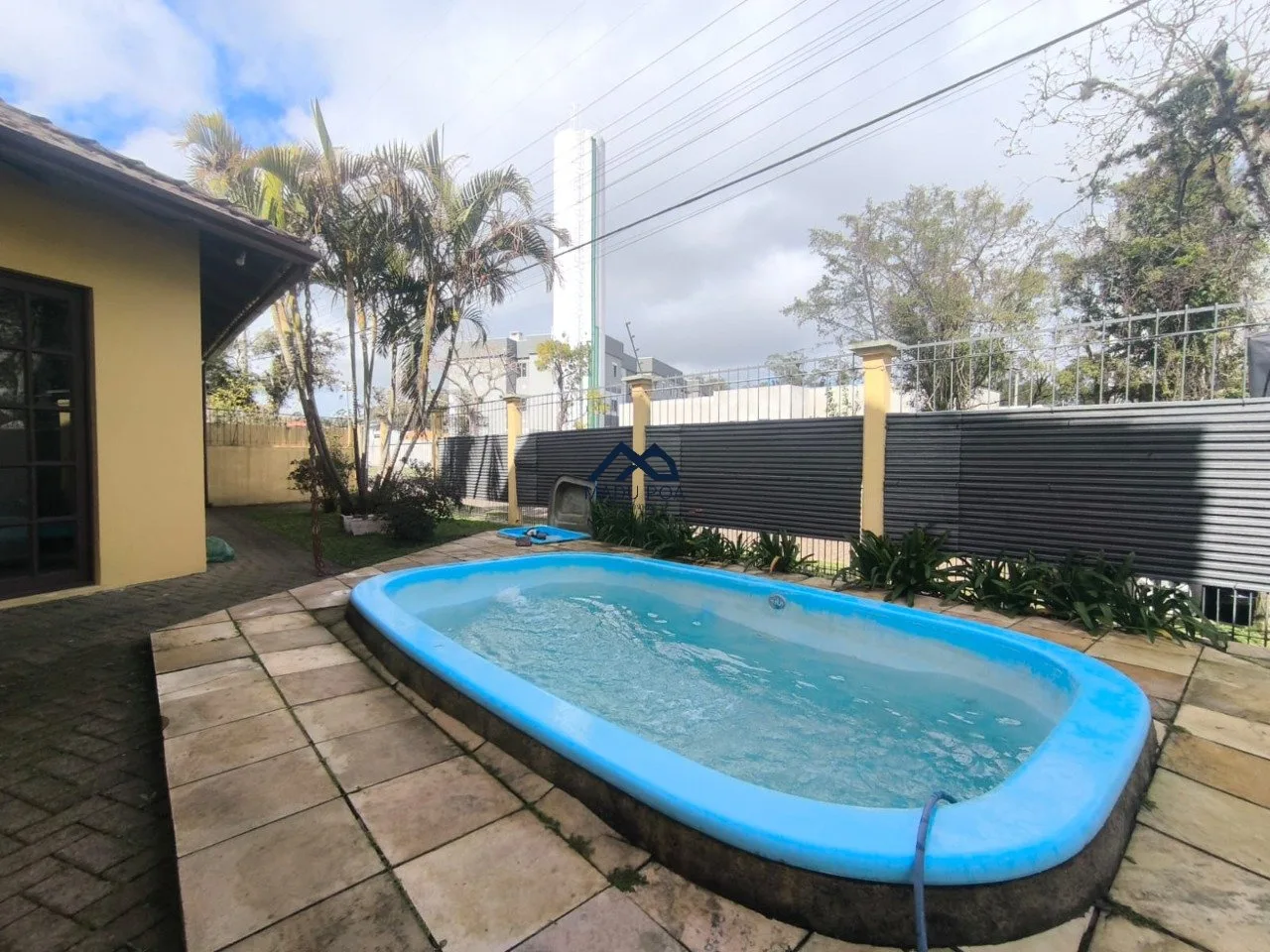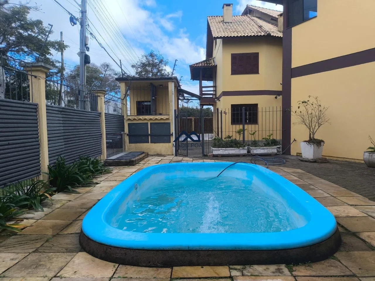 Condomínio com 11 casas, baixo valor condominial, piscina coletiva, jardim e salão de festas.