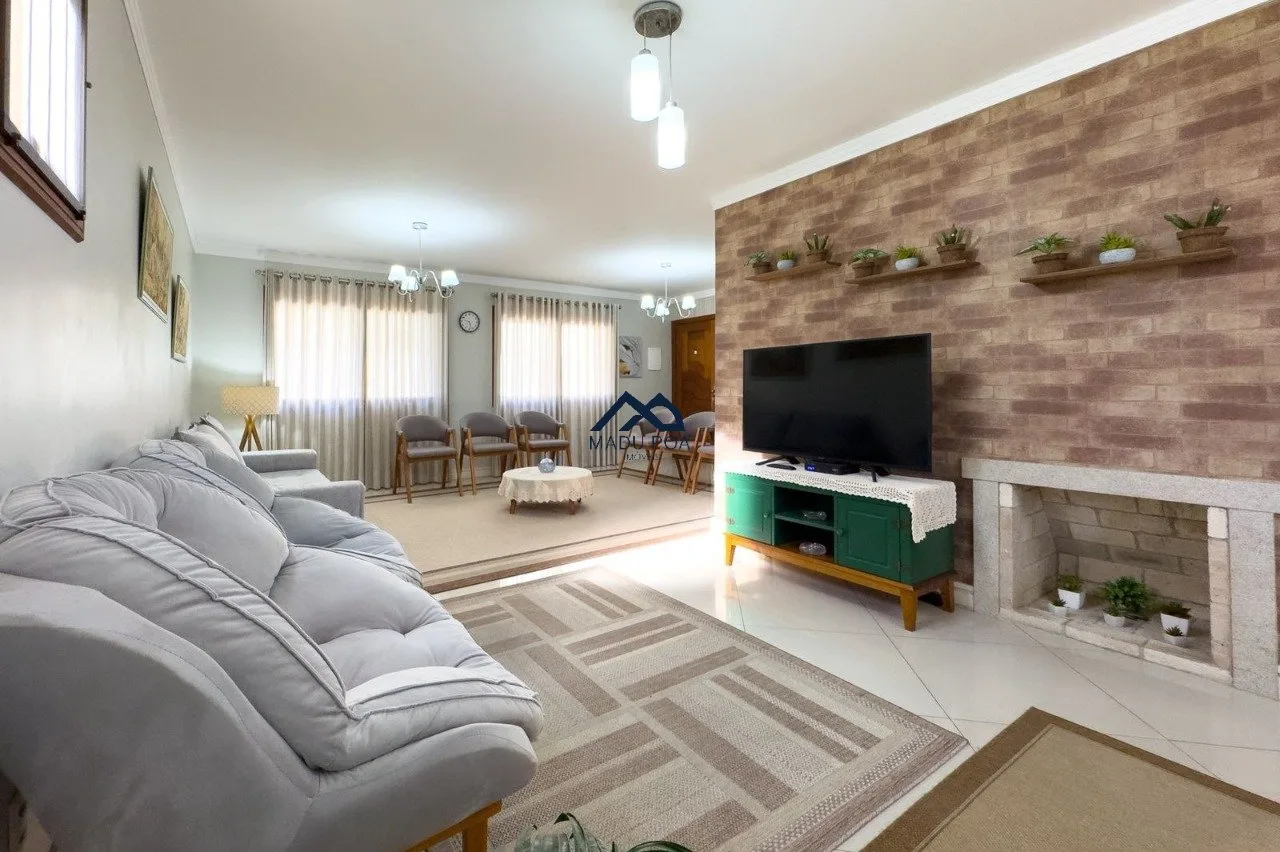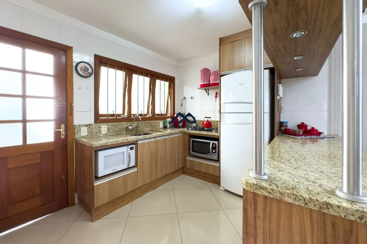 1º Pavimento: Living amplo com dois ambientes com lareira, lavabo, área de serviço fechada, cozinha com móveis planejados, despensa, copa, despensa e pequeno pátio privativo. Na lateral duas vagas individuais.