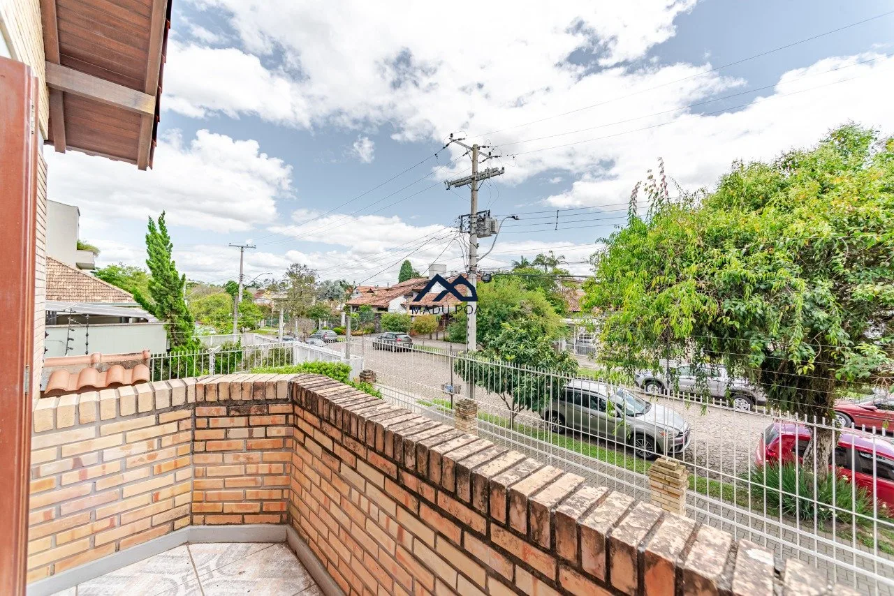 Piso térreo: living com lareira, cozinha mobiliada, lavabo, área de serviço, garagem para 2 carros com espaço gourmet e churrasqueira.