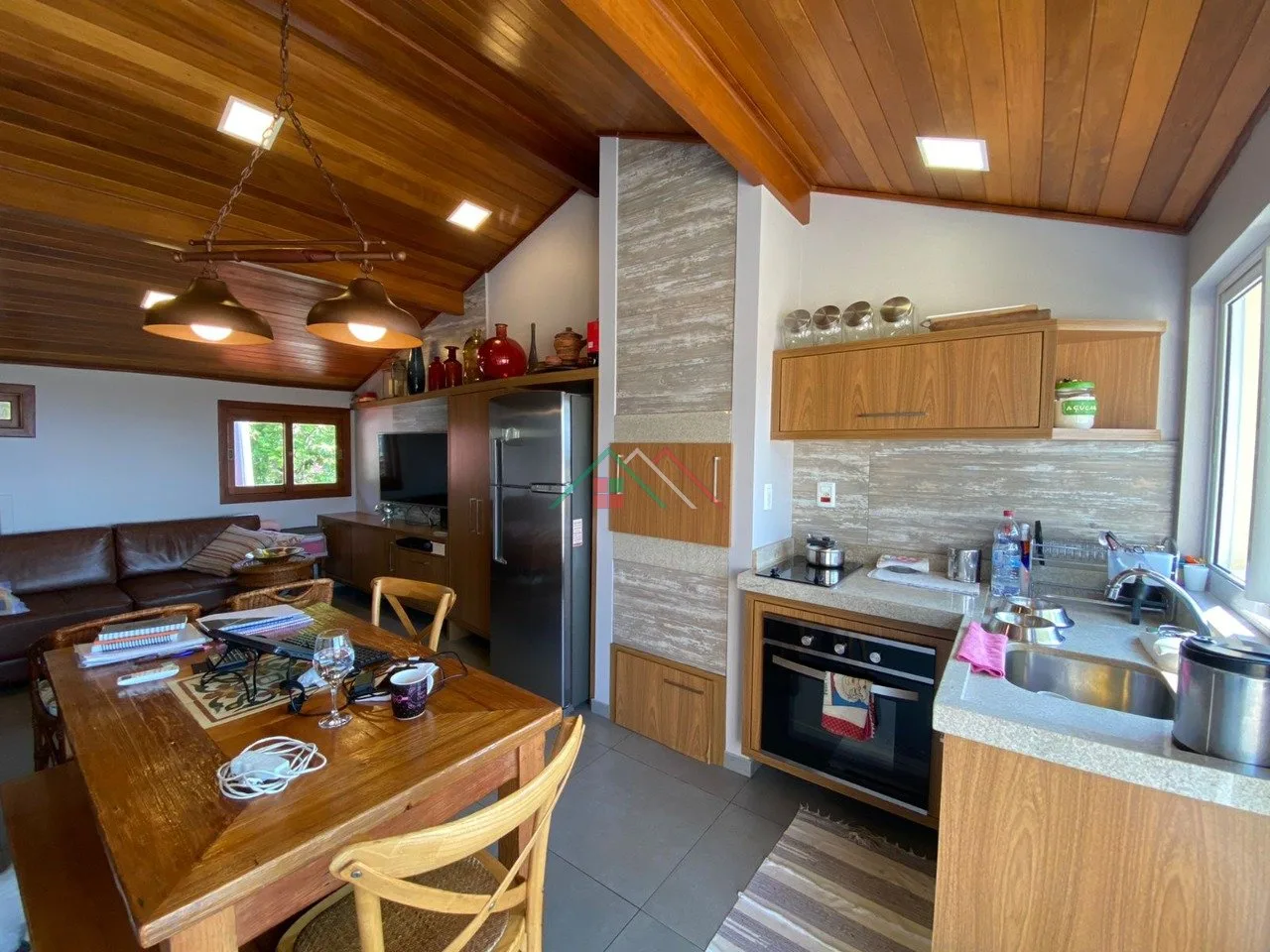 Piso superior: Espaço multiuso com cozinha, churrasqueira, pequeno depósito, banheiro social e terraço com vista do Guaíba.