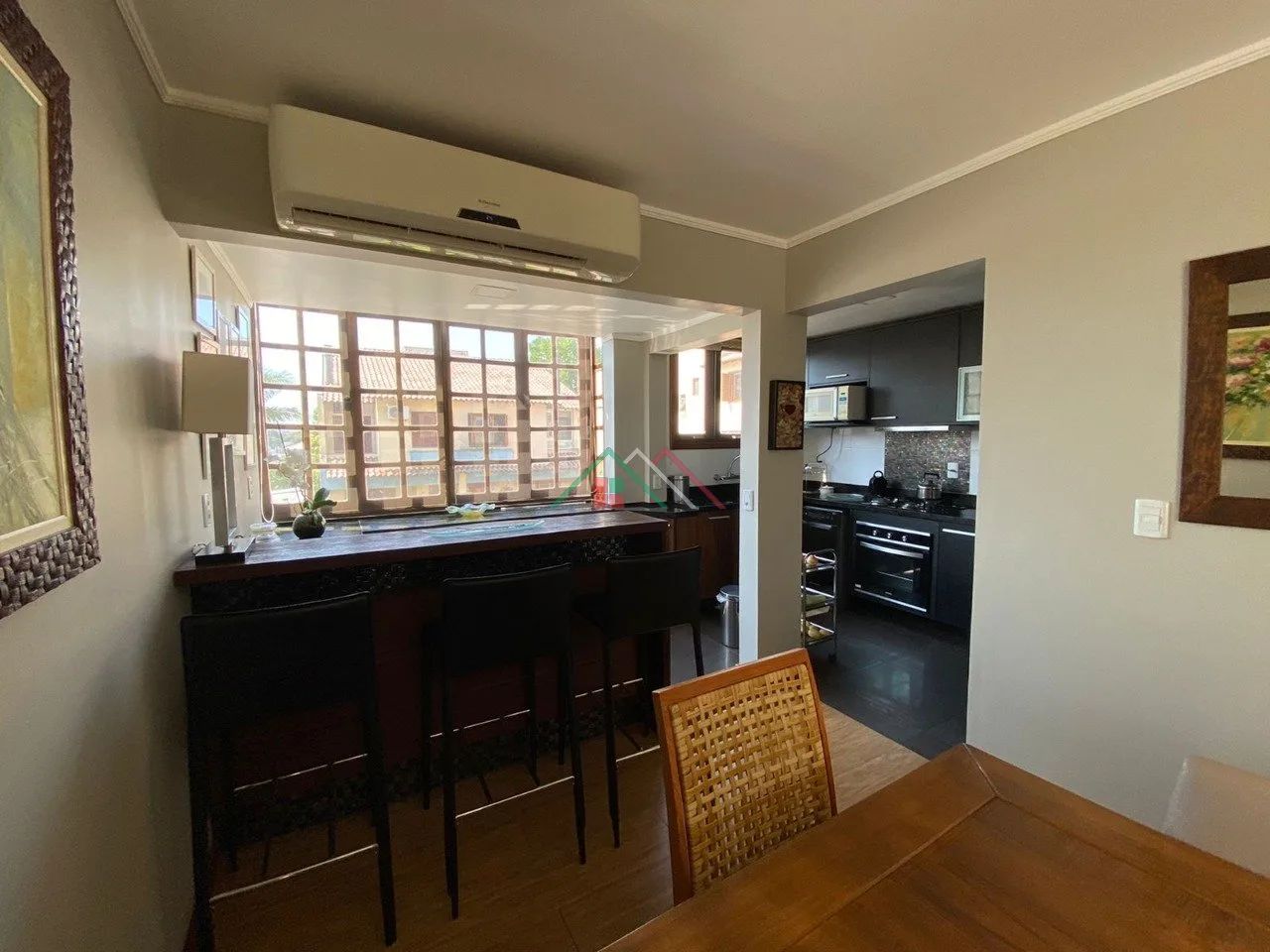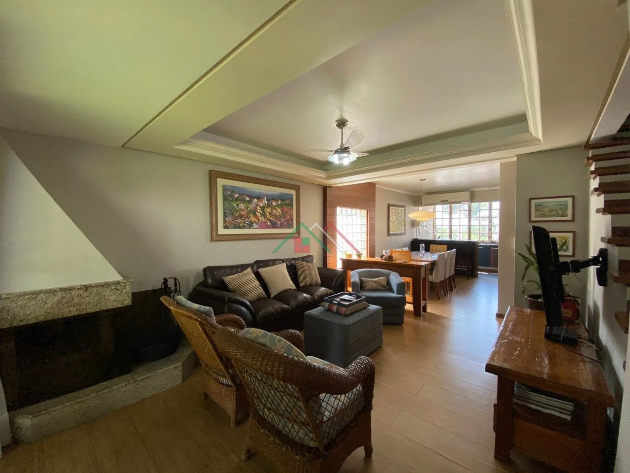 Piso térreo: Amplo living para 2 ambientes com lareira, lavabo, copa/cozinha mobiliada. Pequeno pátio frontal.