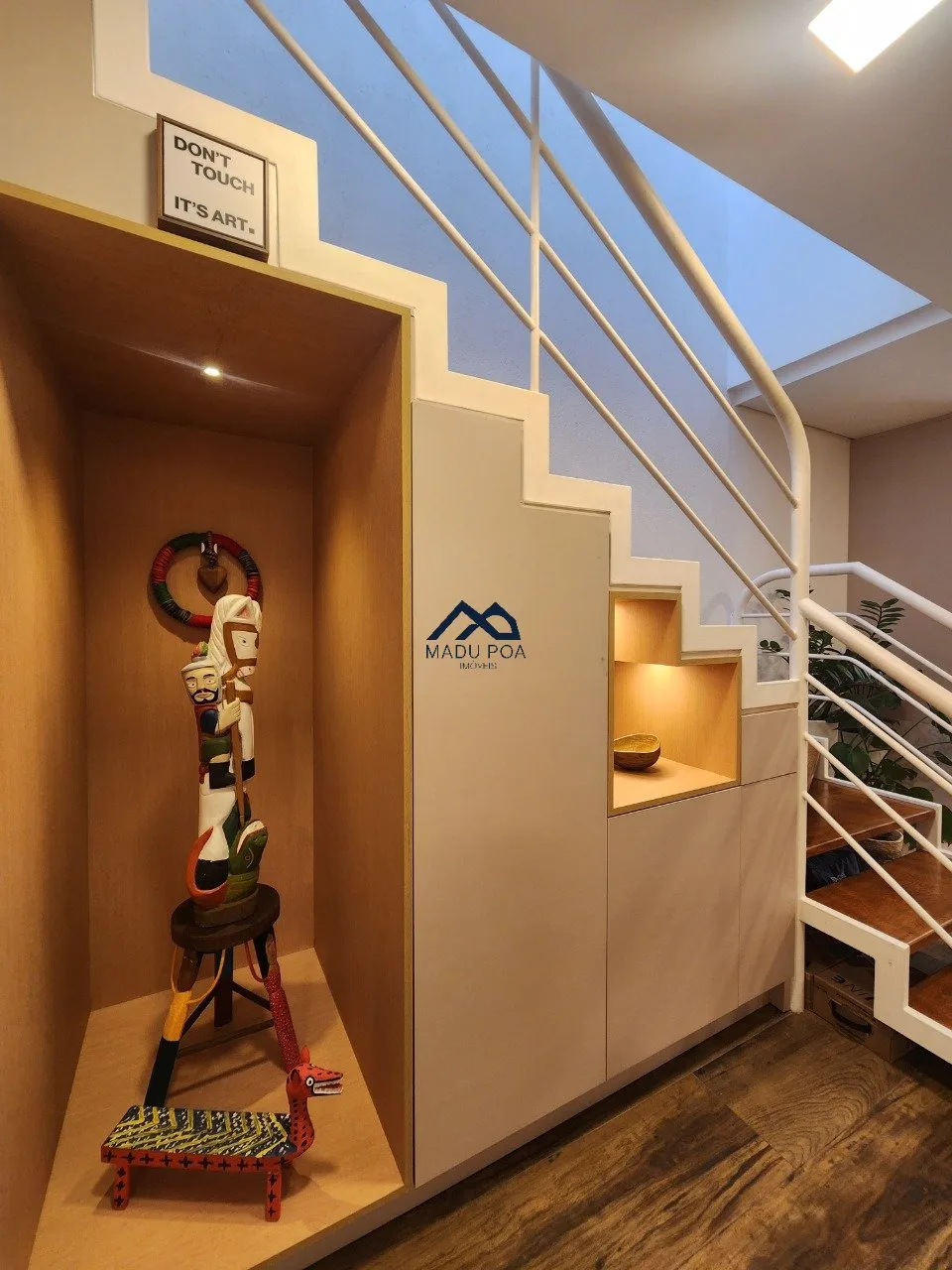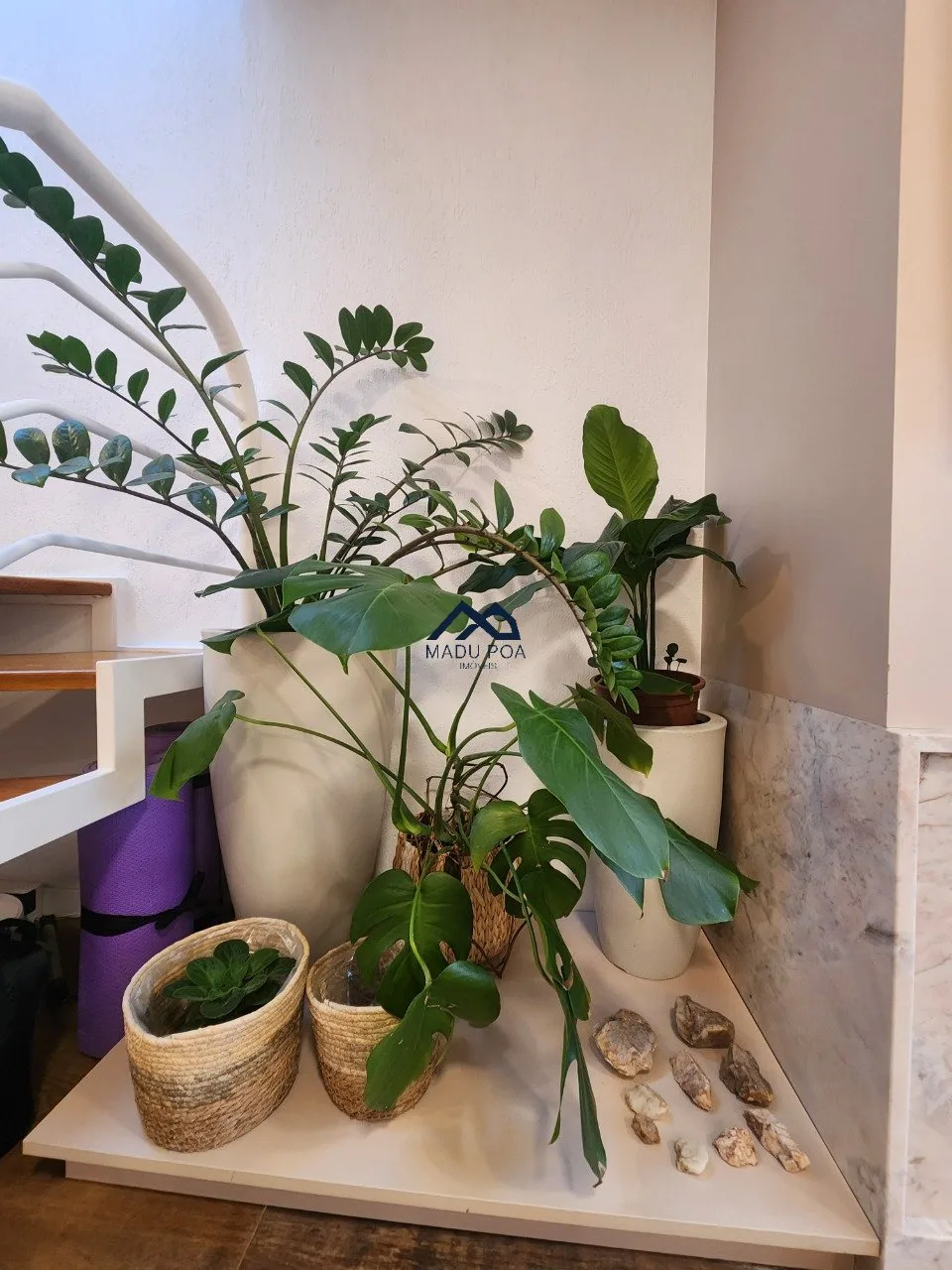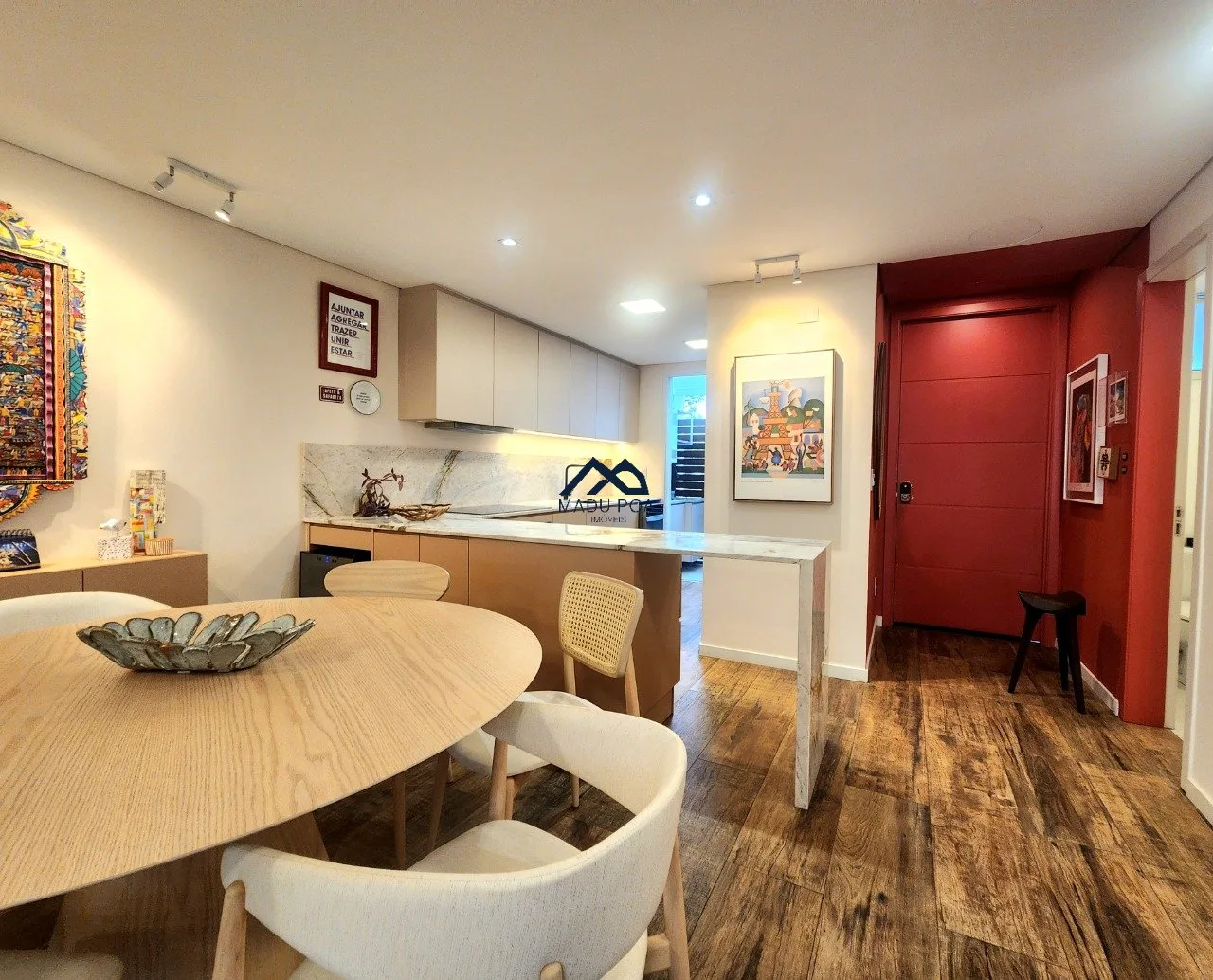 1° Pavimento: Living para dois ambientes integrados a cozinha americana, lavabo, área de serviço independente e pátio privativo com churrasqueira.