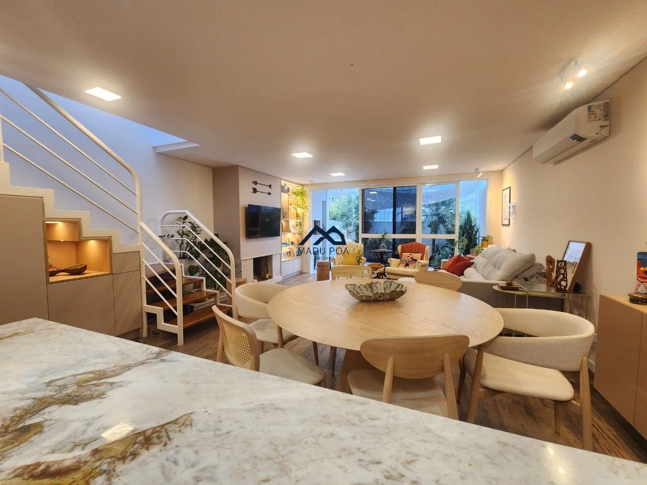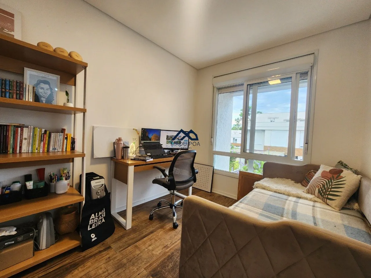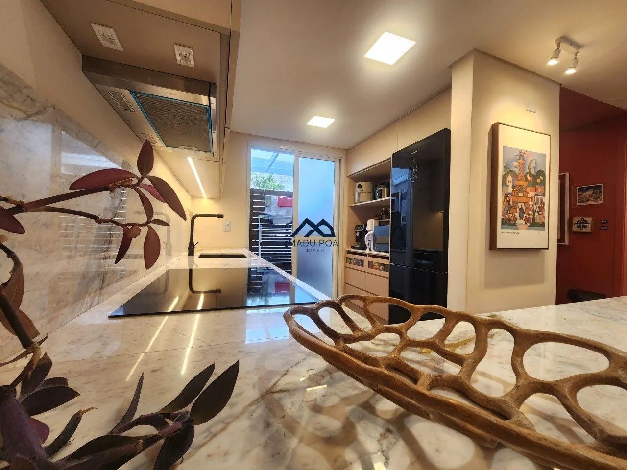 Casa em condomínio, com projeto contemporâneo, diferenciado, em ótima localização. A casa tem 03 dormitórios, sendo 01 suíte com 18 m², living para dois ambientes com lareira e churrasqueira na varanda que integra com o pátio, lavabo e duas vagas de garagem. O condomínio conta com salão de festas, piscina com vista panorâmica, horta, playground e mini quadra esportiva.