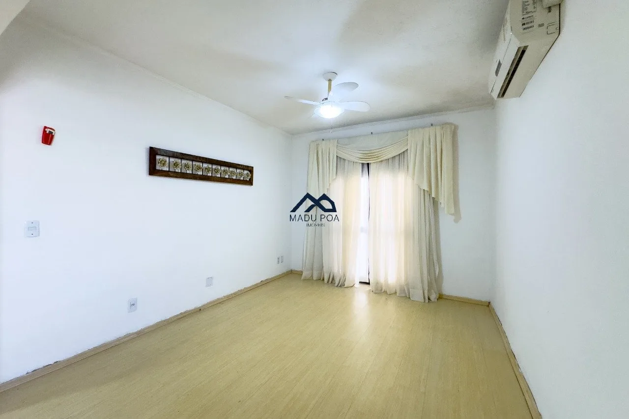 São três dormitórios, sendo uma suíte, um dormitório com sacada, banheiro social.