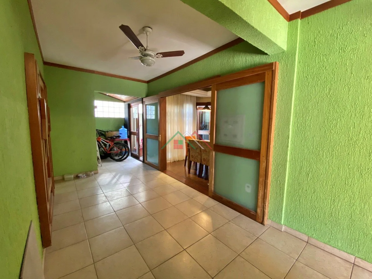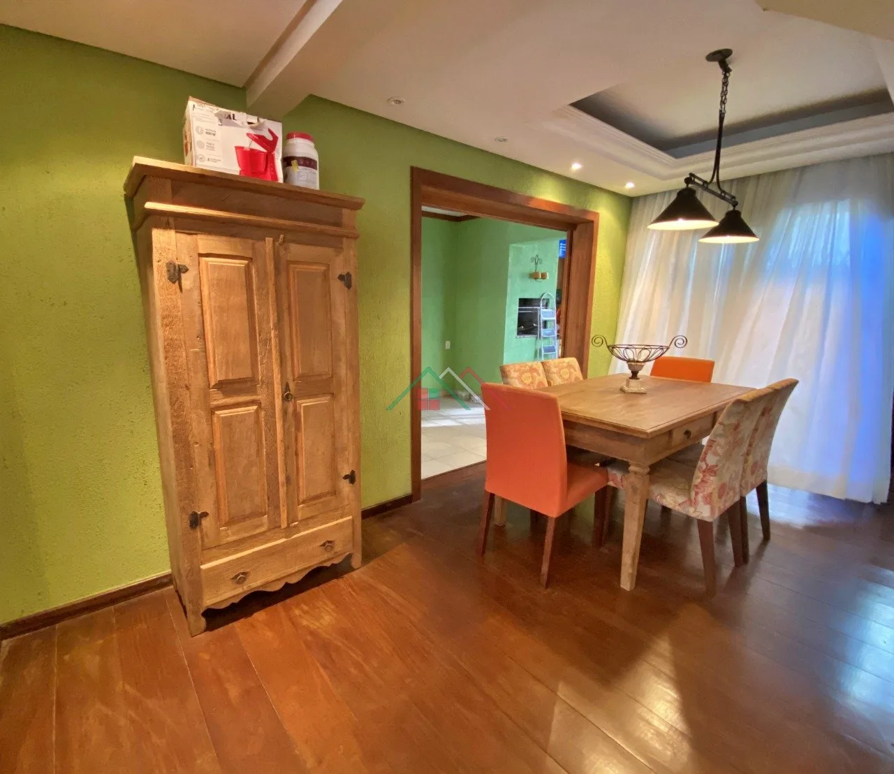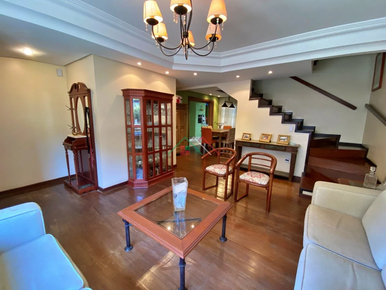 Piso térreo: Living, sala de jantar, lavabo, cozinha mobiliada, lavanderia, garagem com churrasqueira, pequeno pátio, vaga para 2 carros cobertos.
