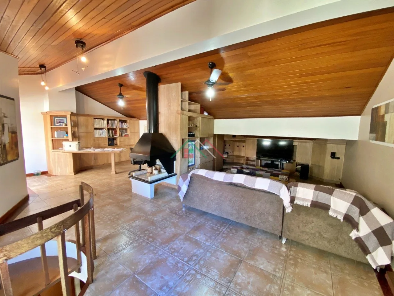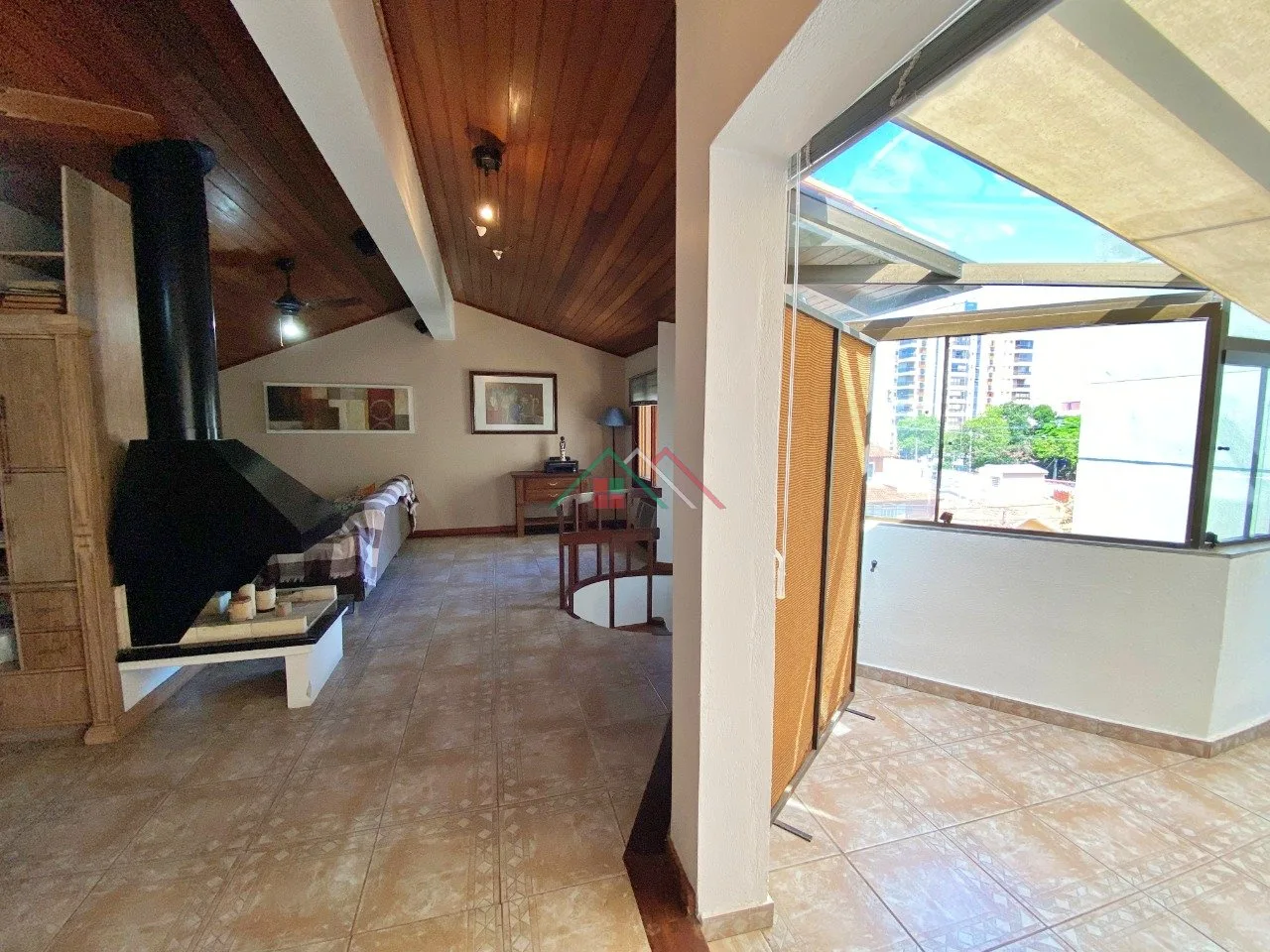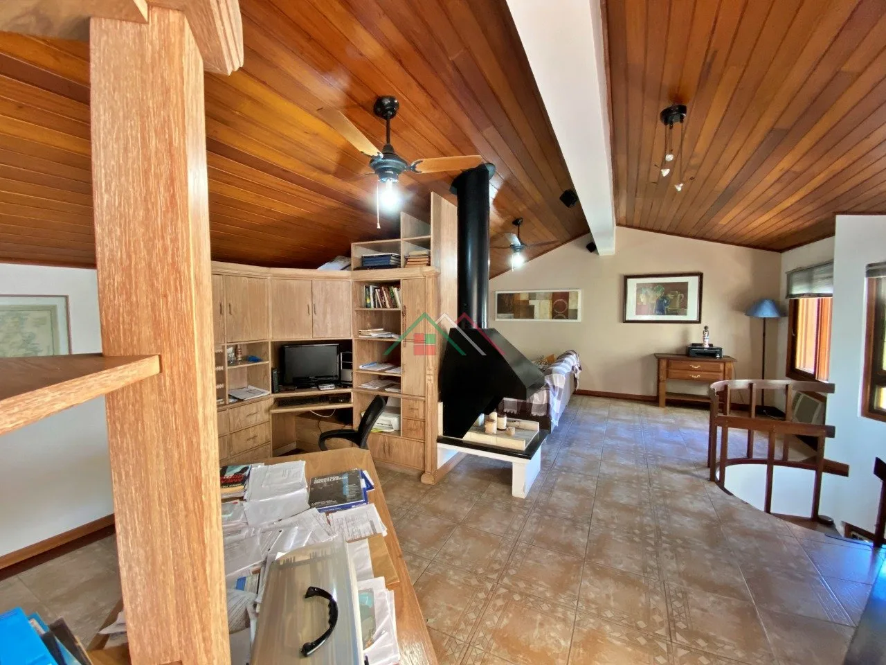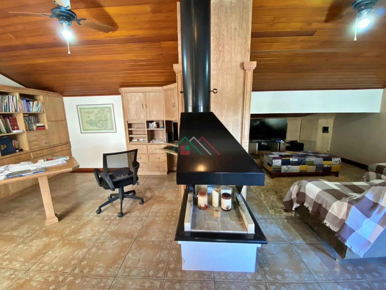 Terceiro piso: sala multiuso com lareira e escritório, sacada(espaço fitness).