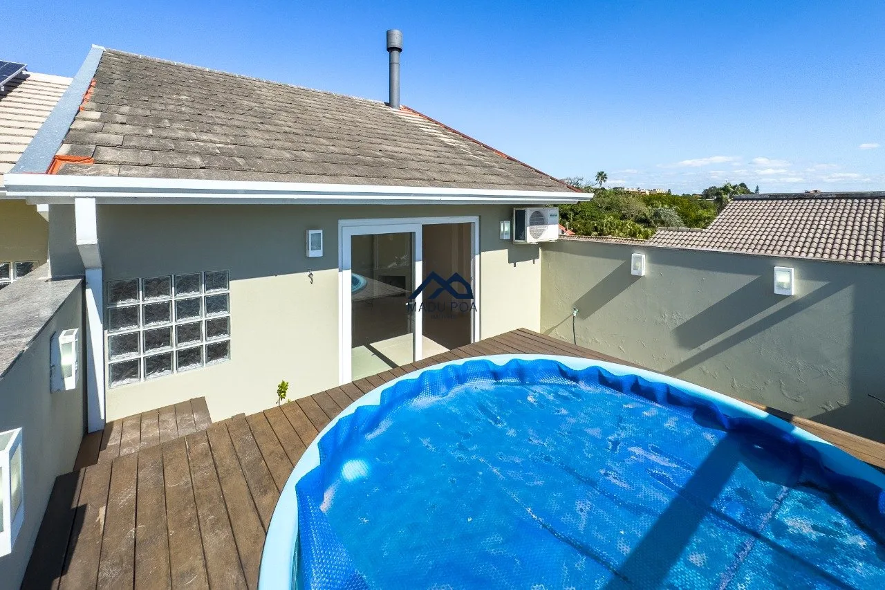 Casa em condomínio à venda no Bairro Tristeza – 202m² privativos. Localizada a apenas meia quadra da tradicional Floricultura Winge e do Colégio Mãe de Deus, esta casa desocupada conta com móveis sob medida, excelente posição solar e está muito bem situada dentro do condomínio, proporcionando uma vista definitiva.