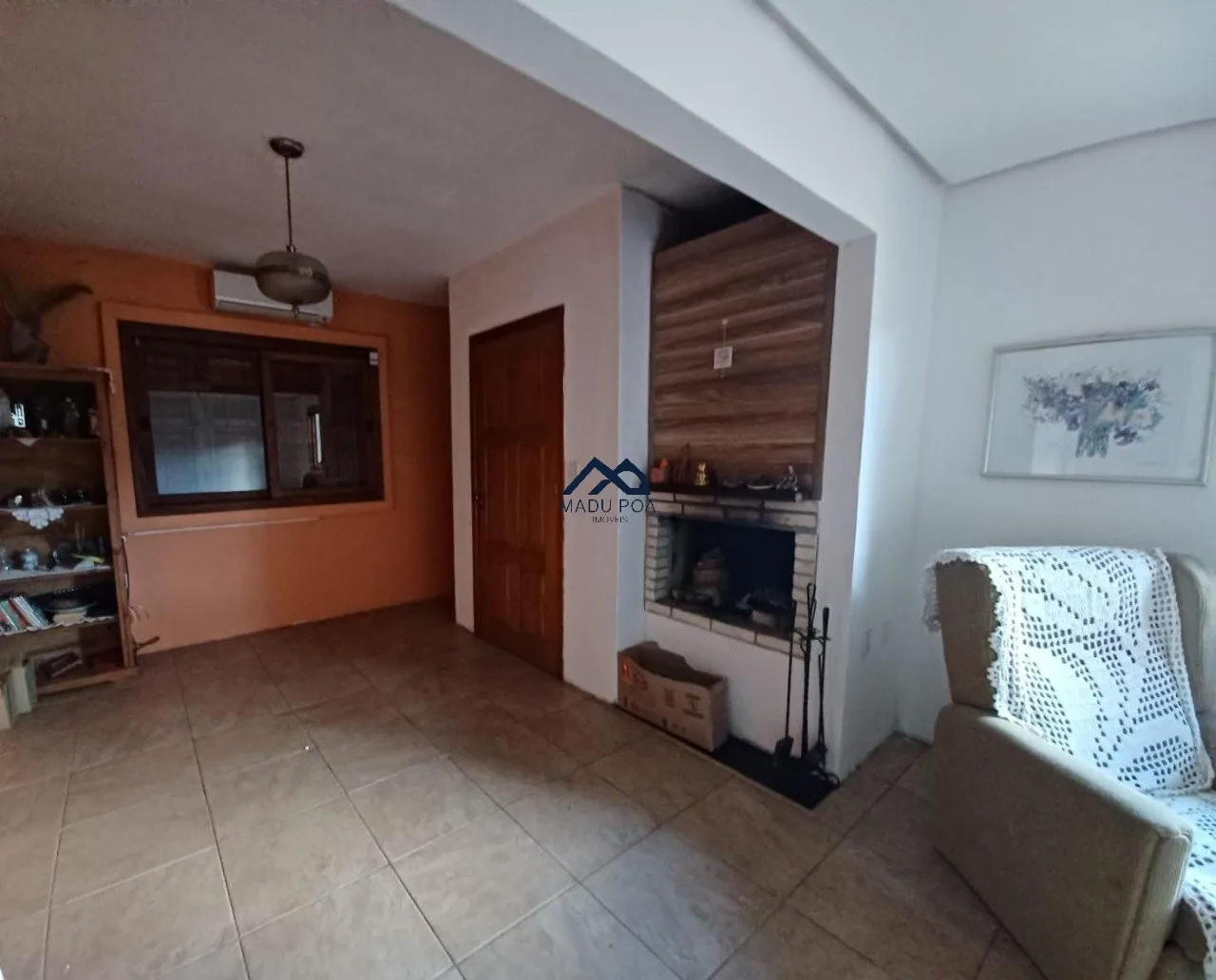 2° Pavimento: Living amplo com lareira e ar condicionado, 3 dormitórios sendo dois com moveis planejados, banheiro social e cozinha com moveis.