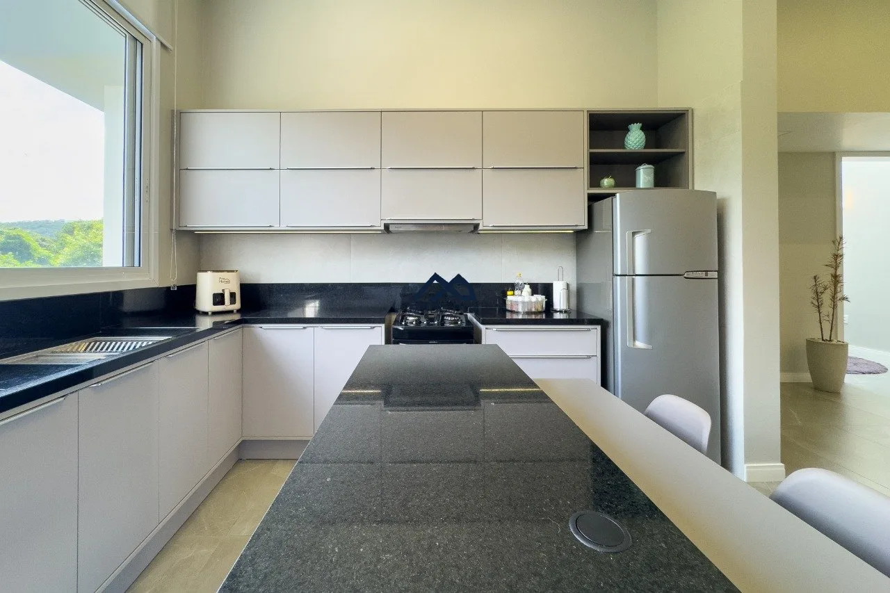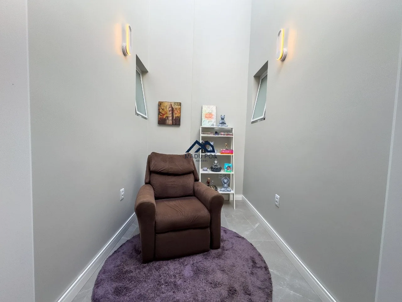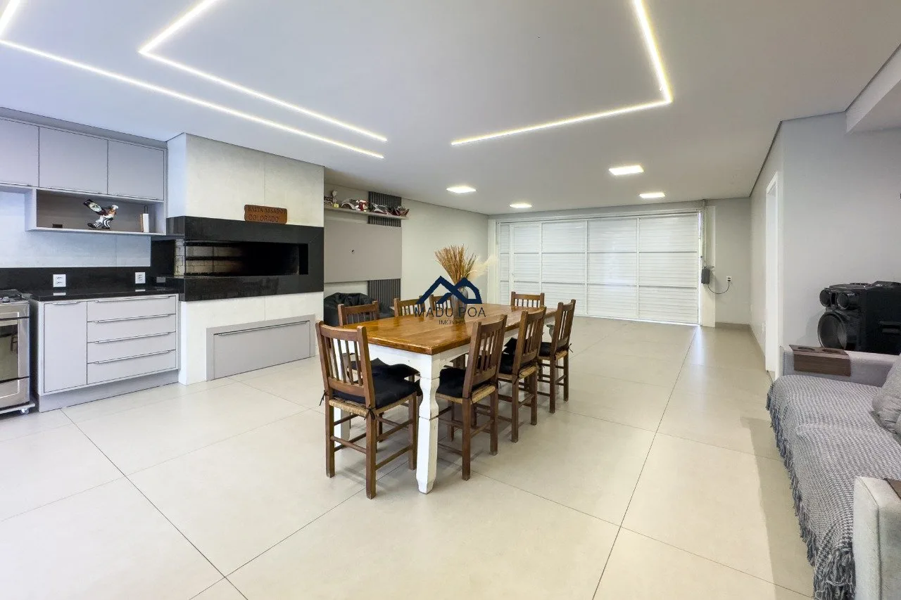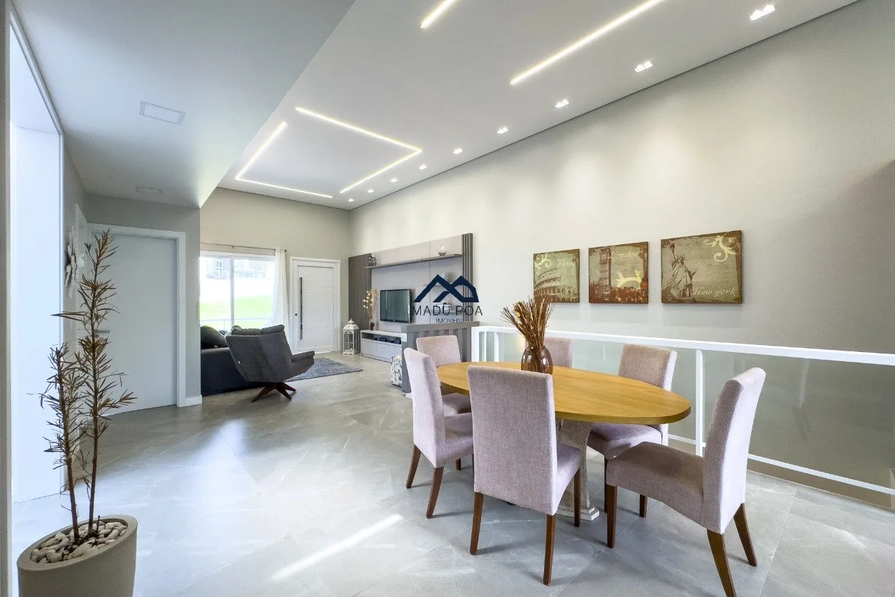 Teto em gesso em todos os ambientes e iluminação LED. Aberturas em alumínio, inclusive o portão da garagem. Espera para splits sendo que as máquinas ficam ocultas no telhado.