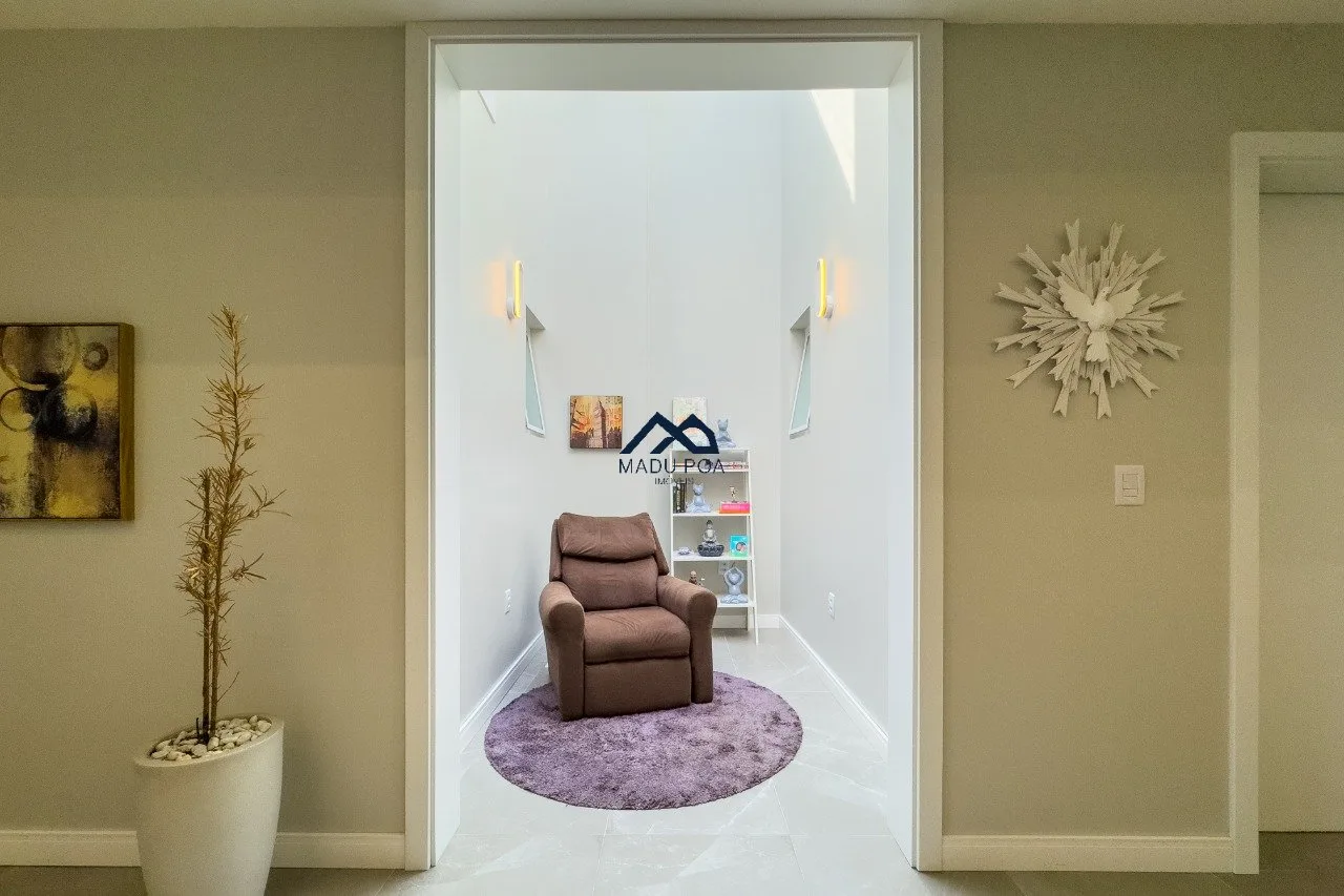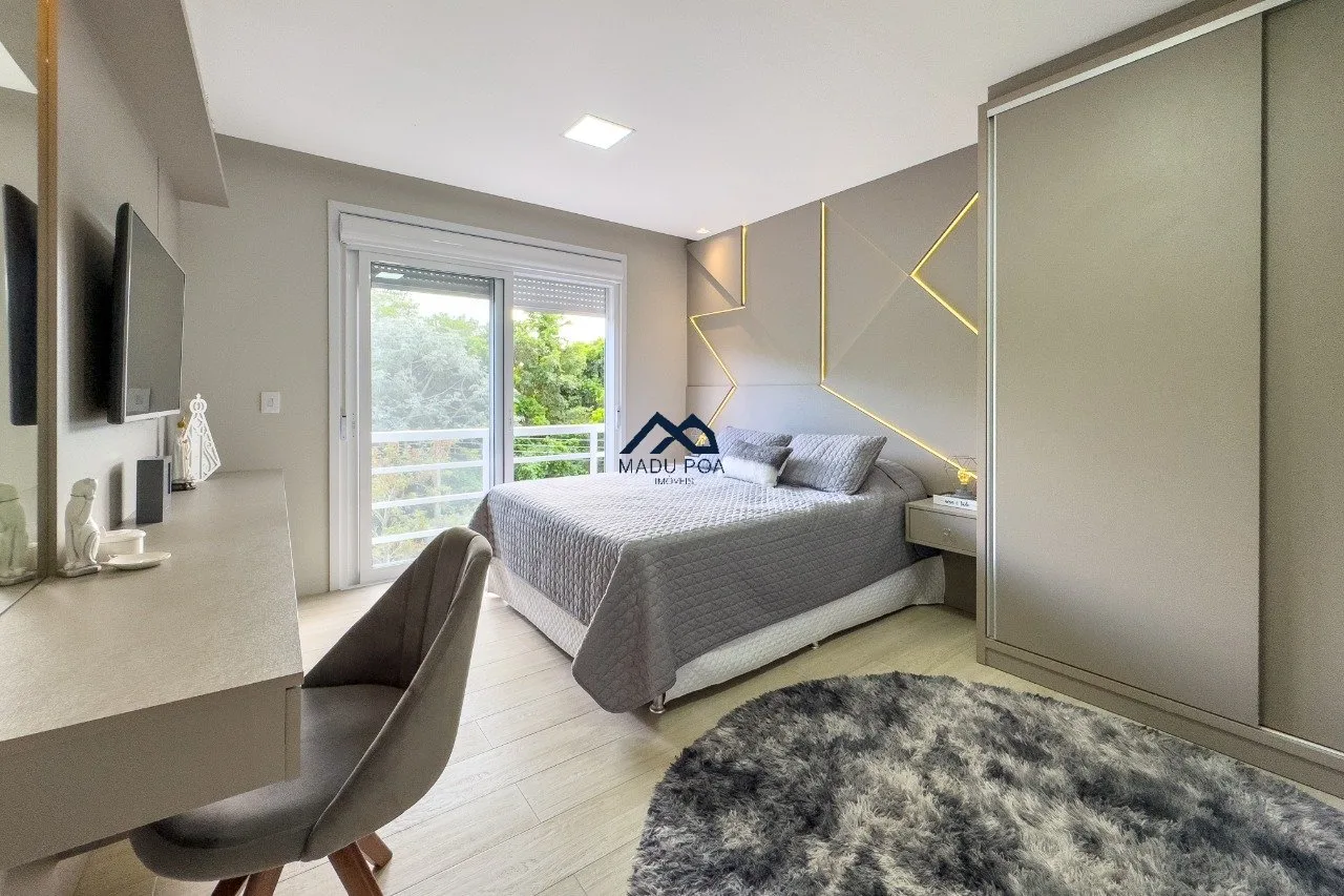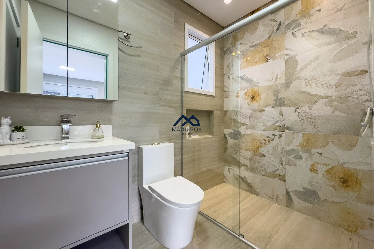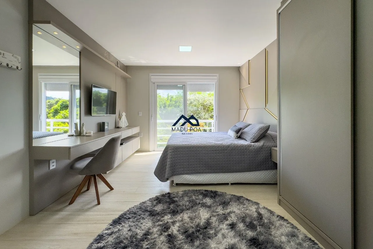 Teto em gesso em todos os ambientes e iluminação LED. Aberturas em alumínio, inclusive o portão da garagem. Espera para splits sendo que as máquinas ficam ocultas no telhado.