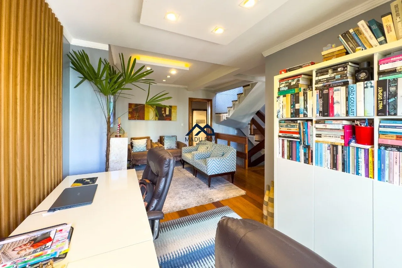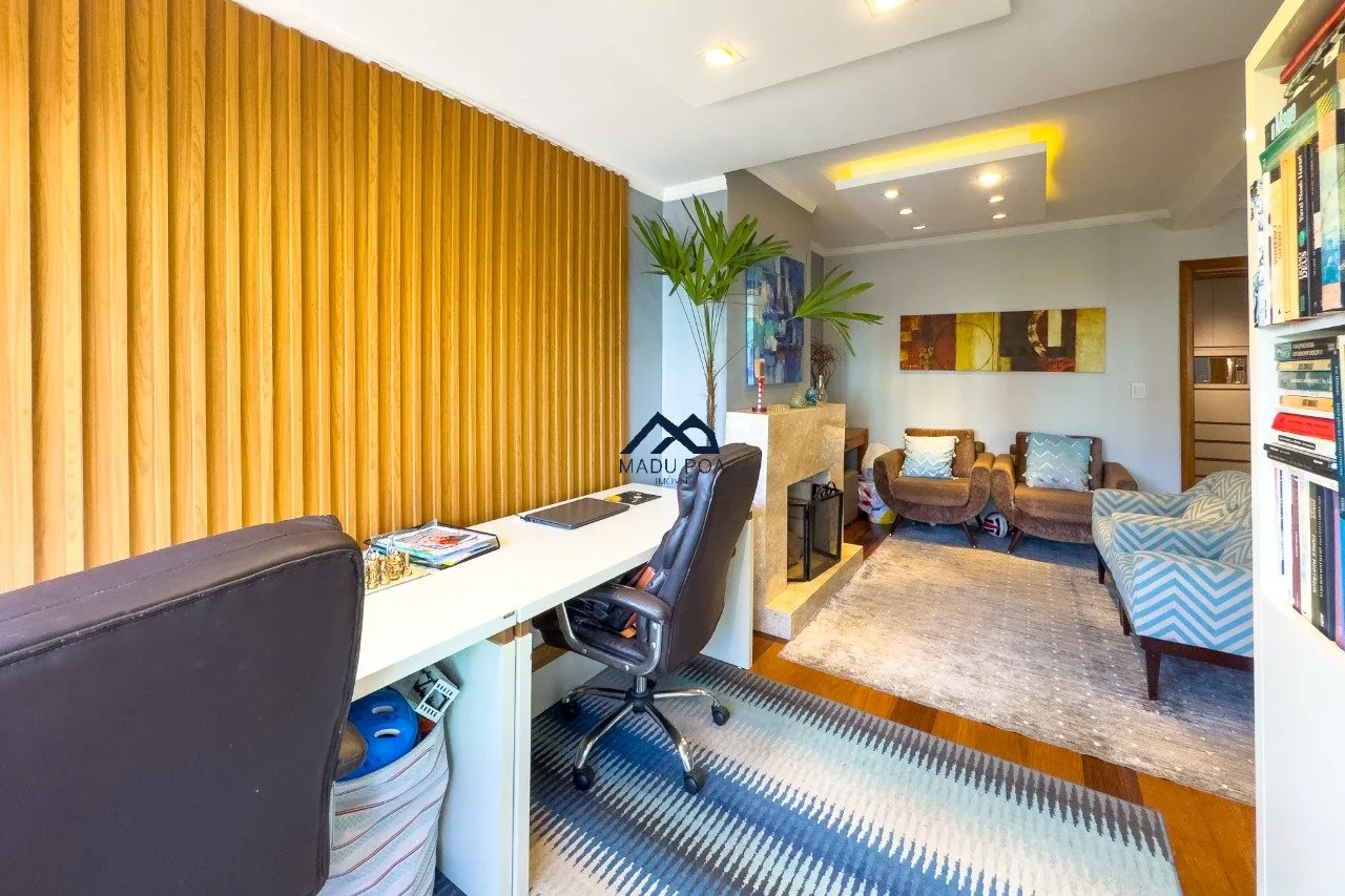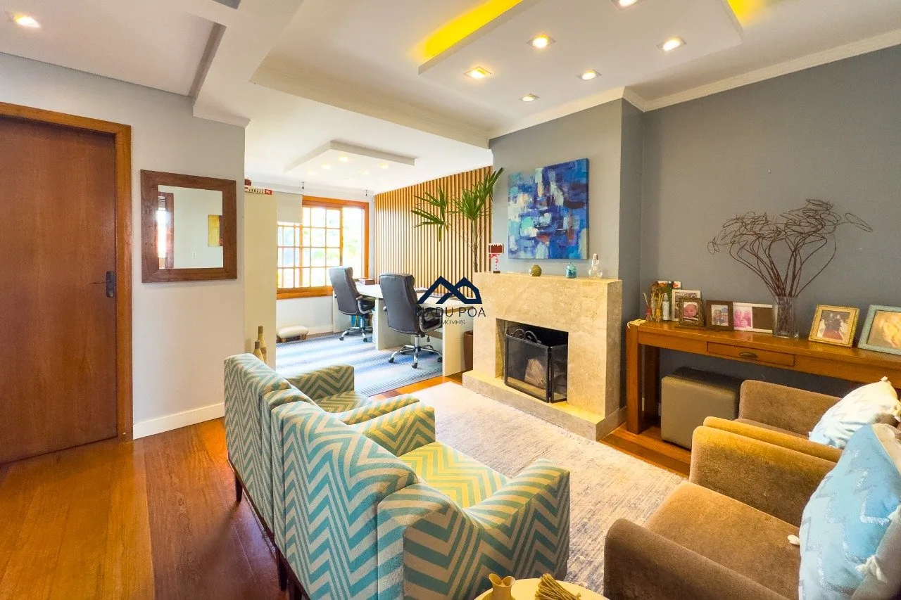 1ºPavimento: Amplo living para 4 ambientes com lareira e web space, cozinha com móveis planejados, varanda gourmet com churrasqueira, lavabo, área de serviços, dependência de empregada, depósito, lavanderia. Pátio com piscina, quiosque com banheiro auxiliar. Garagem fechada para dois carros grandes.