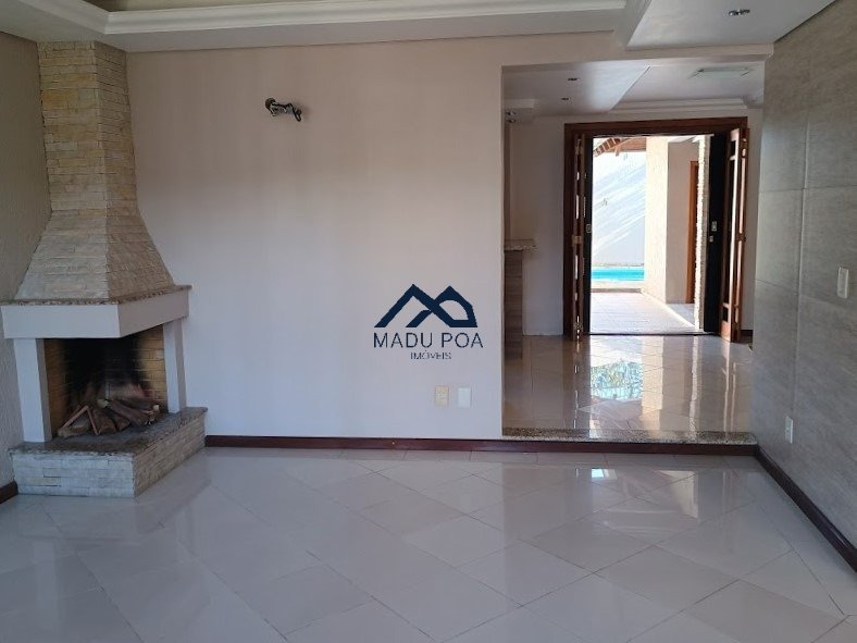 1º pavimento: Amplo living com lareira, cozinha americana mobiliada, lavabo, lavanderia, pátio com piscina e área gourmet. Garagem coberta para 2 carros.