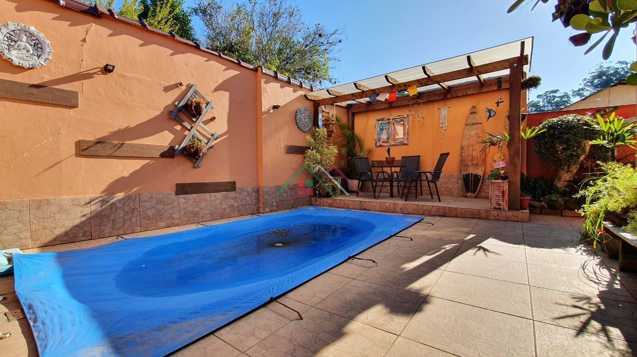 Casa TÉRREA no bairro Ipanema com 3 dormitórios sendo 1 suíte, living para 3 ambientes com lareira, sala de jantar, lavabo, mezanino com 40m² (academia), copa/cozinha, lavanderia, pátio com piscina. Garagem coberta para 3 carros.