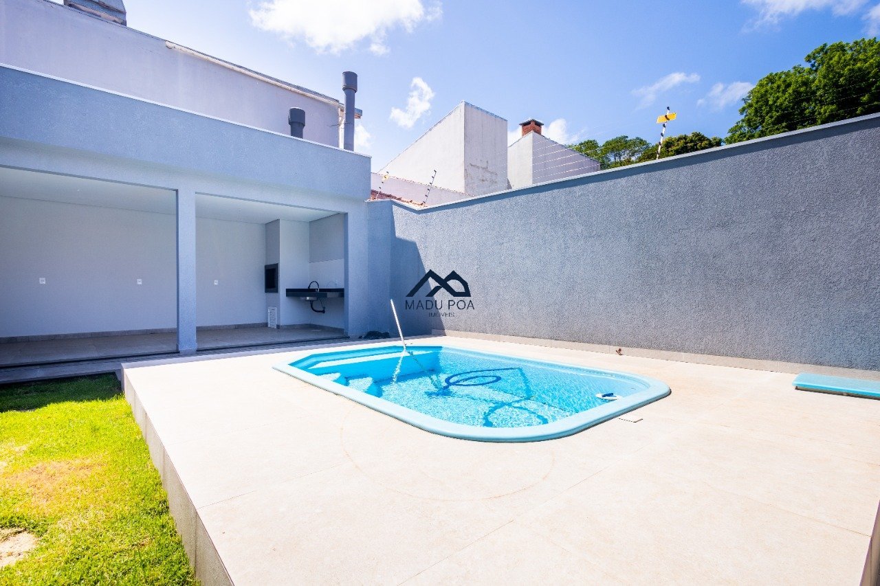 A casa conta com 03 dormitórios, sendo 02 suítes, amplo living com pé direito duplo, lareira e lavabo.