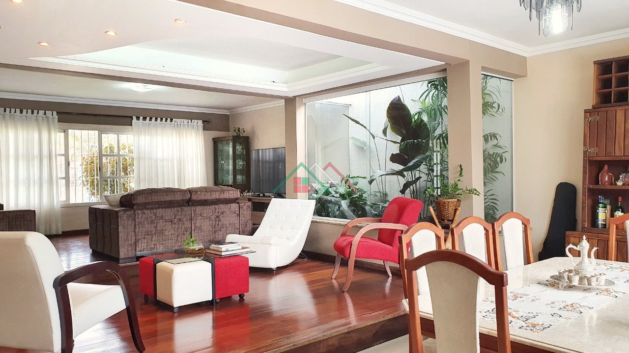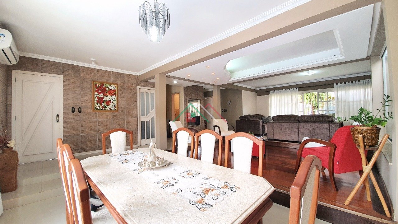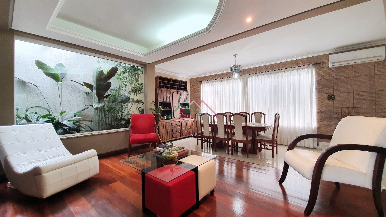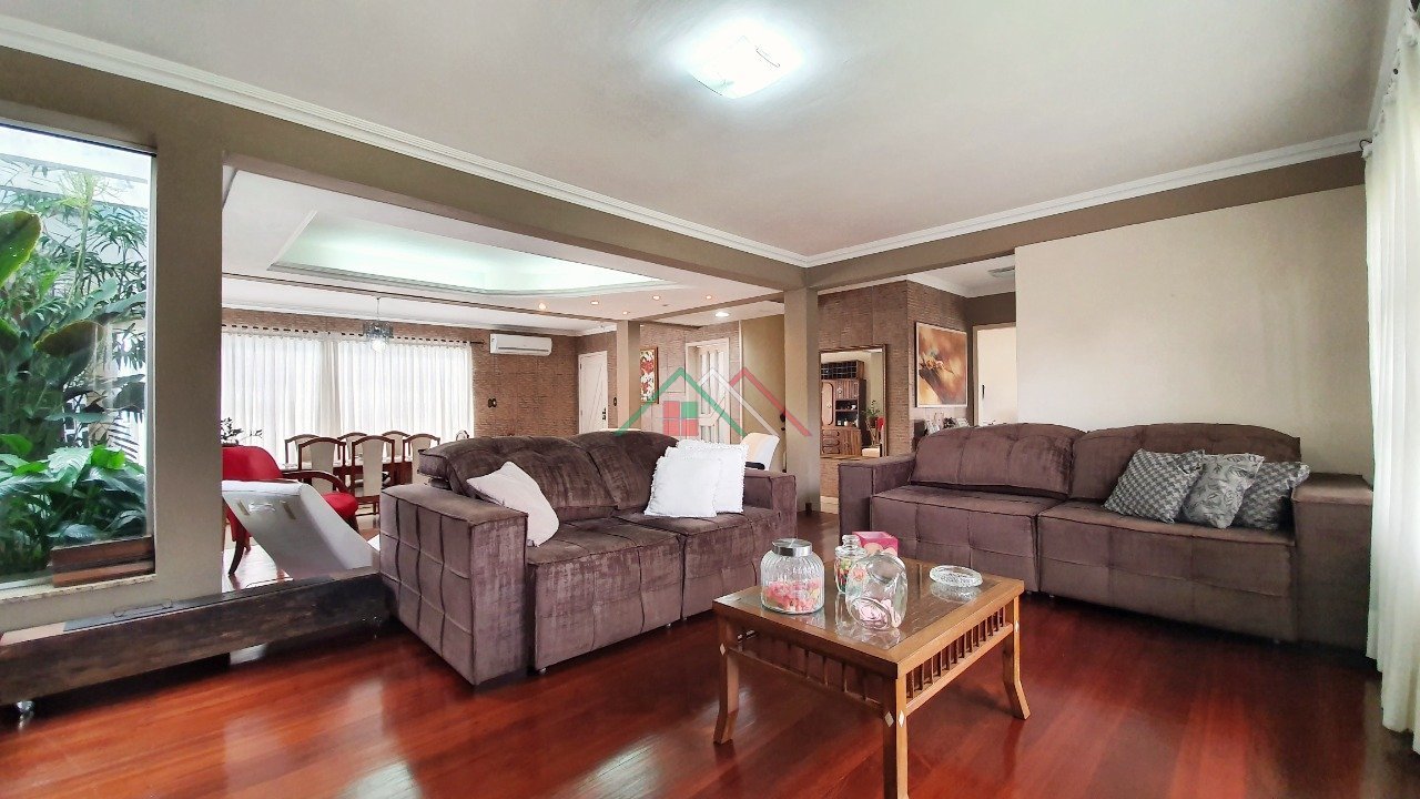 1º Pavimento: Living para dois ambientes com lareira, jardim de inverno, gabinete, copa cozinha, lavabo. Pátio com piscina e quiosque com forno para pizza e churrasqueira. Garagem com suíte.