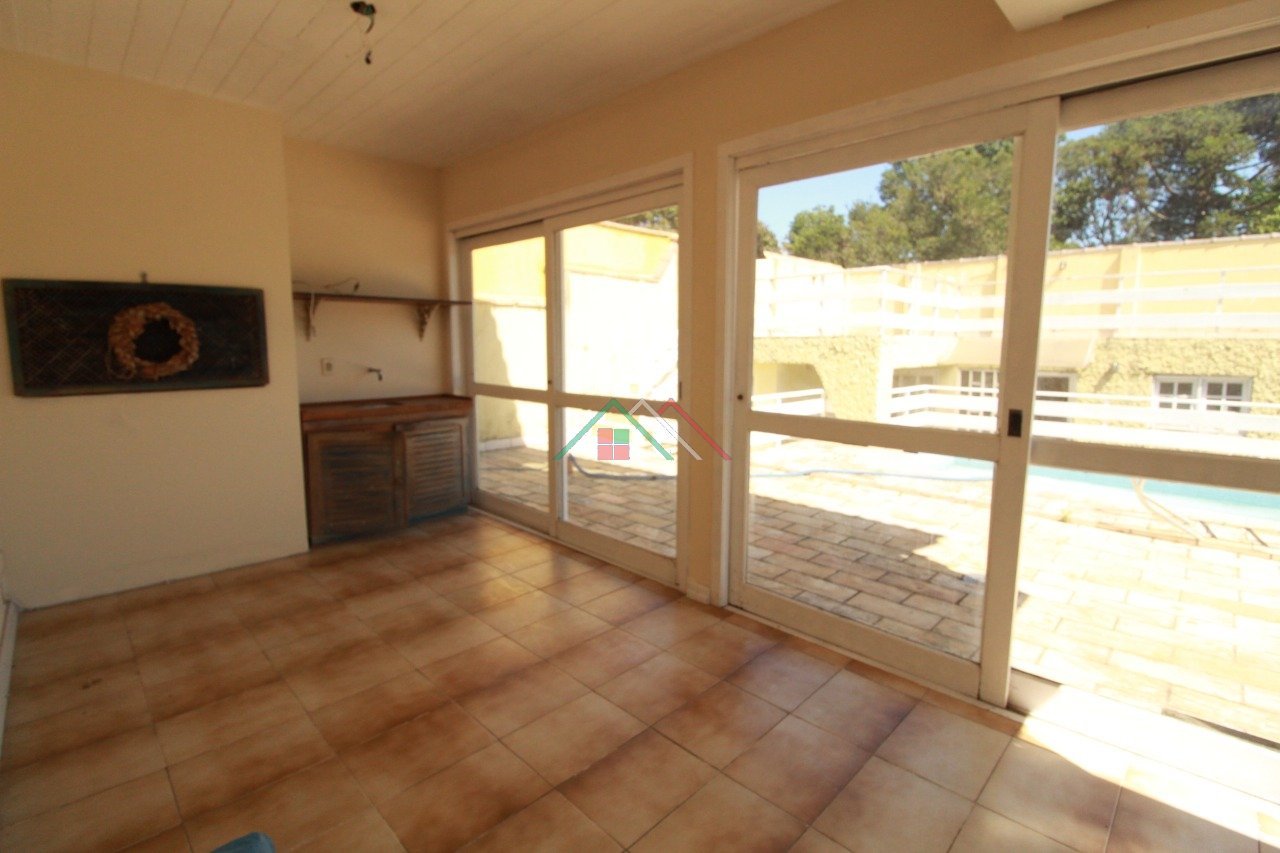 1ºPavimento: Hall, Living com lareira, estar íntimo com zenital em vidro e jardim de inverno, gabinete, lavabo, suíte, cozinha com despensa, espaço gourmet com churrasqueira e pátio com piscina. Nos fundos do pátio construção com área de serviço, duas dependencias de empregada, banheiro e terraço. A casa possui garagem para 03 carros.