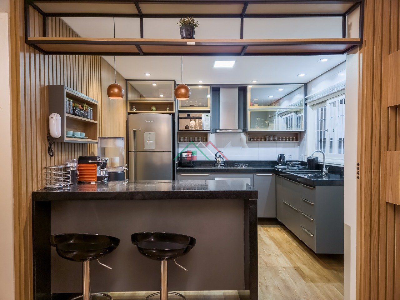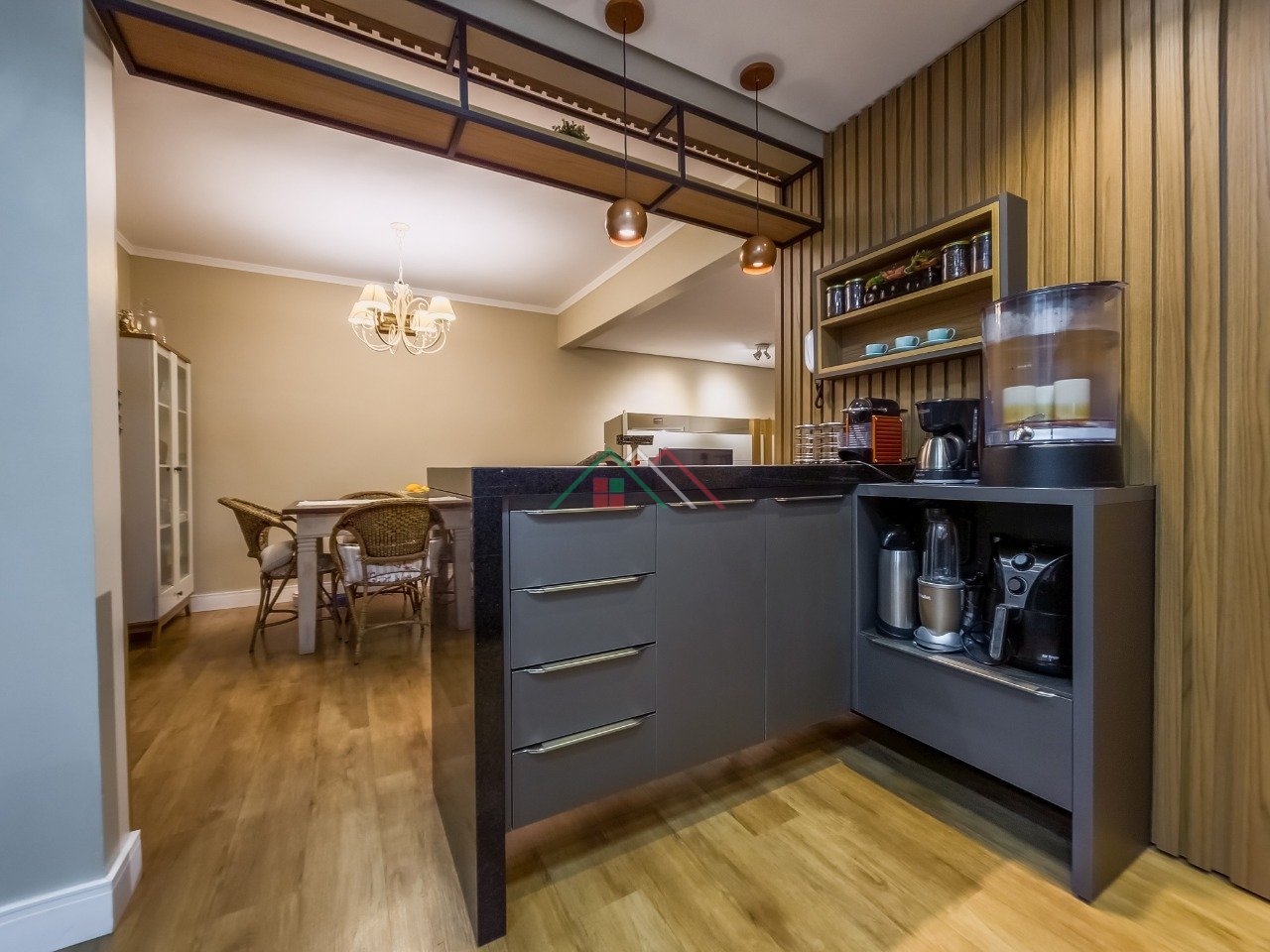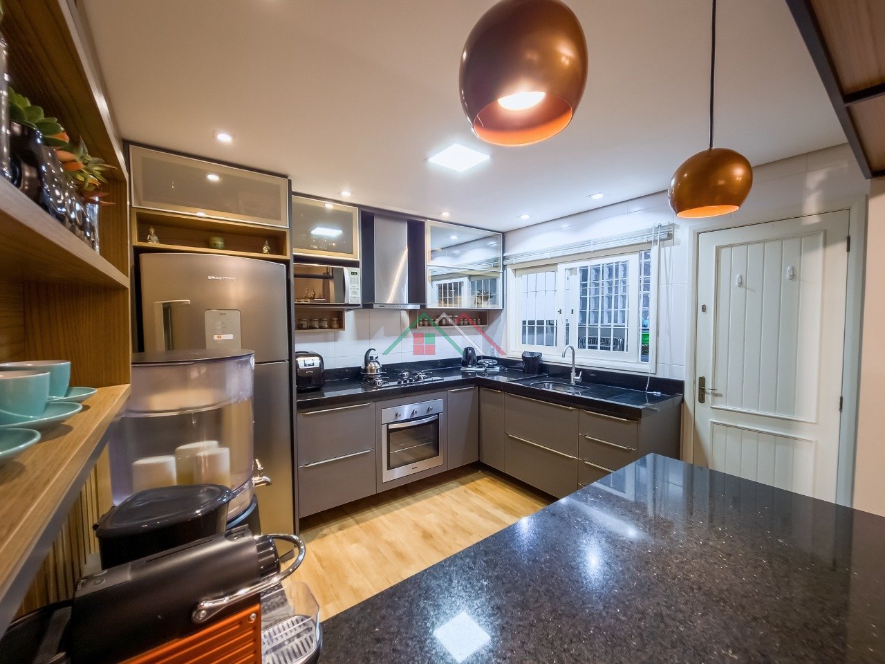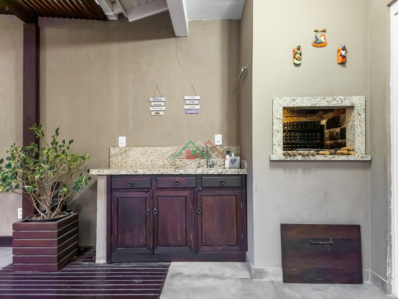 1º Pavimento: Living para dois ambientes, lavabo, cozinha americana, varanda com churrasqueira, despensa, pátio com pergolado, área de serviço.