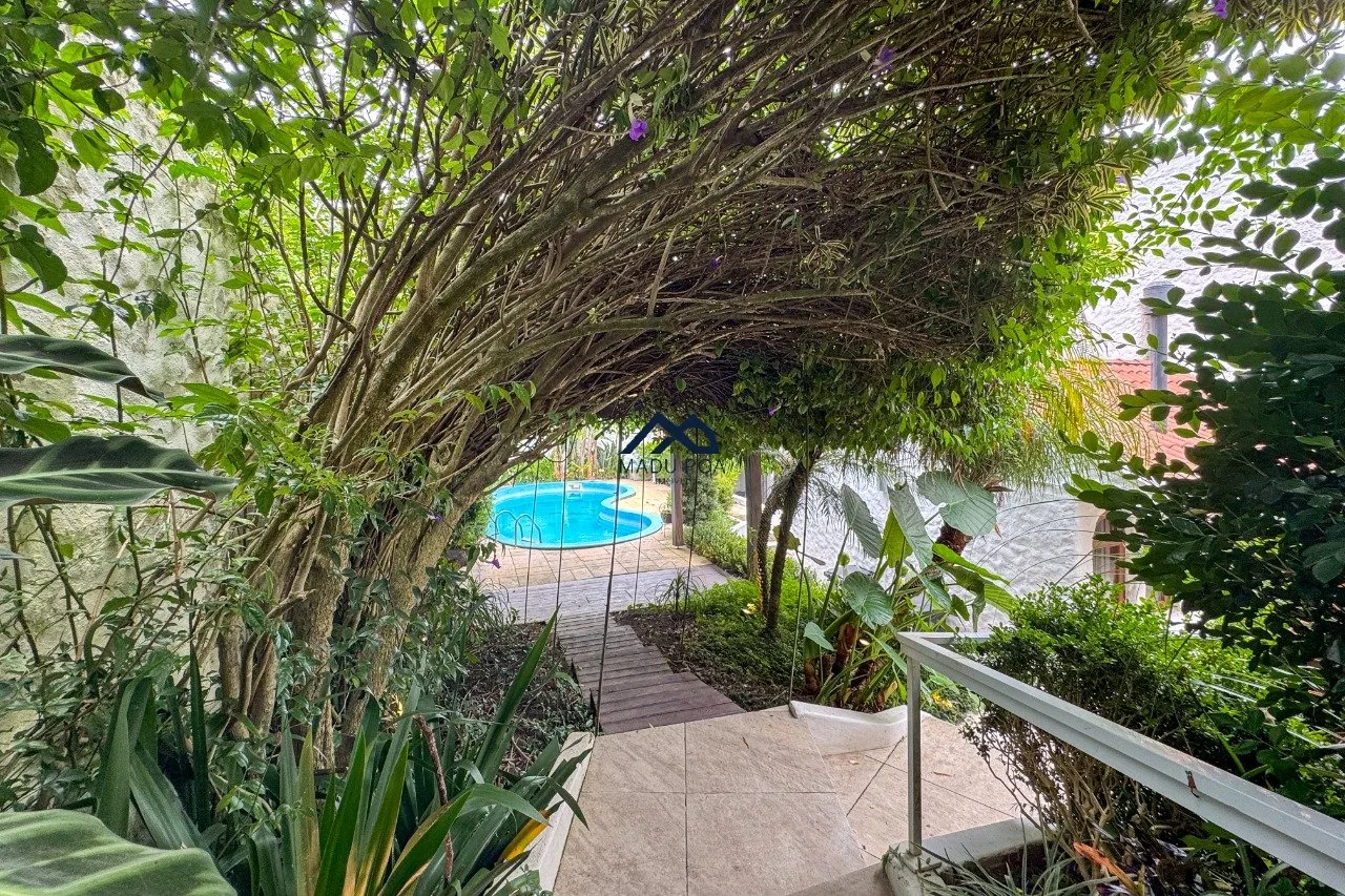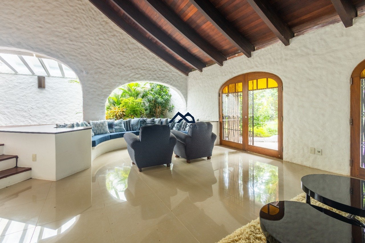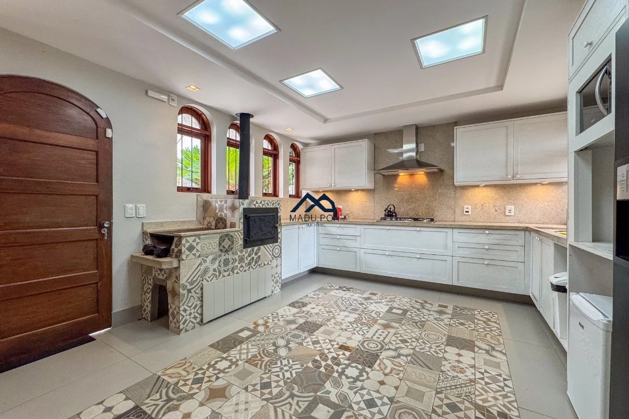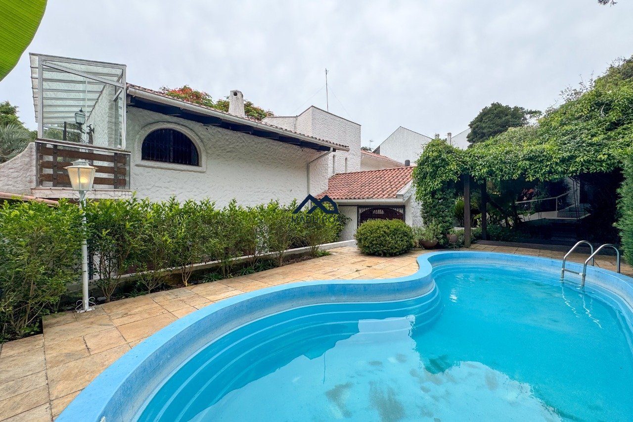 Casa com estilo mediterrâneo, piscina, salão de festas, lindo paisagismo, jardim de inverno e varanda integrando ao jardim, gabinete, adega, lavabo, cozinha com copa, lavanderia separada.