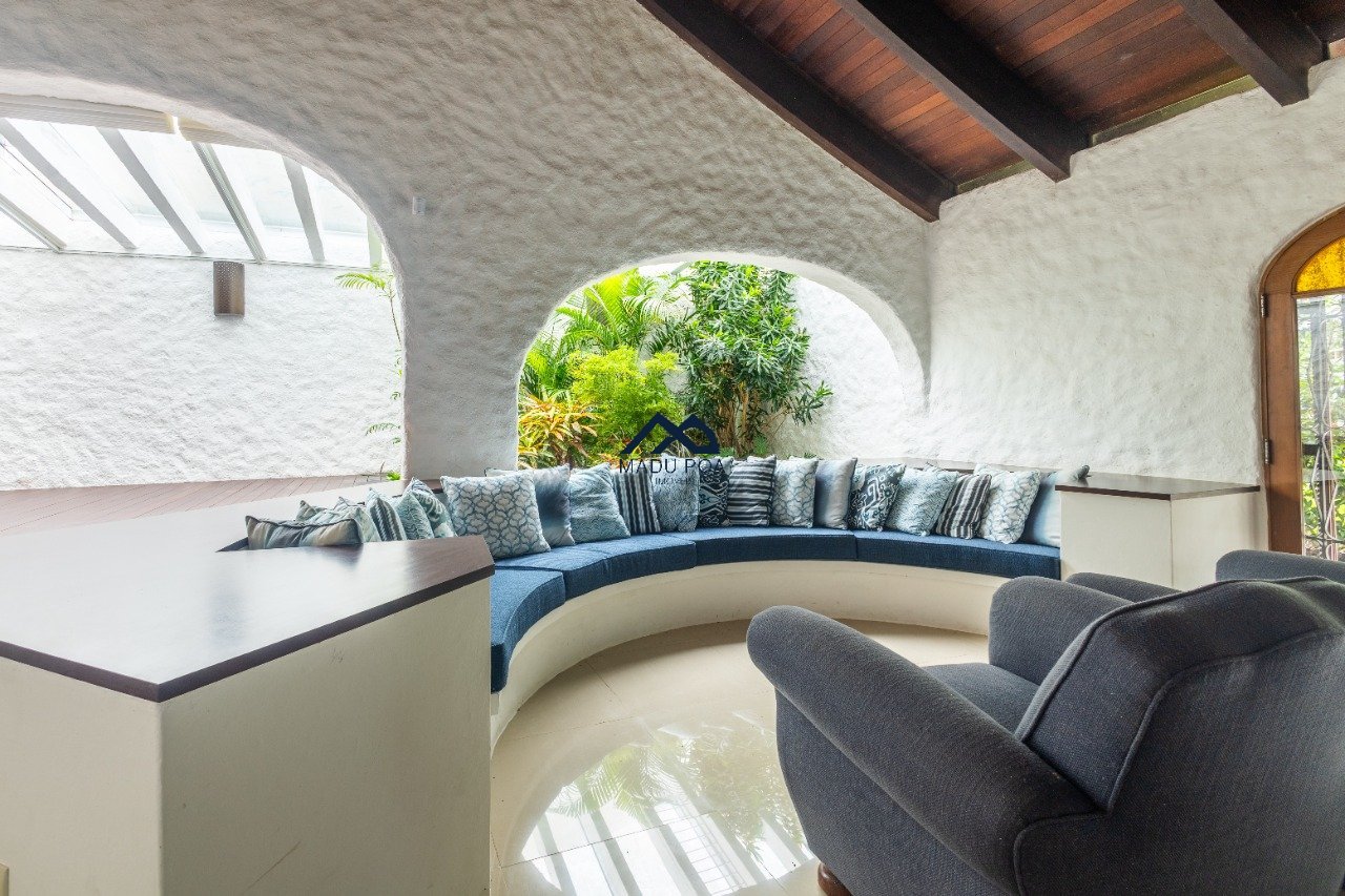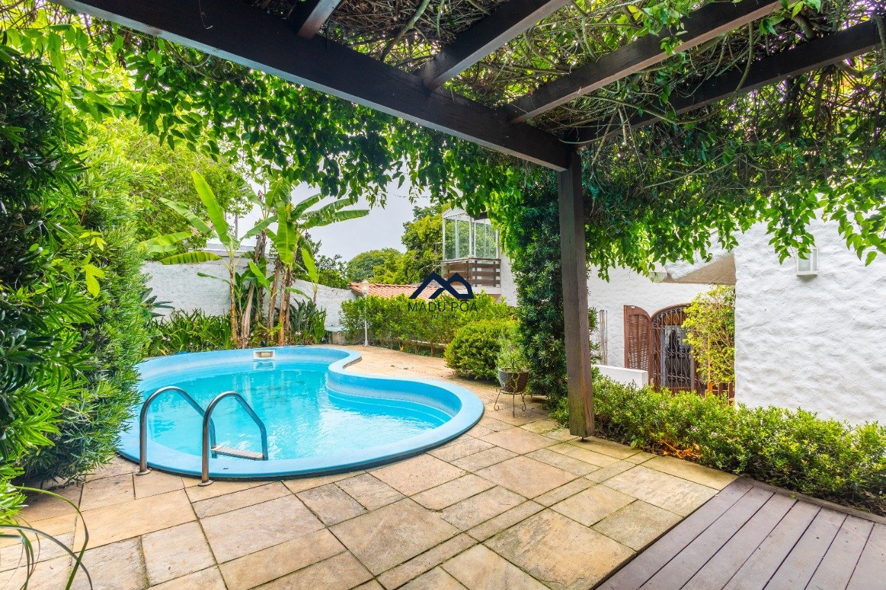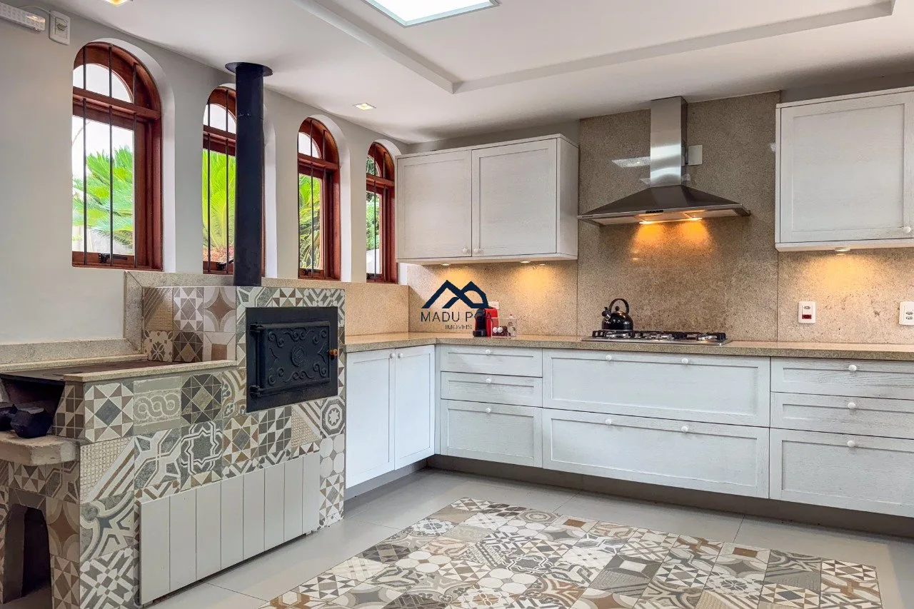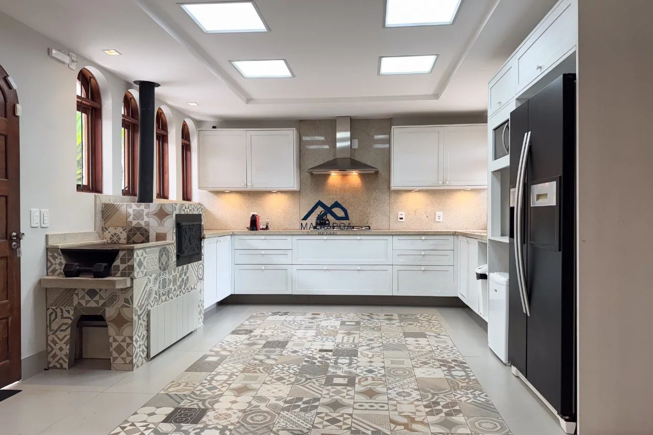 Casa com estilo mediterrâneo, piscina, salão de festas, lindo paisagismo, jardim de inverno e varanda integrando ao jardim, gabinete, adega, lavabo, cozinha com copa, lavanderia separada.
