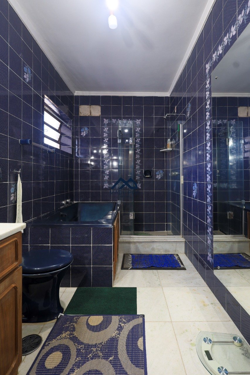 Pavimento nível da rua: Garagem para quatro carros, lavandeira, depósito, dependência de empregada completa e sauna.