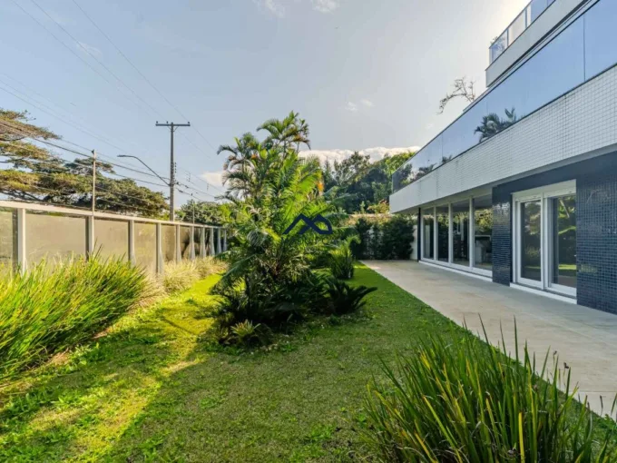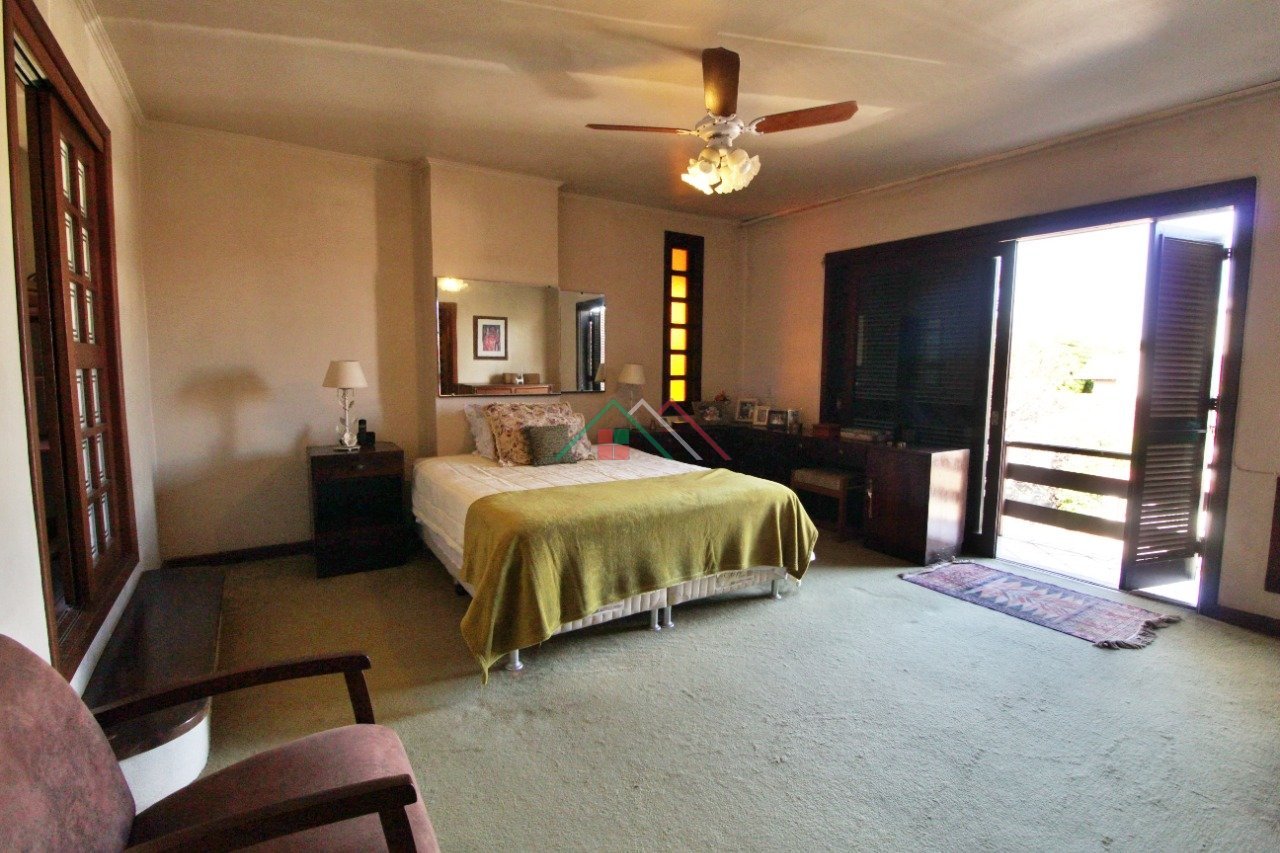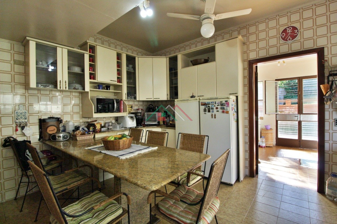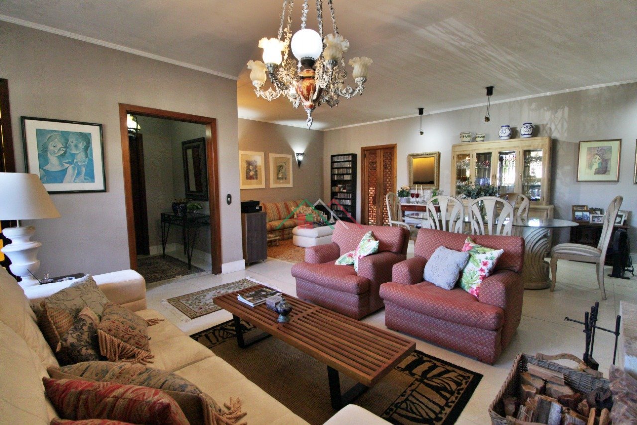 1° PAVIMENTO: Amplo living para três ambientes com lareira, lavabo, cozinha com armários embutidos, lavanderia, garagem coberta para três carros e pátio com piscina.