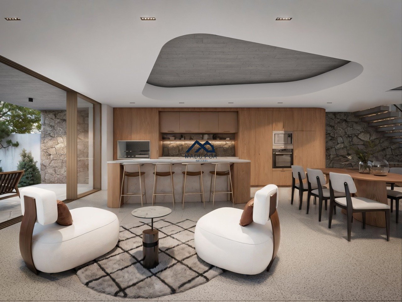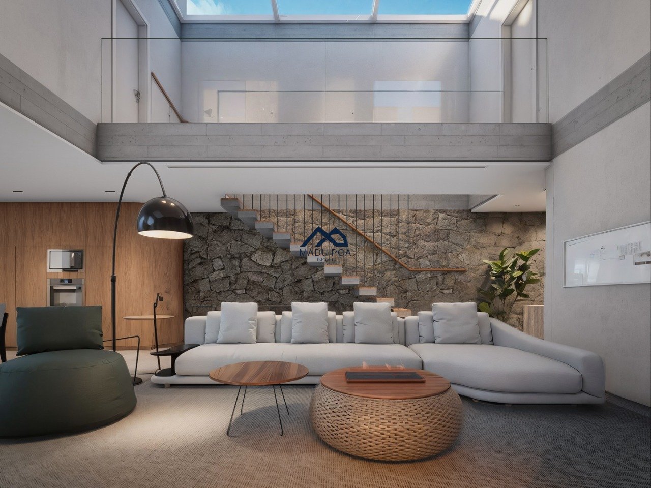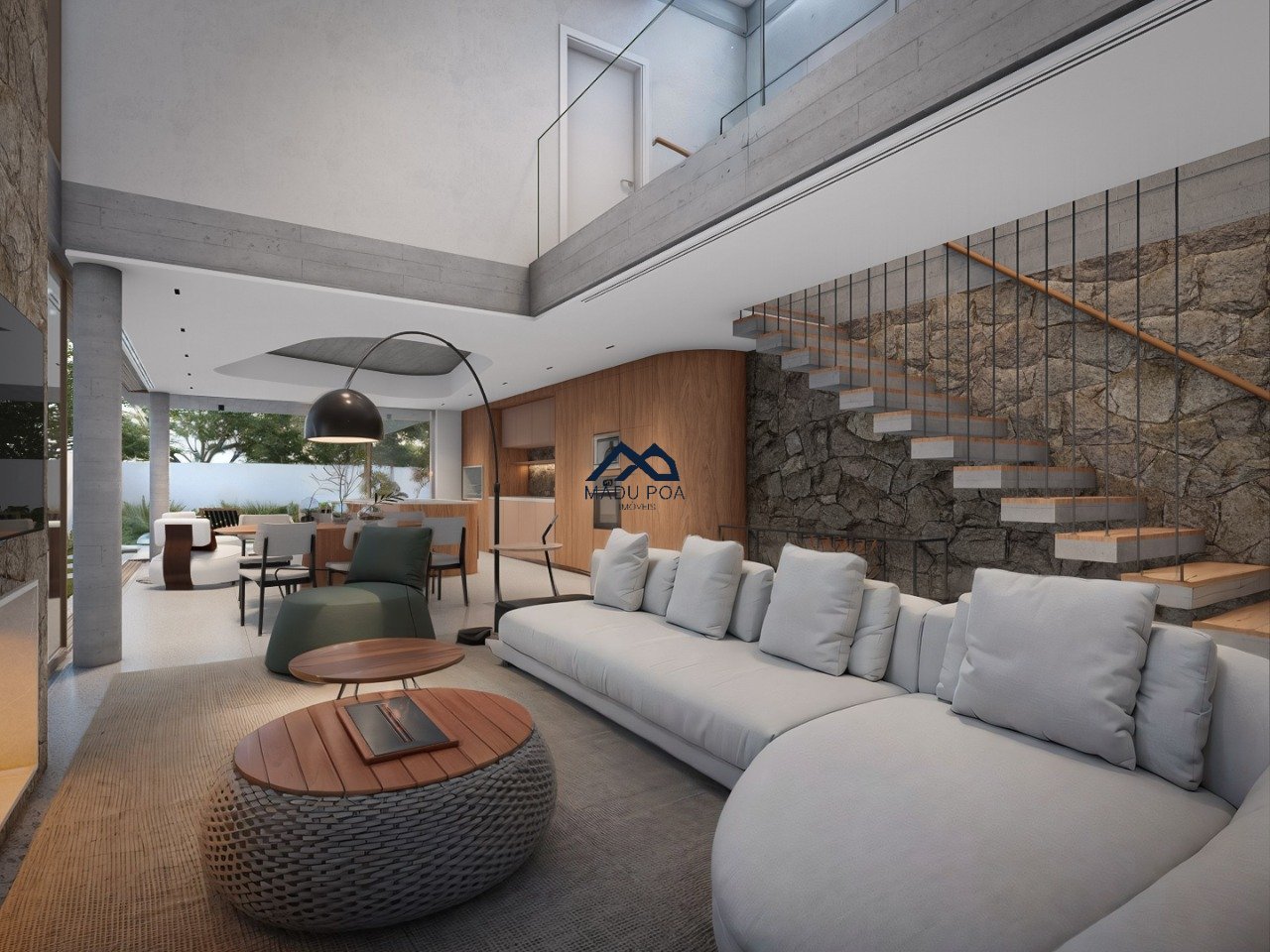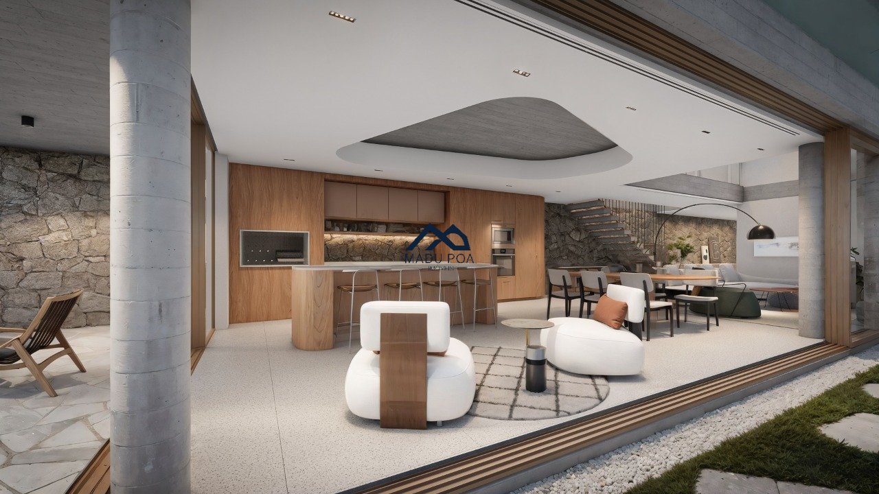 No 1° pavimento: hall de entrada, lavabo, 01 suíte com opção para gabinete, living para 03 ambientes, cozinha americana com área gourmet.