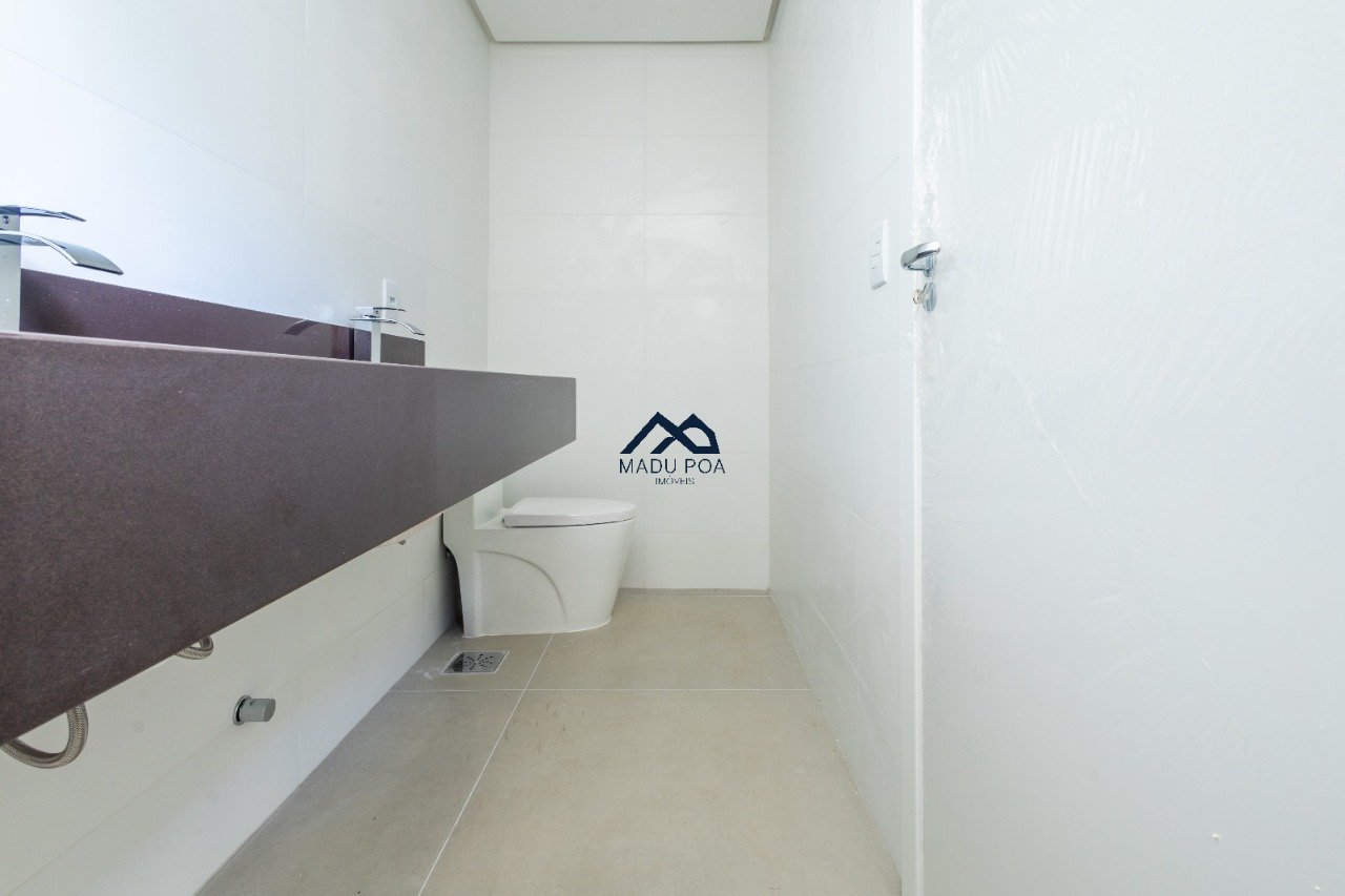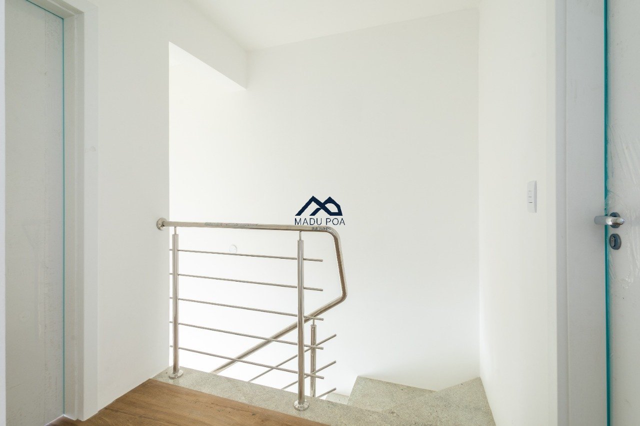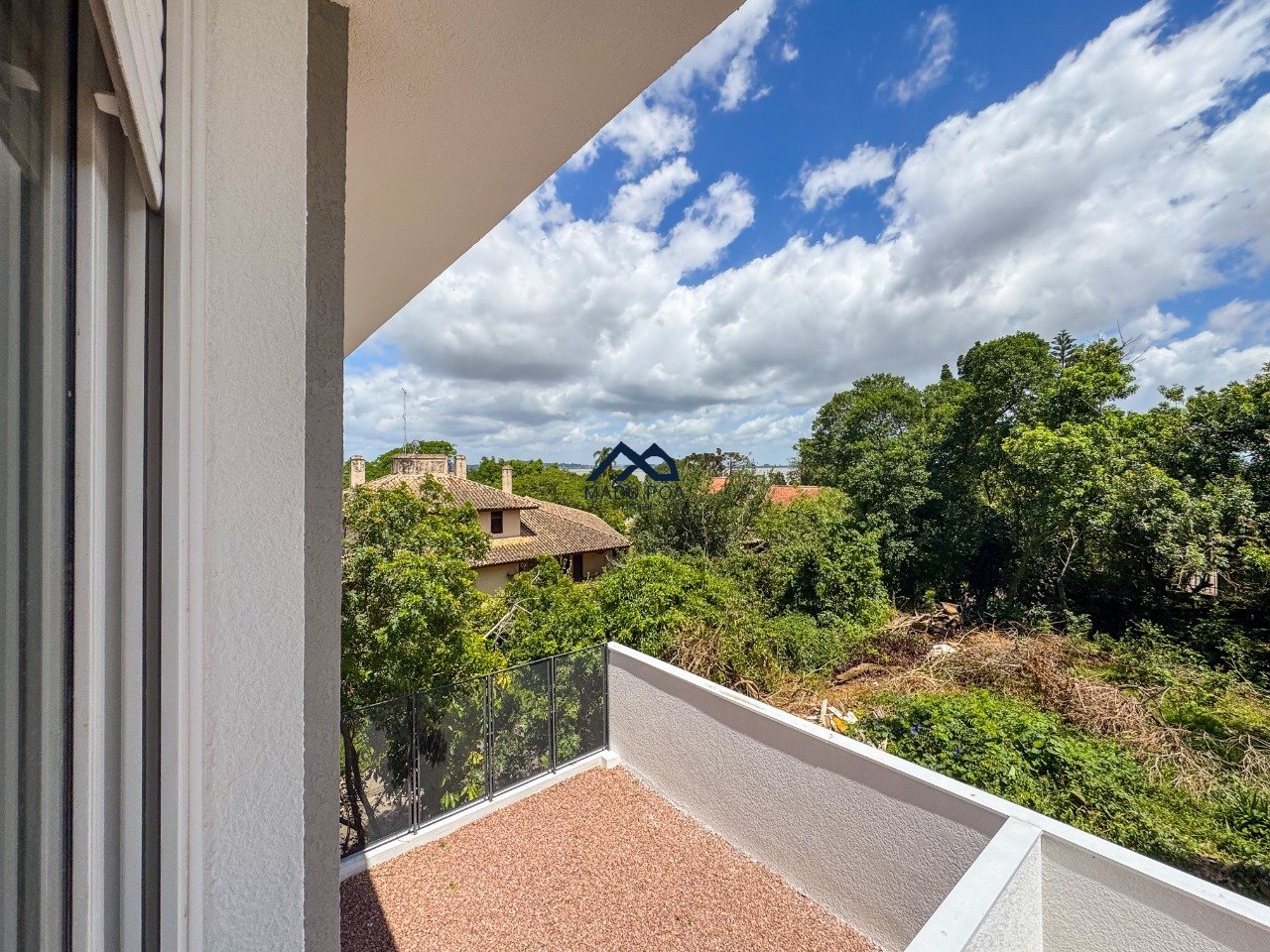 àrea social, totalmente integrada, lavabo, lareira, varanda com churrasqueira. Escadaria em Granito, piso vinílico no andar superior. Três dormitórios, sendo uma suíte com cuba dupla e sacada com sol da manhã.