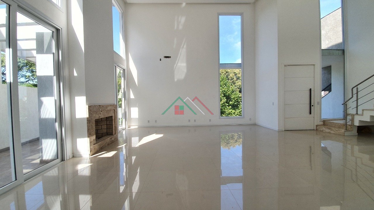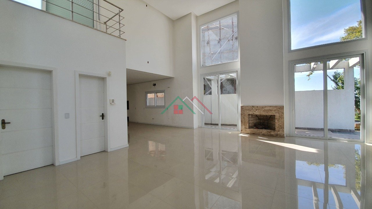 1ºPavimento: Living amplo com pé direito duplo, lareira, lavabo, cozinha integrada. Três dormitórios, sendo um deles suíte, banheiro social. Lavanderia e banheiro de serviço. Pátio com espera para piscina.