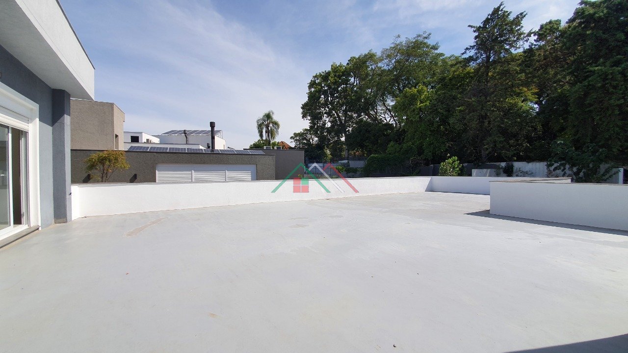 Casa nova à venda no BAIRRO VILA CONCEIÇÃO/TRISTEZA, com arquitetura moderna, pé direito duplo na sala e terraço no segundo andar.