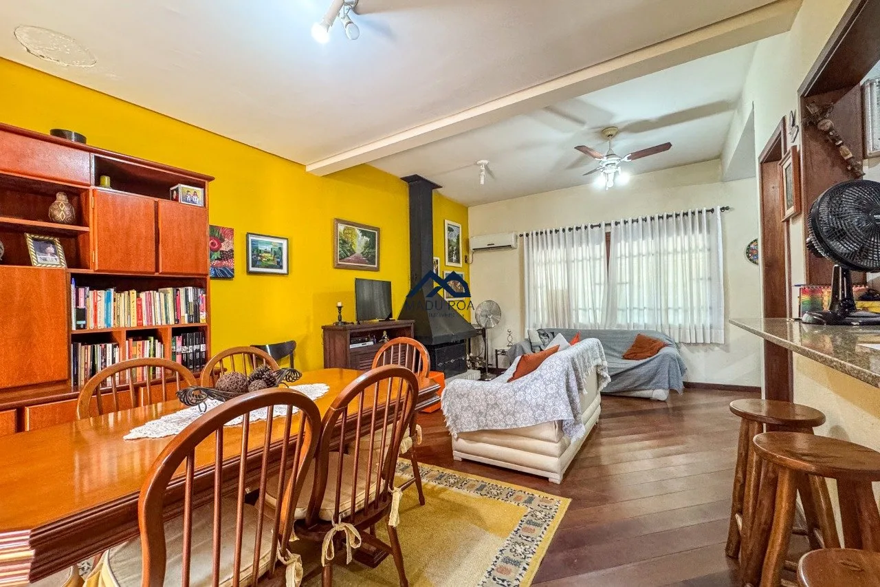 1º Pavimento: amplo living para dois ambientes com lareira, lavabo, espaço com churrasqueira, banho social, dependência de empregada, cozinha americana mobiliada com balcão em granito, lavanderia, pátio, 3 vagas de garagem, sendo 2 cobertas.