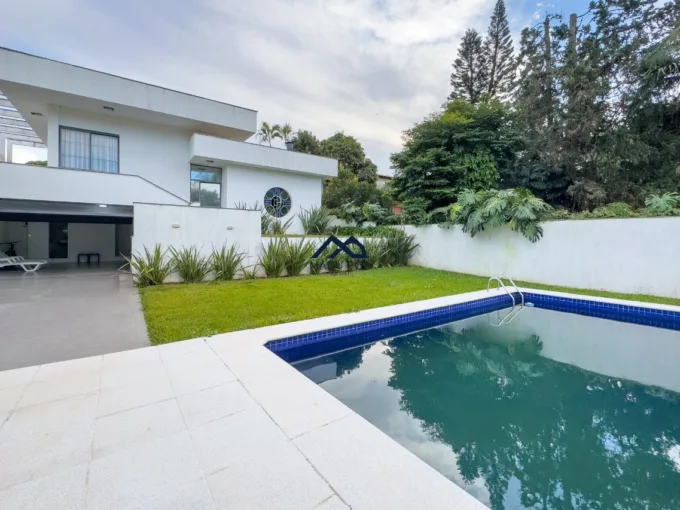 1º Pavimento: Living para dois ambientes com lavabo, lareira, cozinha planejada, passa pratos, lavanderia separada, churrasqueira e espaço gourmet e pátio com piscina.