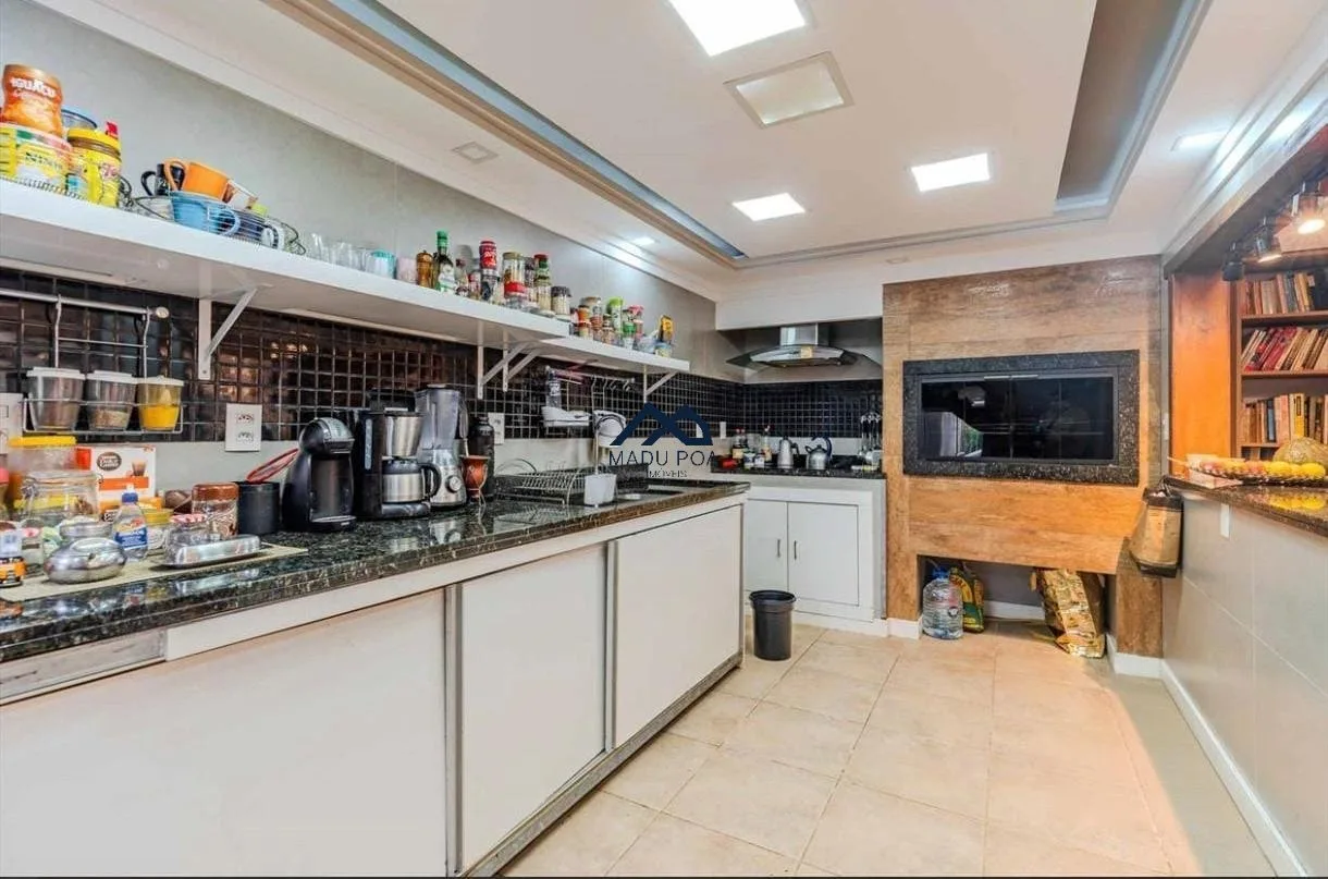 Hall de entrada, amplo living para dois ambientes com lareira, lavabo, gabinete, varanda voltada para o jardim, cozinha planejada, espaço gourmet com churrasqueira, dependência de empregada (hoje transformado em adega), área de serviço com banheiro, pátio com piscina junto a um belo pergolado com churrasqueira e 04 vagas de garagem cobertas.