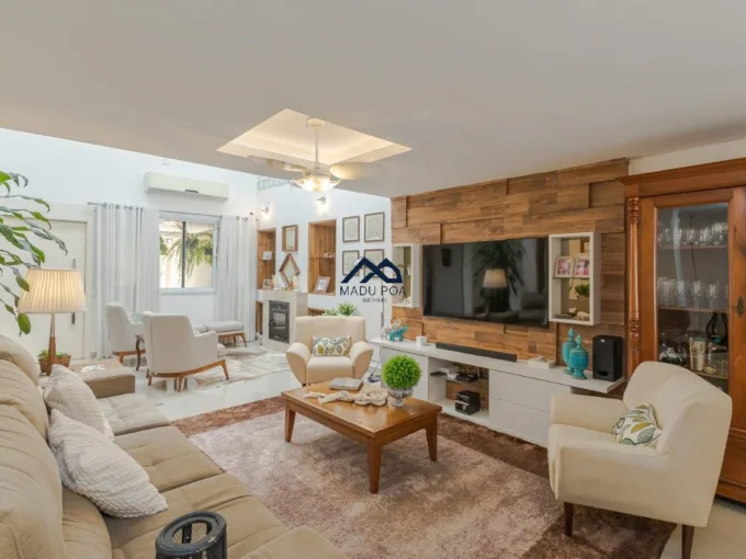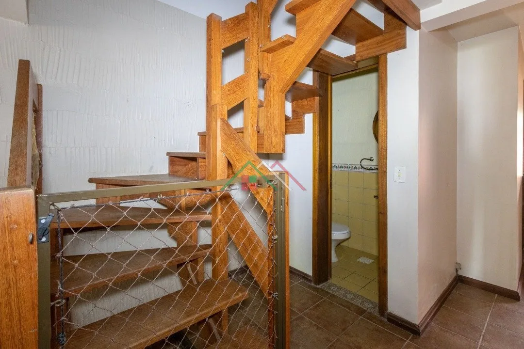 São 3 dormitórios, sendo 1 suíte com sacada, living para 2 ambientes, lareira, lavabo, espaço gourmet integrado, cozinha americana, área de serviço, pátio privativo, banheiro social e no 3º pavimento amplo espaço multiuso como opção de 4º dormitório. Duas vagas de garagem coberta.