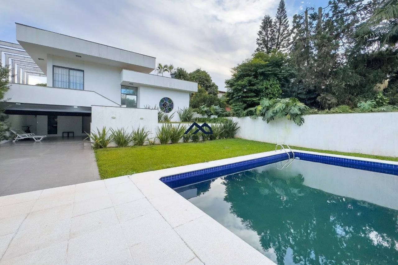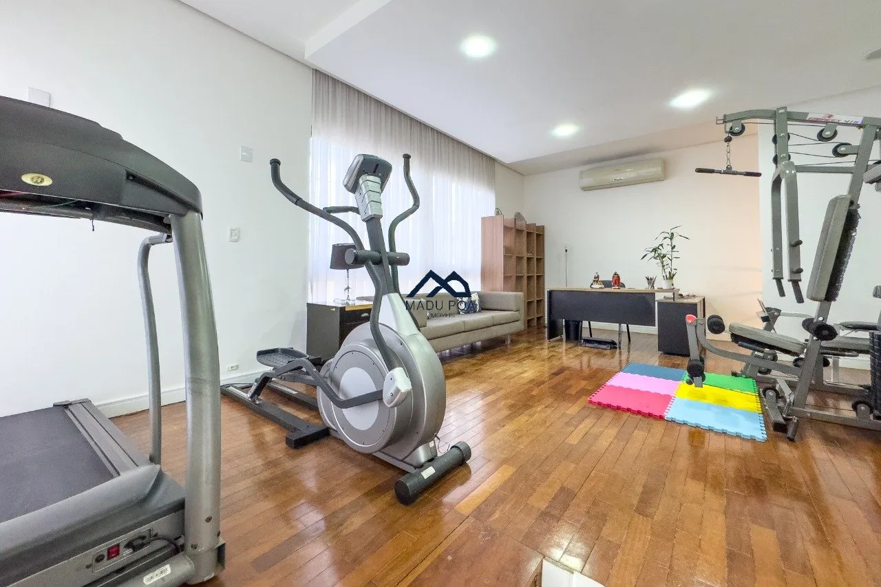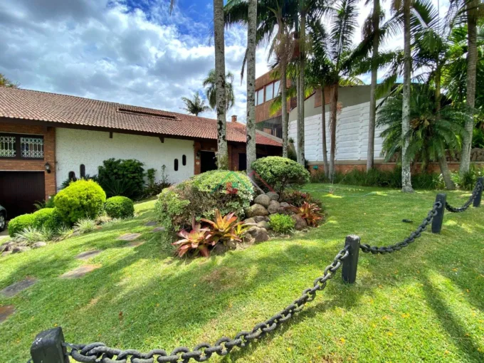 1º Pavimento: Hall de entrada, piso elevado com ambiente utilizado como gabinete, amplo living para dois ambientes com lareira, lavabo, cozinha planejada, copa com saída para área com espaço gourmet com churrasqueira, área de serviço lavanderia com pátio de serviço. Alguns degraus e encontram-se os 3 dormitórios, sendo 2 suítes, uma com closet e outra com banheira.