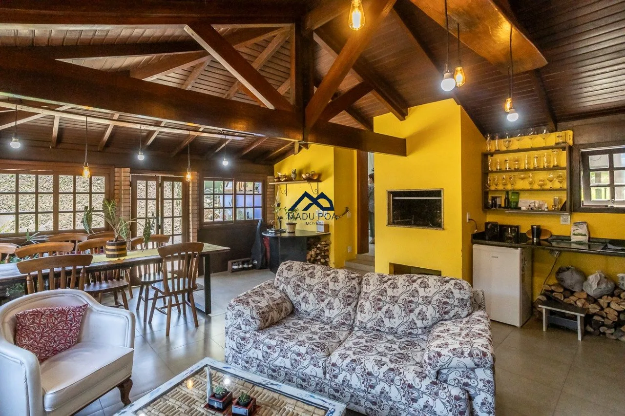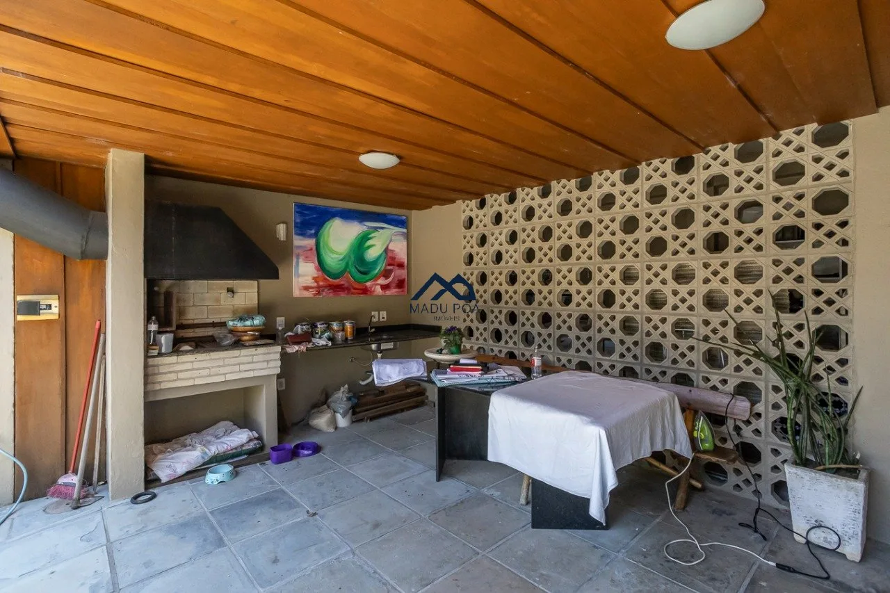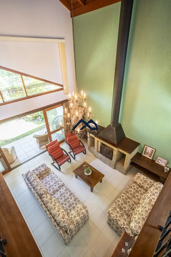 1ºPavimento: Living para dois ambientes com lareira, copa cozinha, um dormitório com possibilidade de suíte, lavabo, construção nos fundos com espaço gourmet, pátio com piscina.