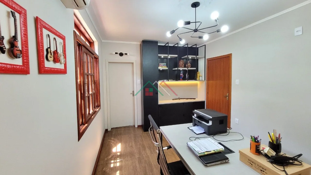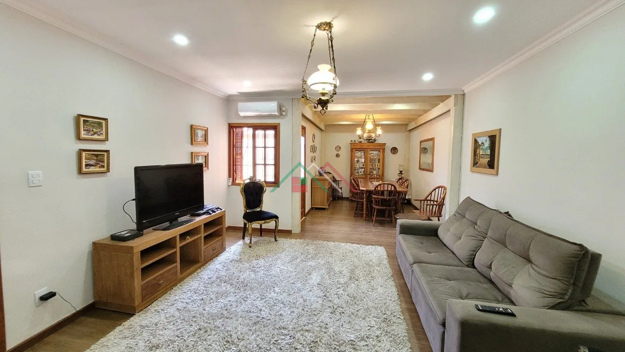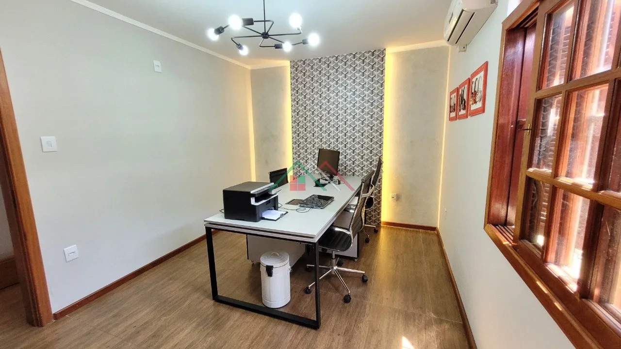 Piso térreo em alvenaria de tijolo maciço, piso em porcelanato amadeirado, esquadrias em madeira de Angelin, 3 dormitórios sendo 1 suíte, living para 2 ambientes, sala de jantar, sala de estar, gabinete, banheiro social, cozinha planejada, lavanderia, oficina com churrasqueira. Garagem fechada para 1 carro mais 1 aberta para 2 carros(dupla) e espaço para motos. Espaço para orquidário com muita luminosidade.