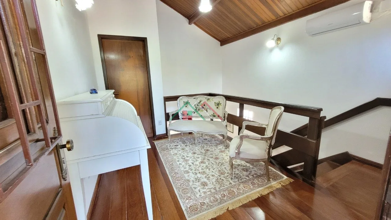 Segundo piso com teto duplo, piso em taboão, escada em madeira nobre, esquadrias em madeira, 1 suíte com closet, estar íntimo, varanda fechada com atelier de costura.