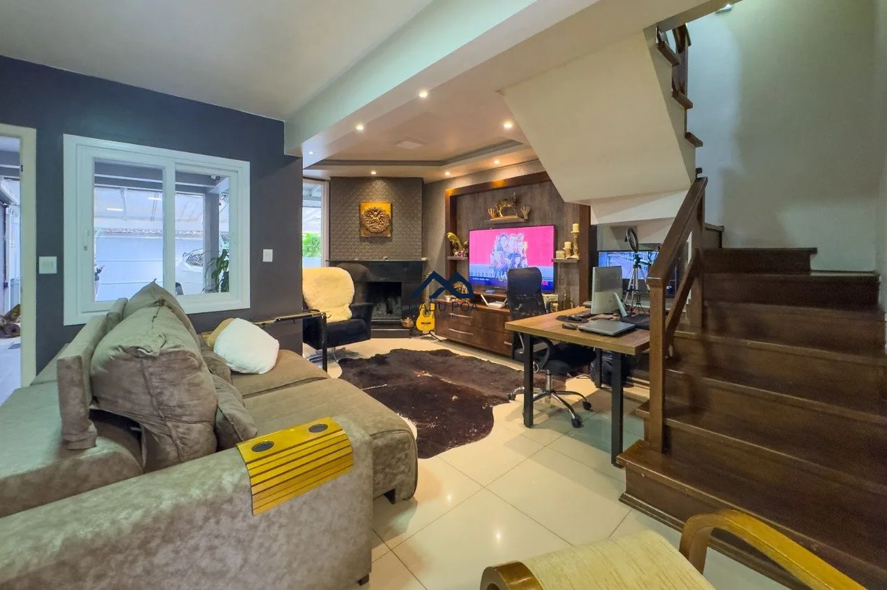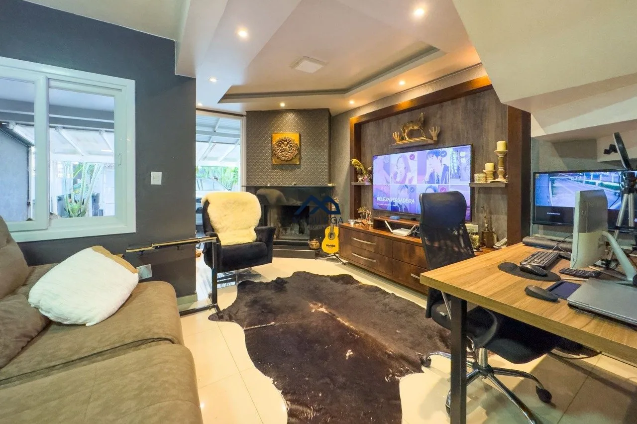1°Pavimento : Amplo living, com lareira, copa e cozinha americana, lavabo e pátio com quiosque/ churrasqueira completo.