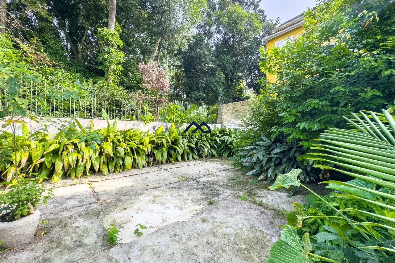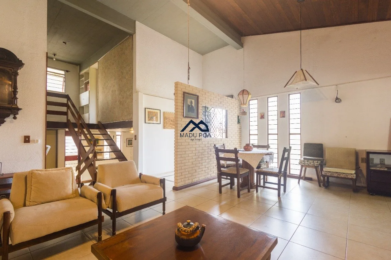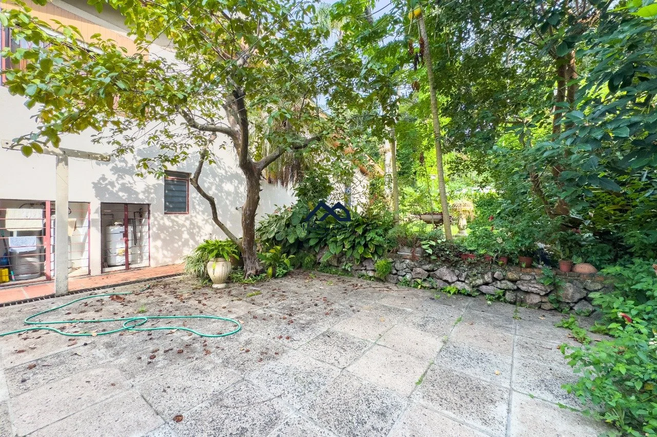 Dependência de empregada com banheiro auxiliar, garagem coberta para três veículos.