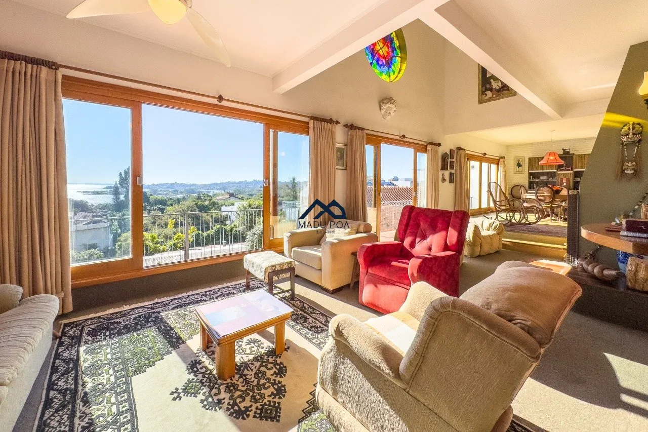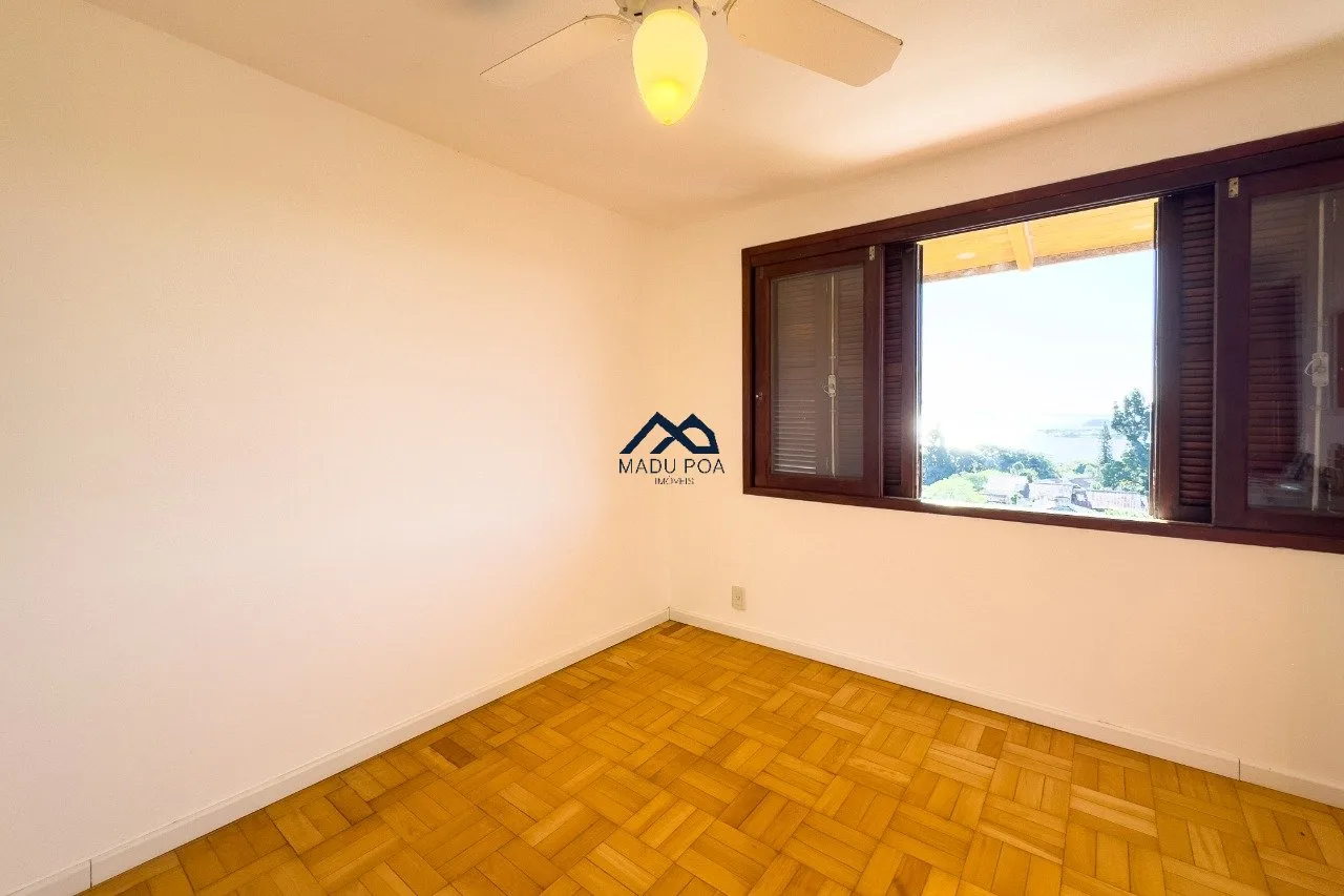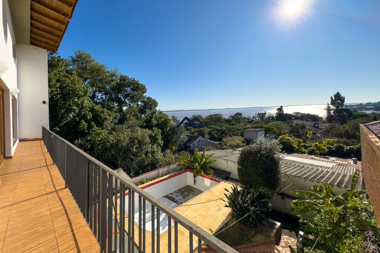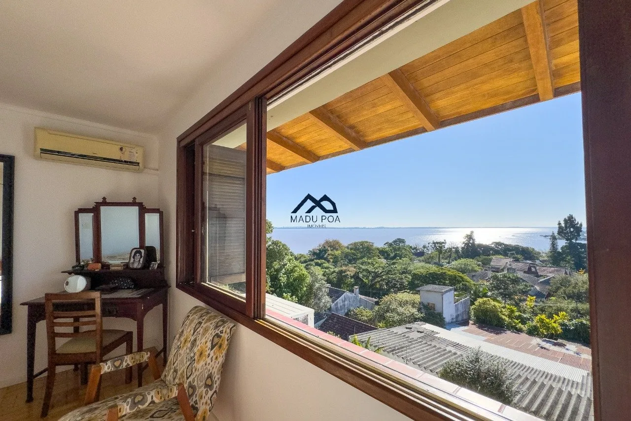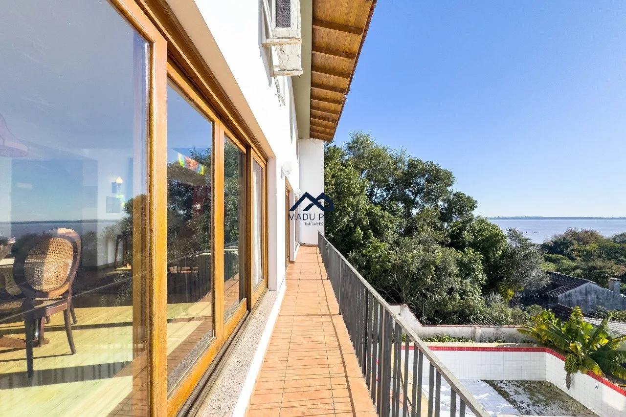 Living para dois ambientes com sacada e lareira e vista livre para o rio. Copa cozinha com móveis sob medida. Três dormitórios sendo uma suíte. Espaço gourmet com churrasqueira e fogão à lenha. Banheiro social, lavanderia, garagem. Pátio com piscina e vista deslumbrante para o Guaíba.