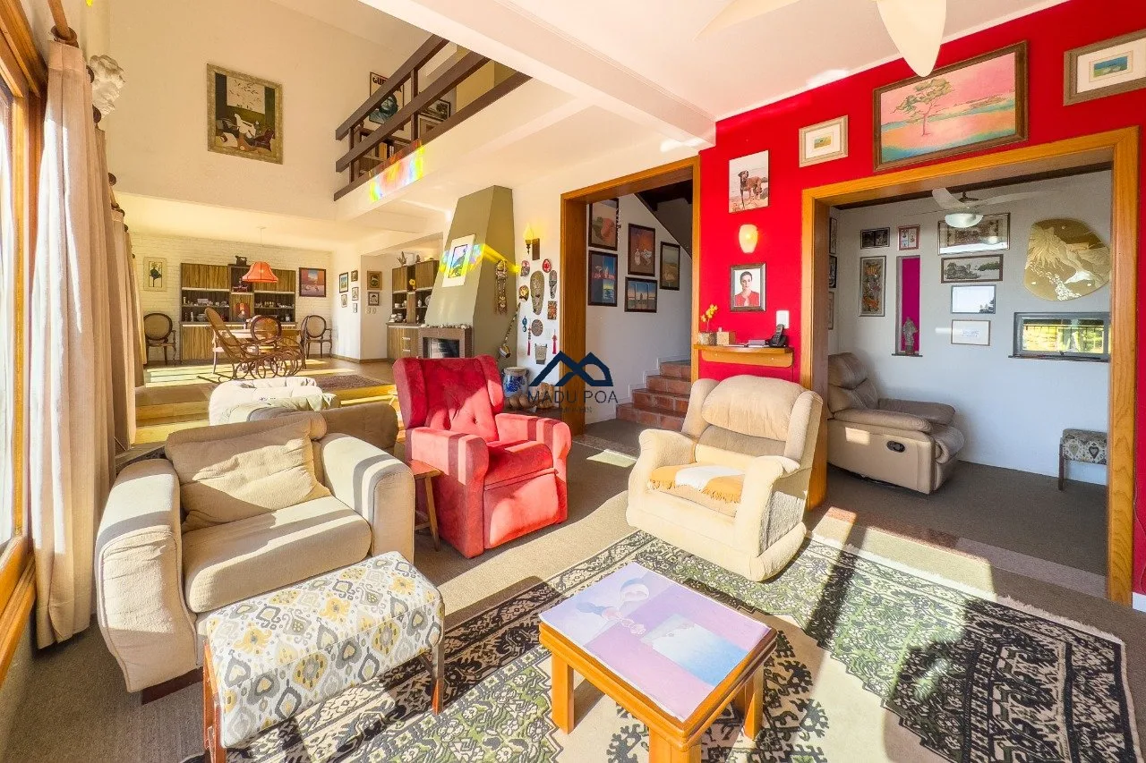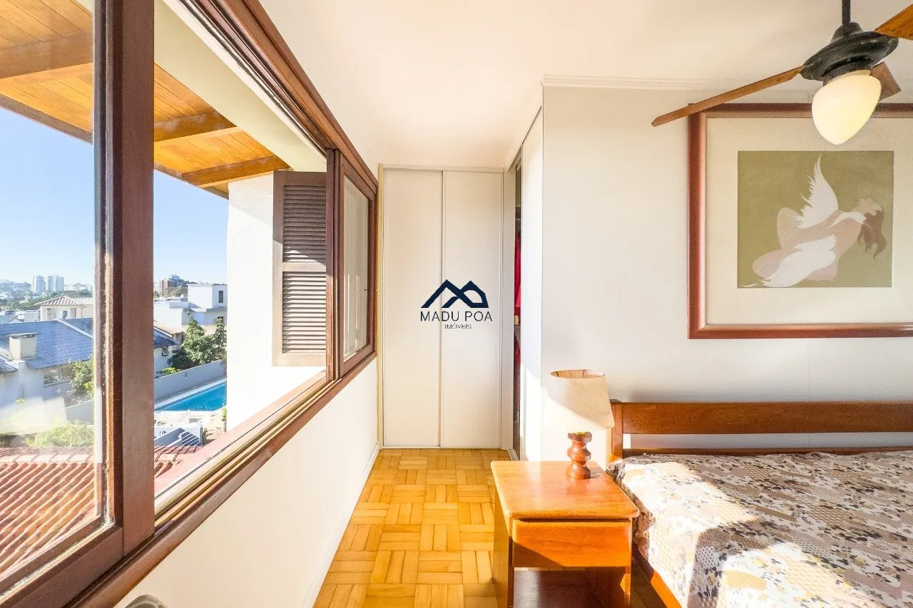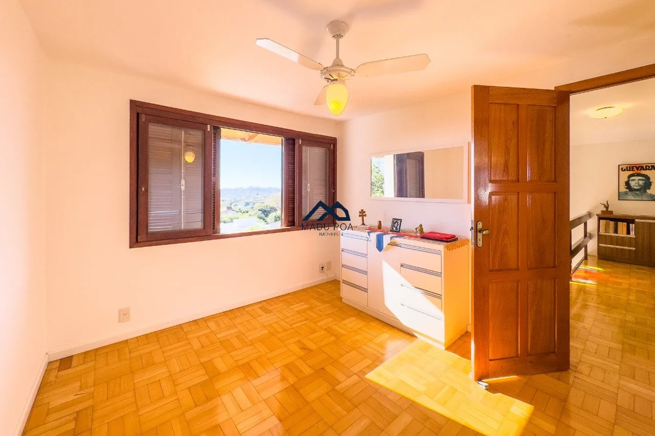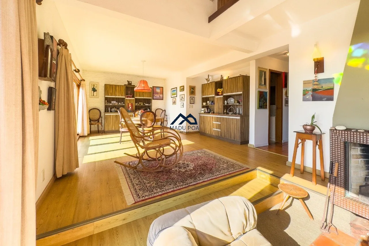 Living para dois ambientes com sacada e lareira e vista livre para o rio. Copa cozinha com móveis sob medida. Três dormitórios sendo uma suíte. Espaço gourmet com churrasqueira e fogão à lenha. Banheiro social, lavanderia, garagem. Pátio com piscina e vista deslumbrante para o Guaíba.